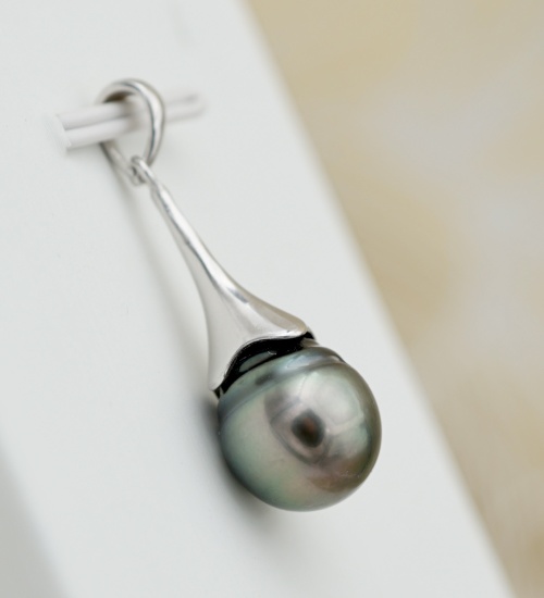Pendentif en Argent Rhodié avec Perle de Tahiti – Raffinement et Pureté