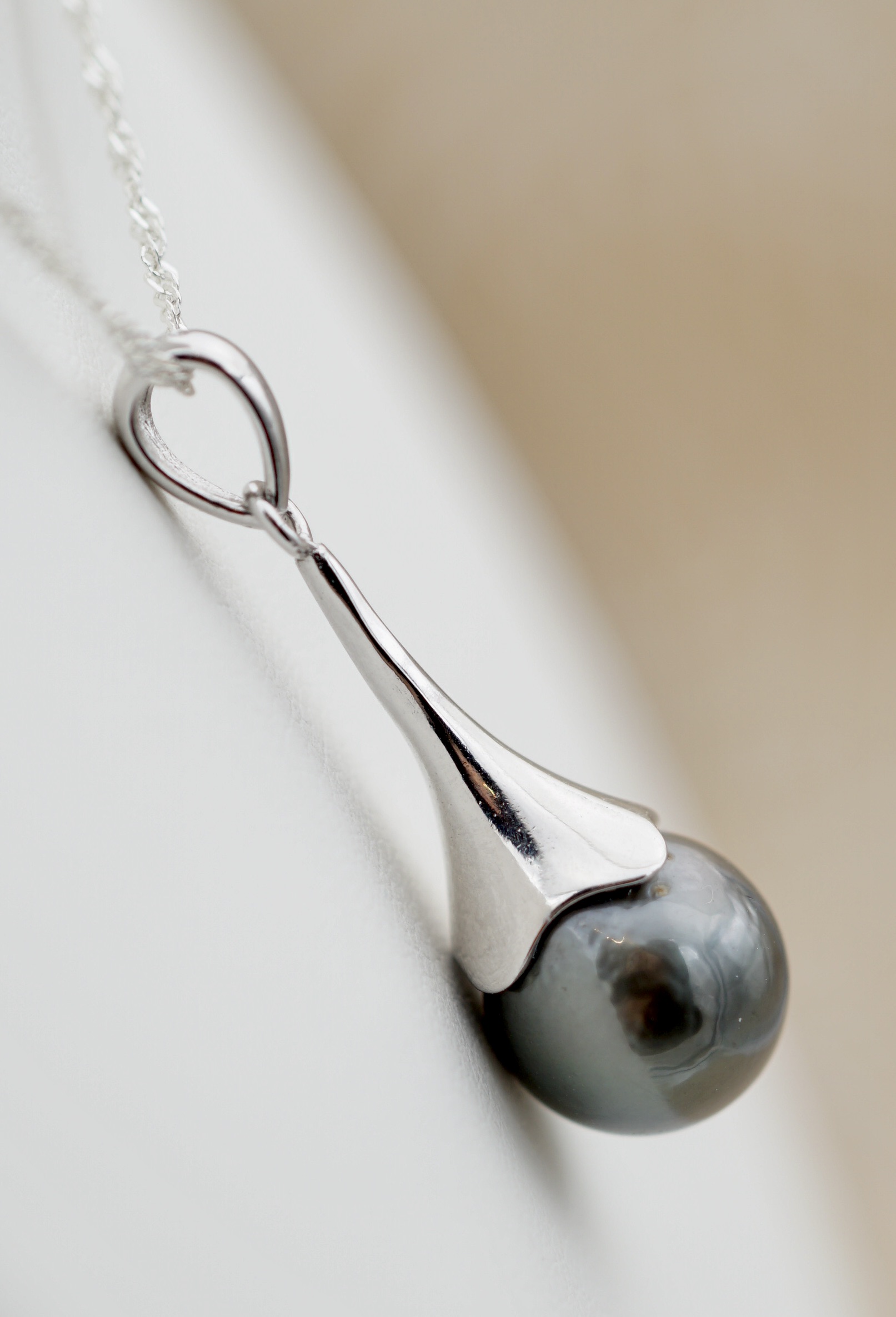 Ce collier conjugue la modernité de l’argent massif à la beauté brute d’une perle de Tahiti authentique. Montée sur une chaîne fine en argent 925, la perle capte la lumière et dévoile des reflets profonds aux nuances irisées : vert océan, bronze, argent givré ou aubergine intense.