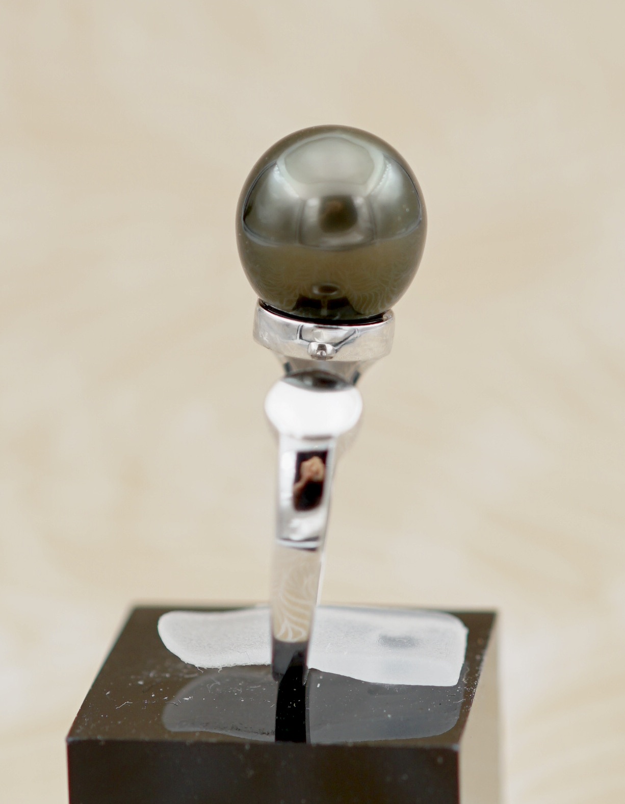 Cette bague en argent massif, sertie d’une perle de Tahiti sélectionnée avec soin, incarne le raffinement à l’état pur. La perle révèle des nuances profondes – aubergine, vert ou bronze – pour une touche de luxe sobre et naturelle.