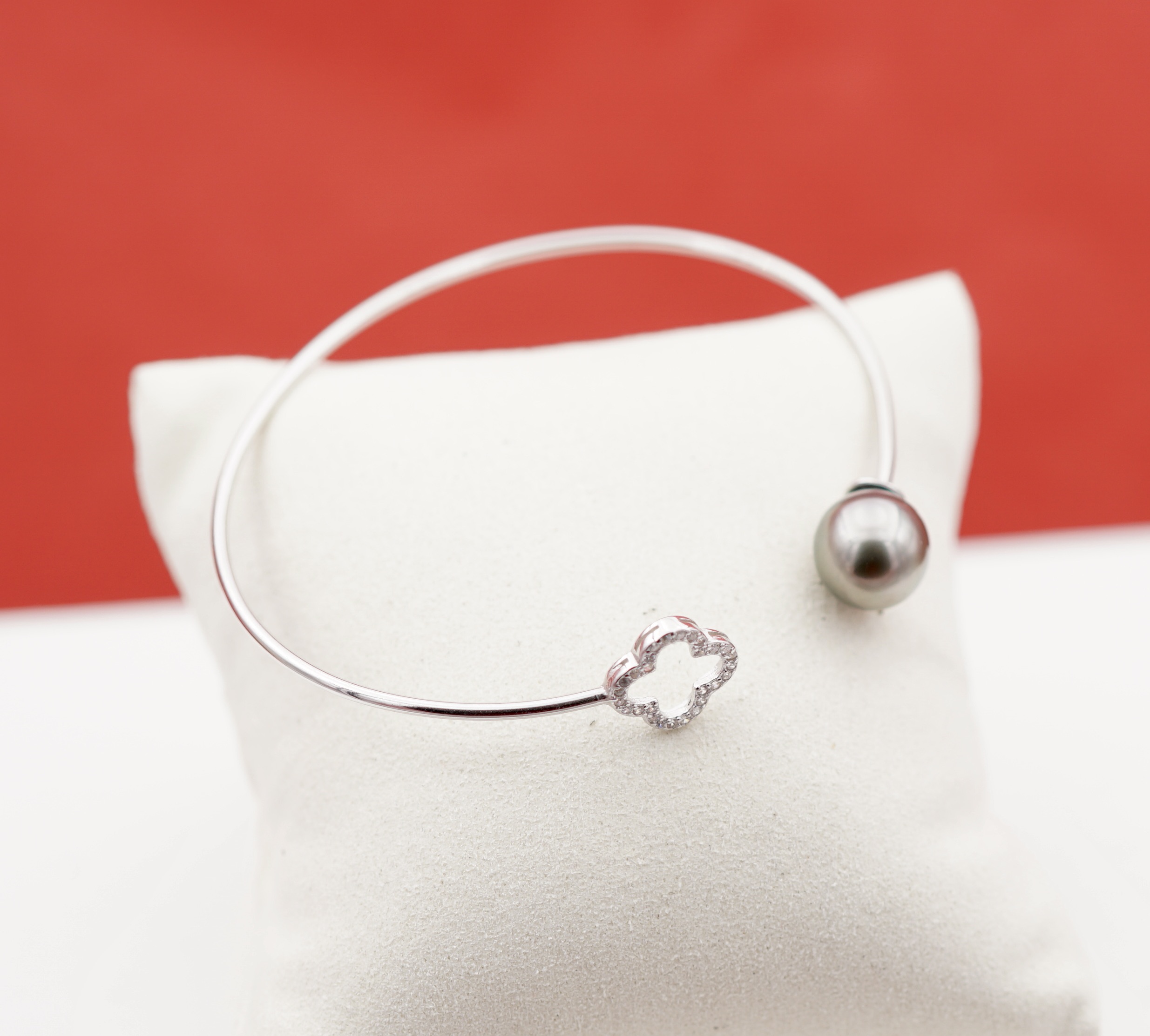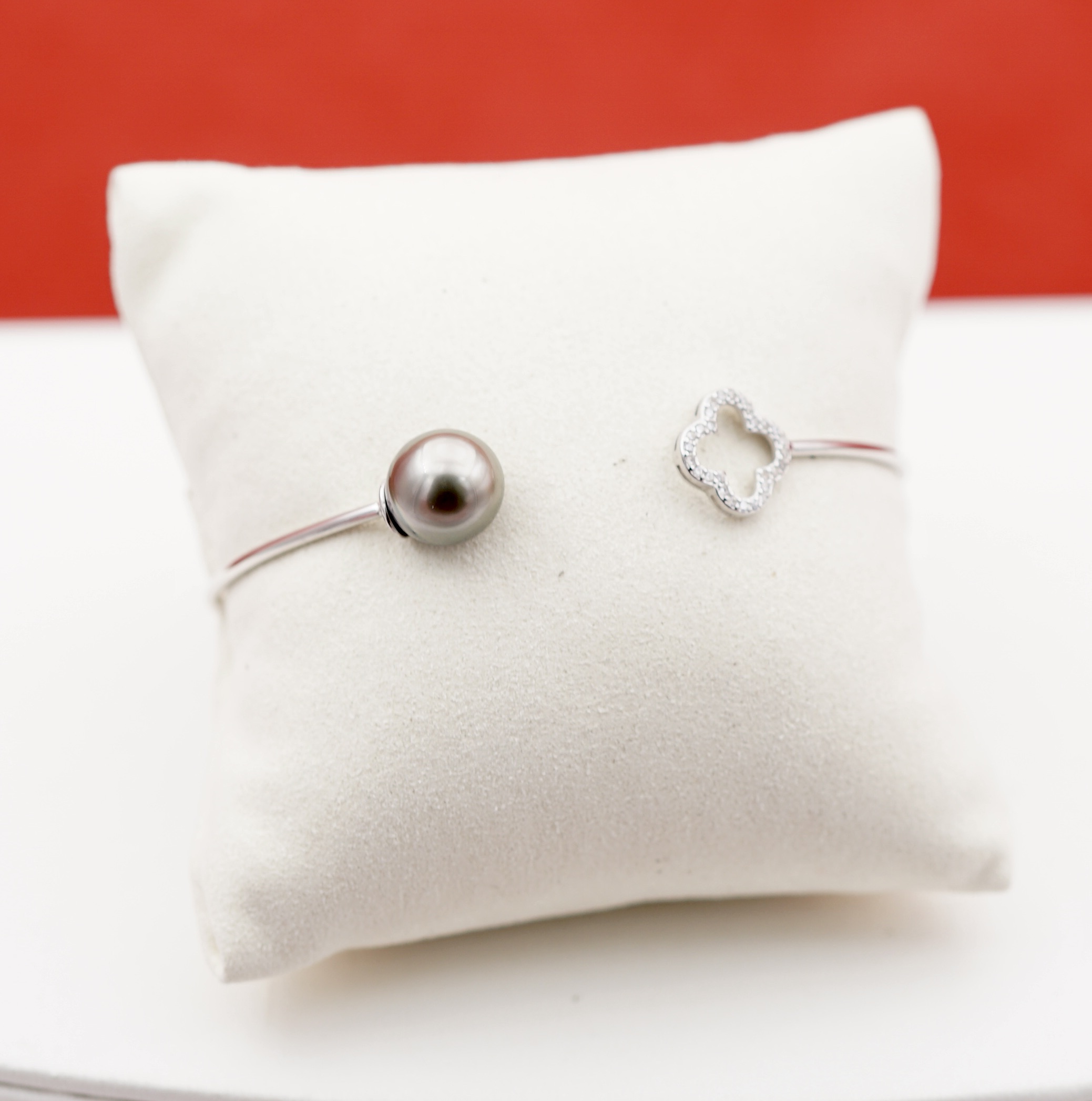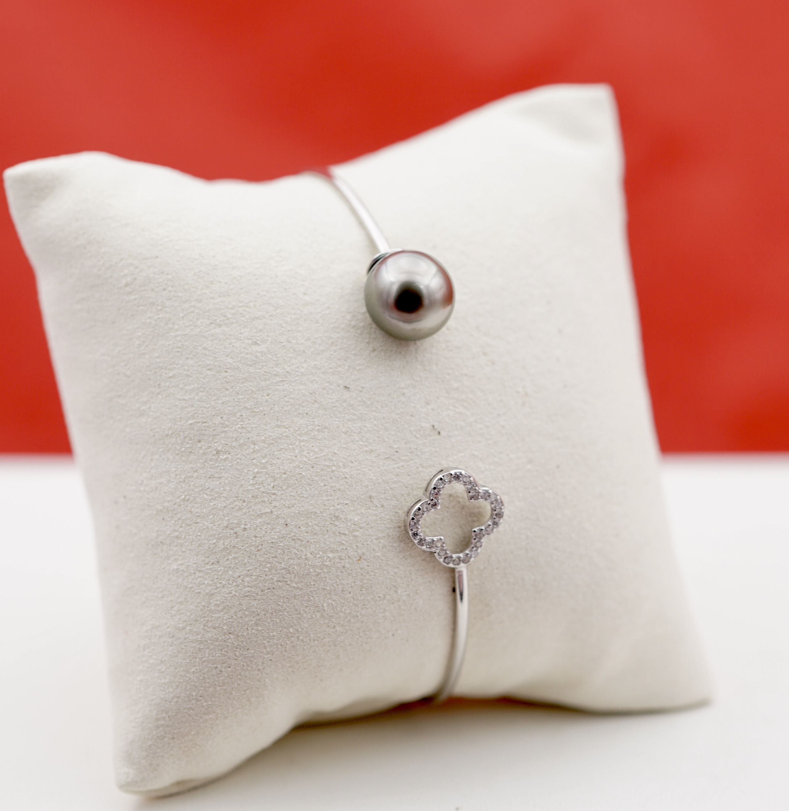 Bracelet en Argent Rhodié avec Perles de Tahiti – Harmonie et Éclat au Poignet