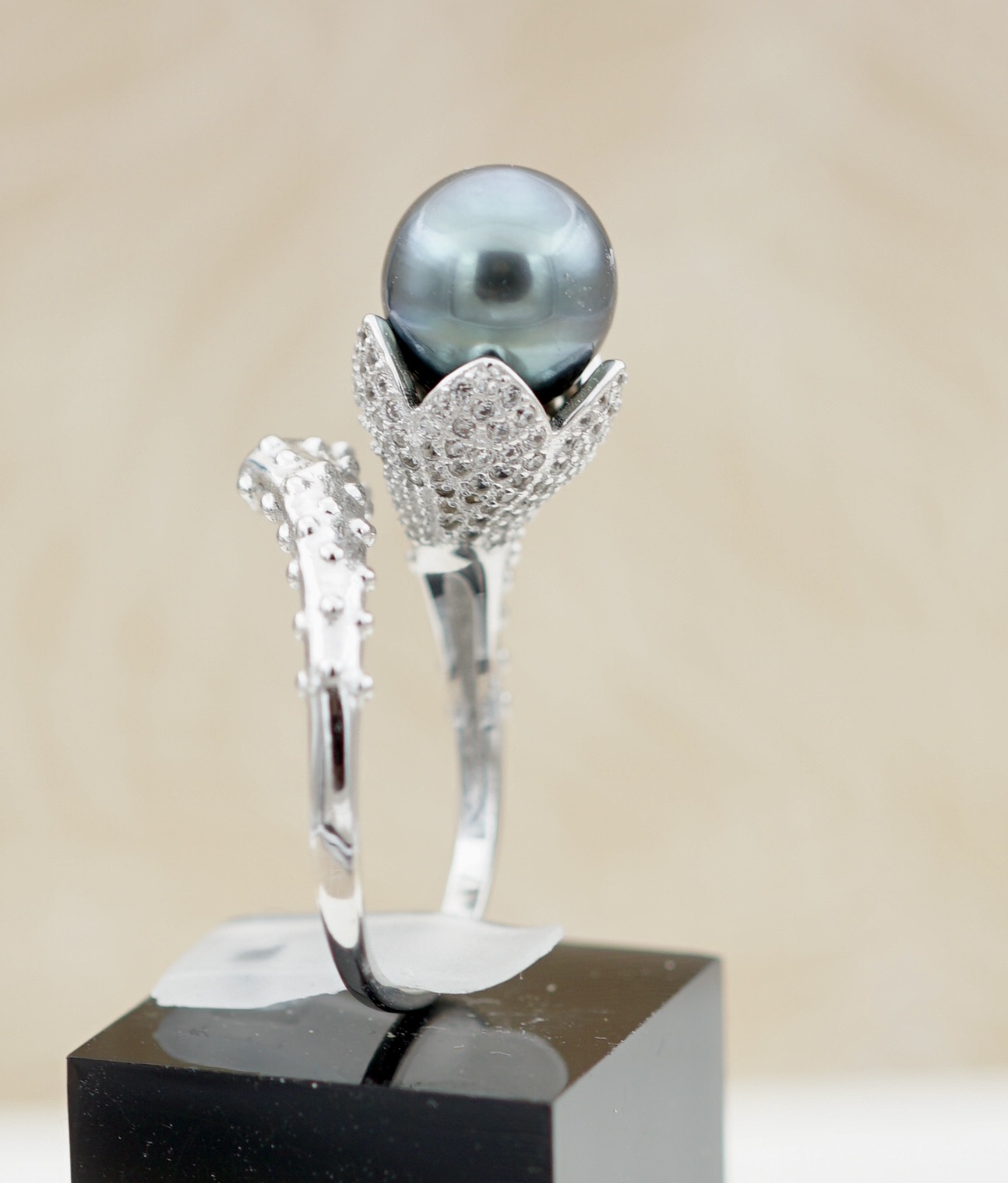 Cette bague en argent massif, sertie d’une perle de Tahiti sélectionnée avec soin. La perle révèle des nuances profondes – aubergine, silver ou bronze – pour une touche de luxe sobre et naturelle.