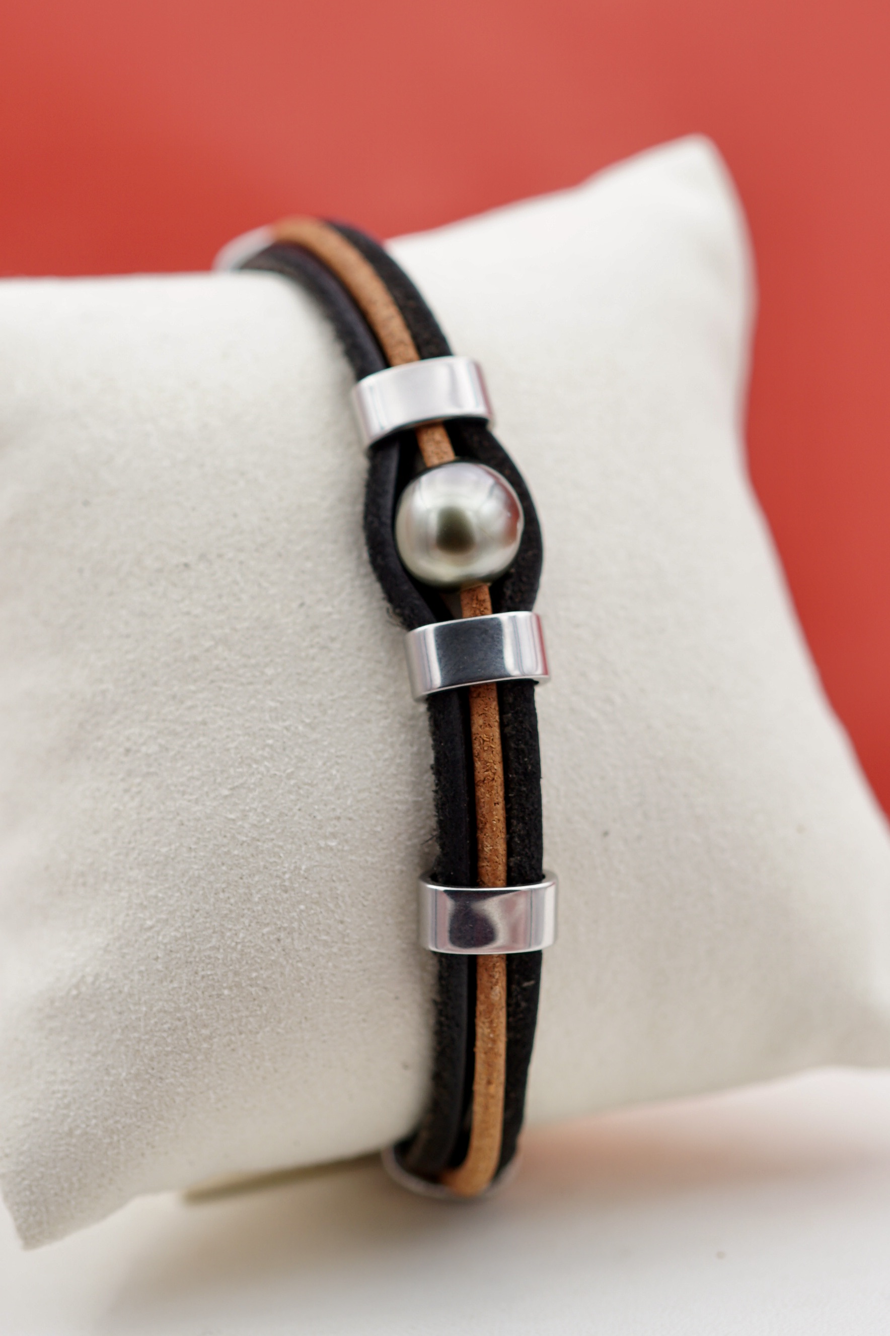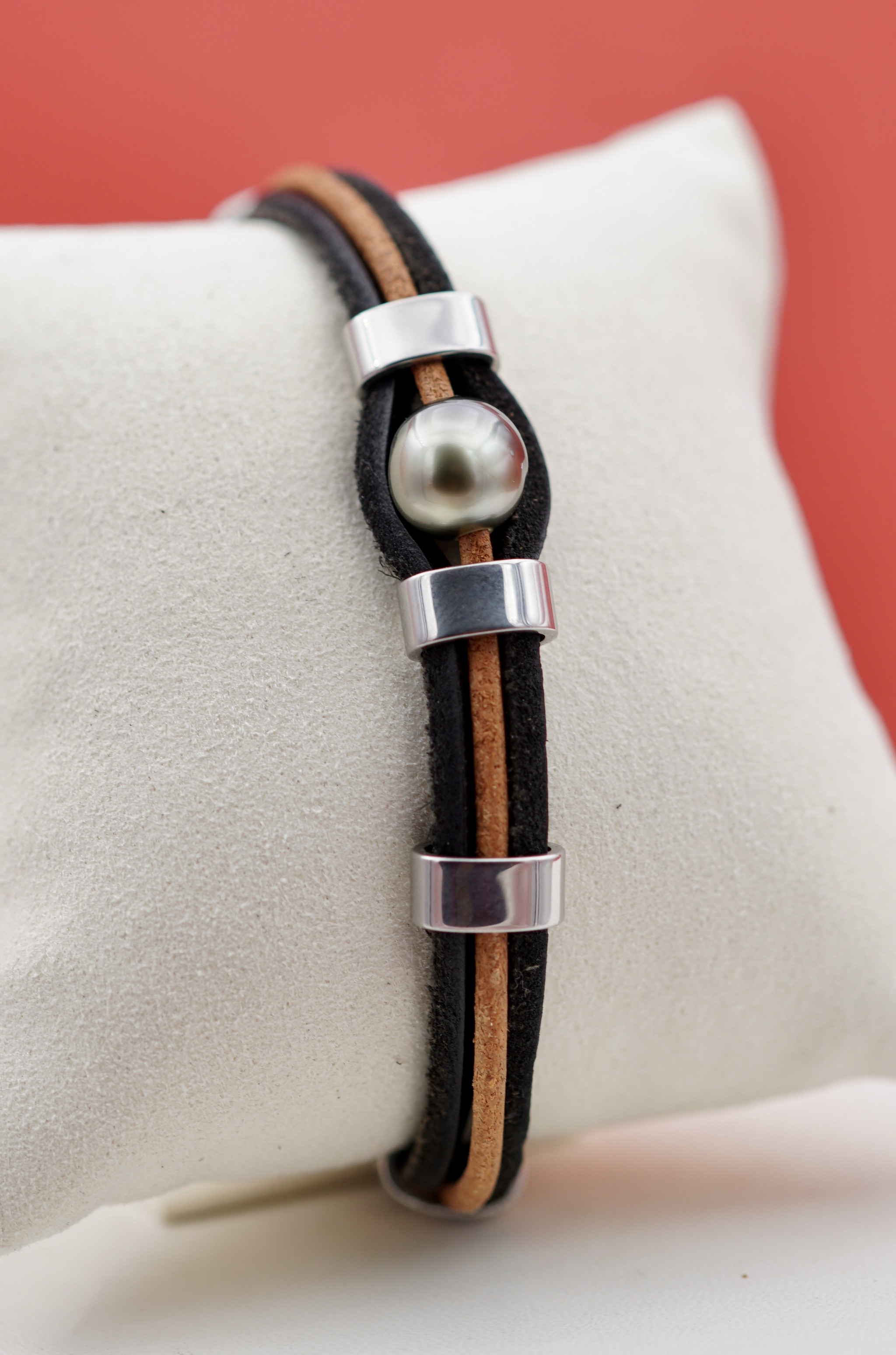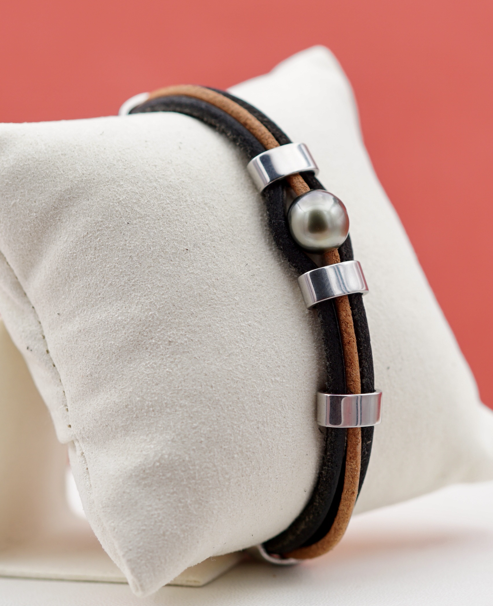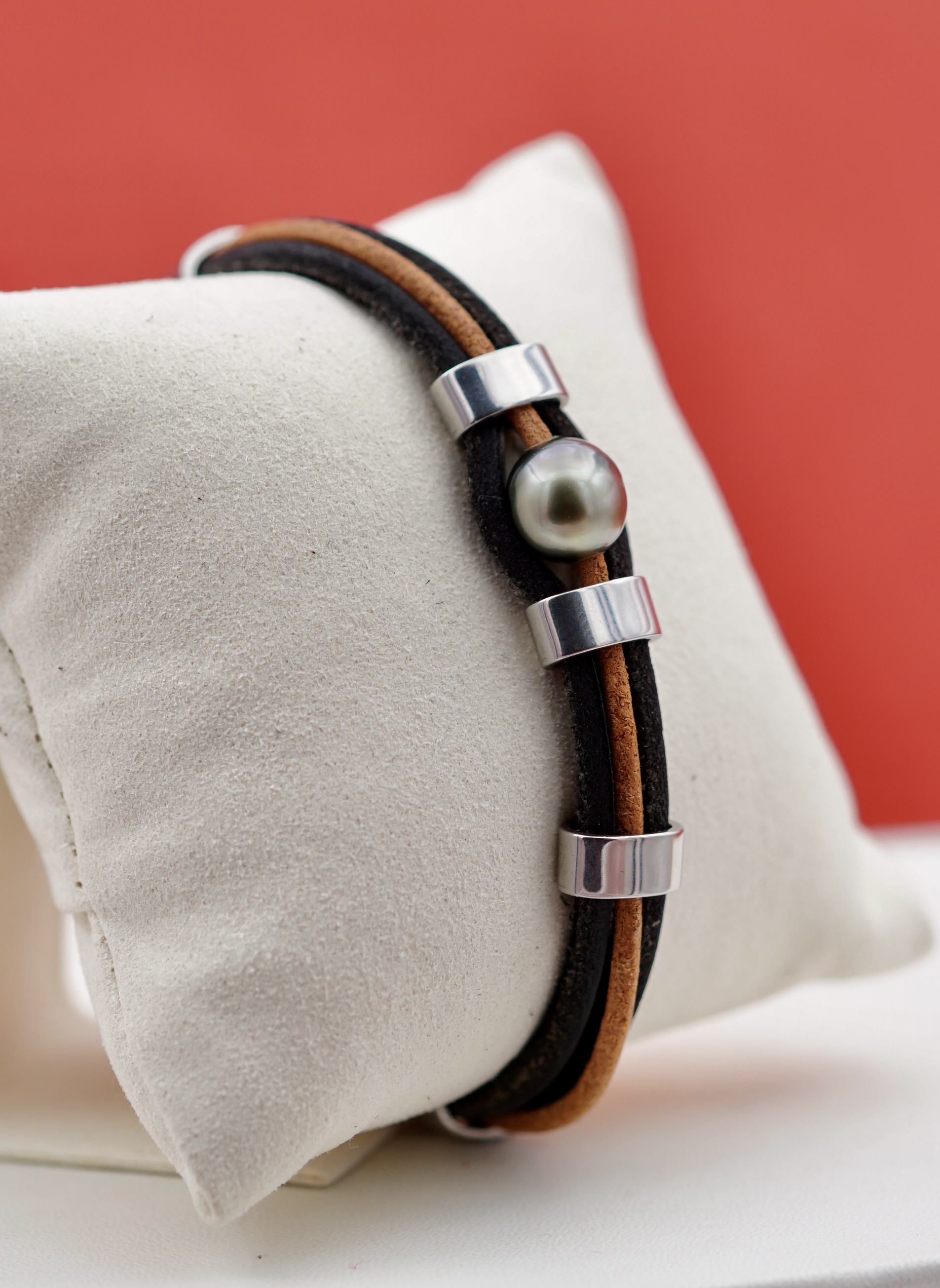 Bracelet en Perle de Tahiti sur Cuir – Harmonie Naturelle et Éclat Intemporel