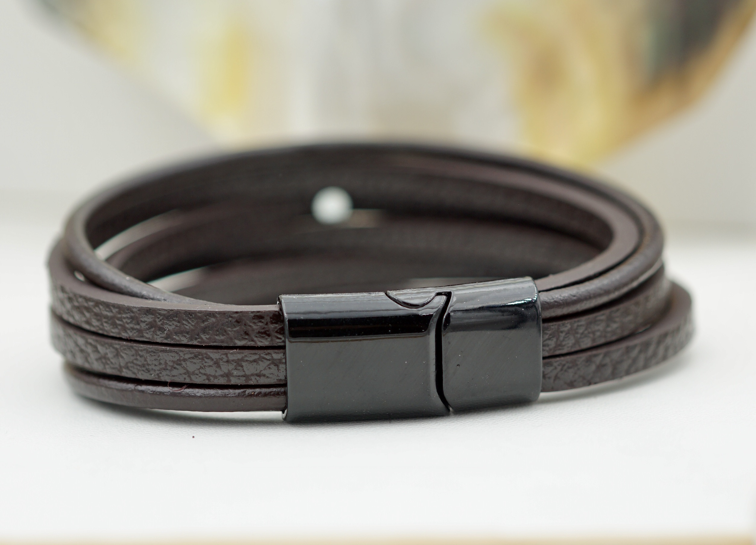 Monté sur un lien en cuir, souple et résistant, ce bracelet allie la noblesse des matières brutes à la finesse du détail, il épouse délicatement la ligne du poignet pour un port confortable et personnalisé.