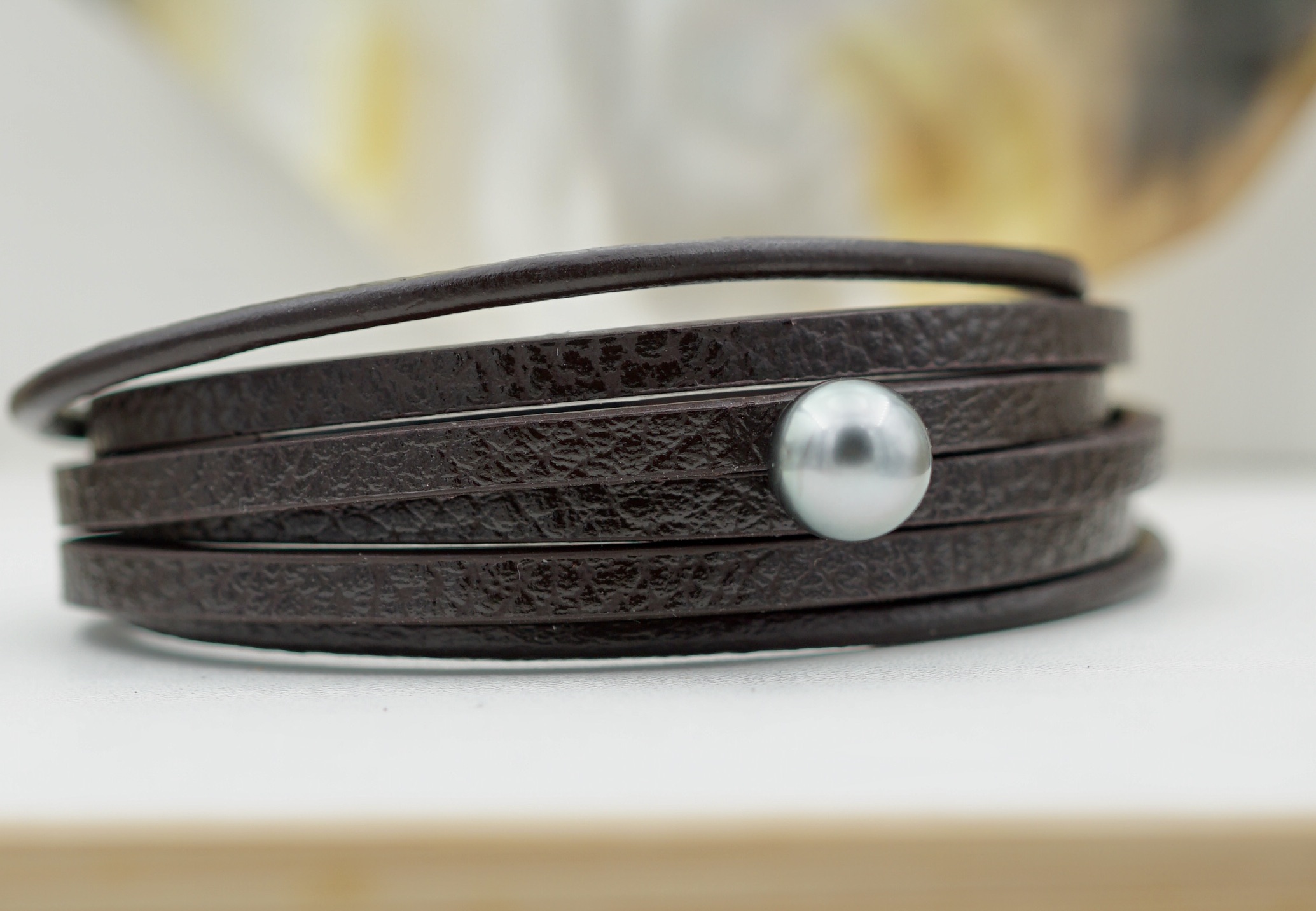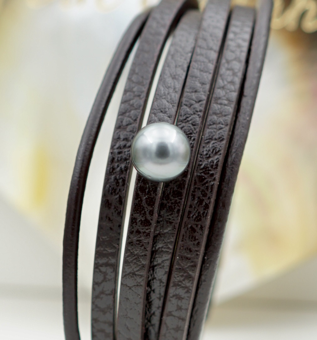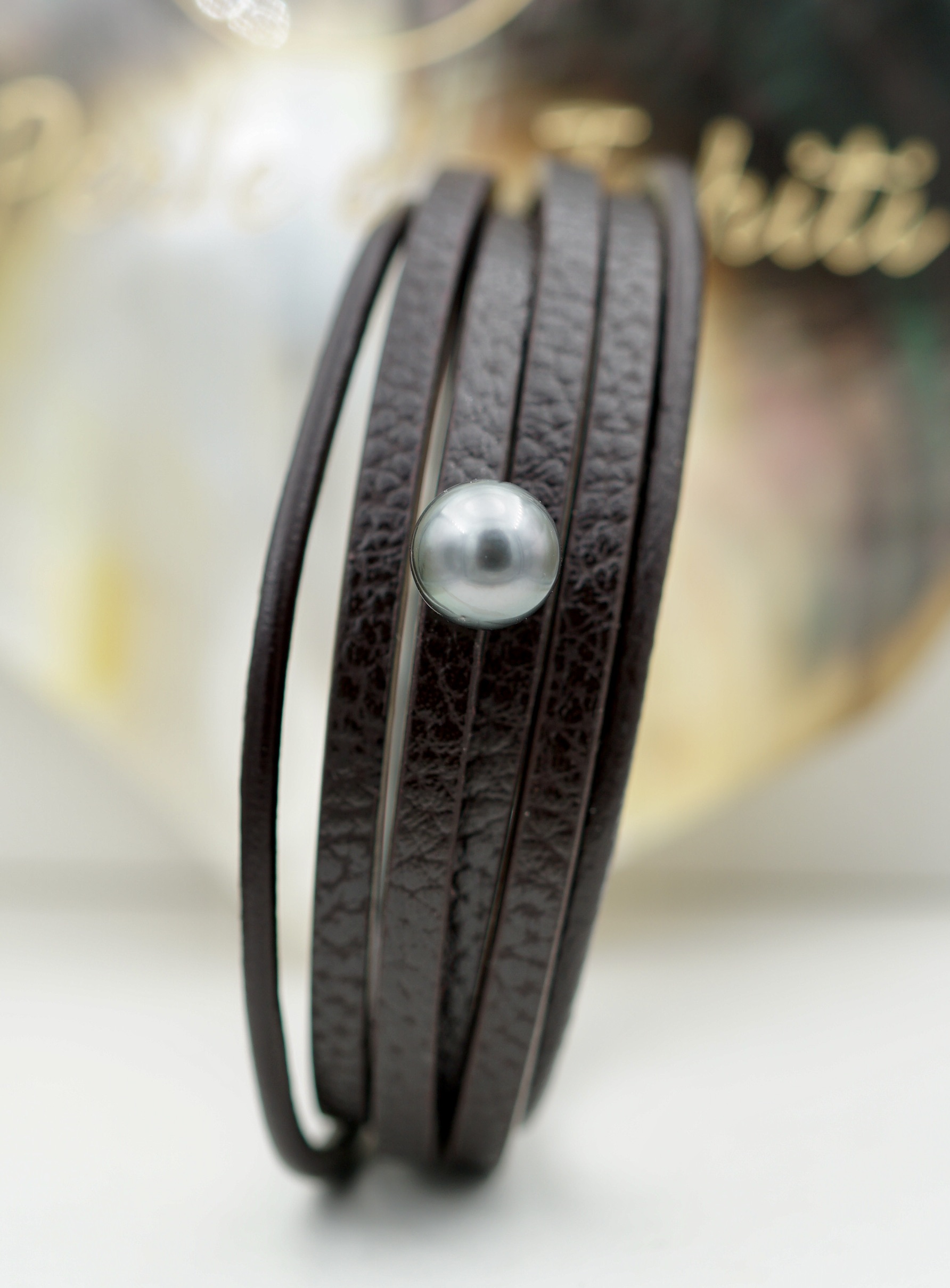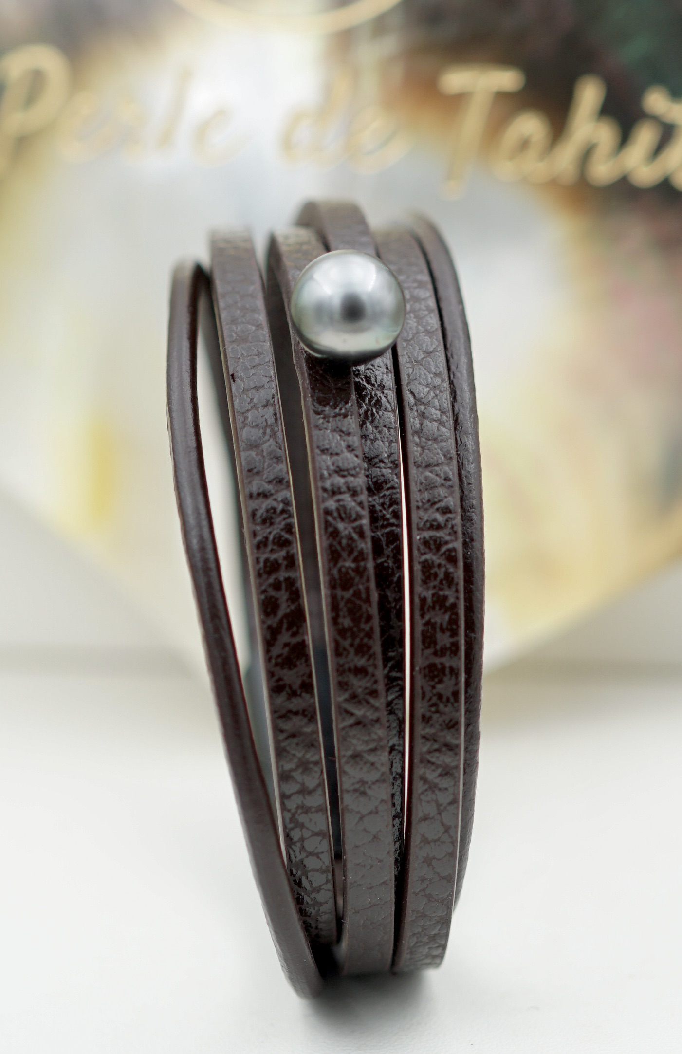 Bracelet en Perle de Tahiti sur Cuir – Harmonie Naturelle et Éclat Intemporel