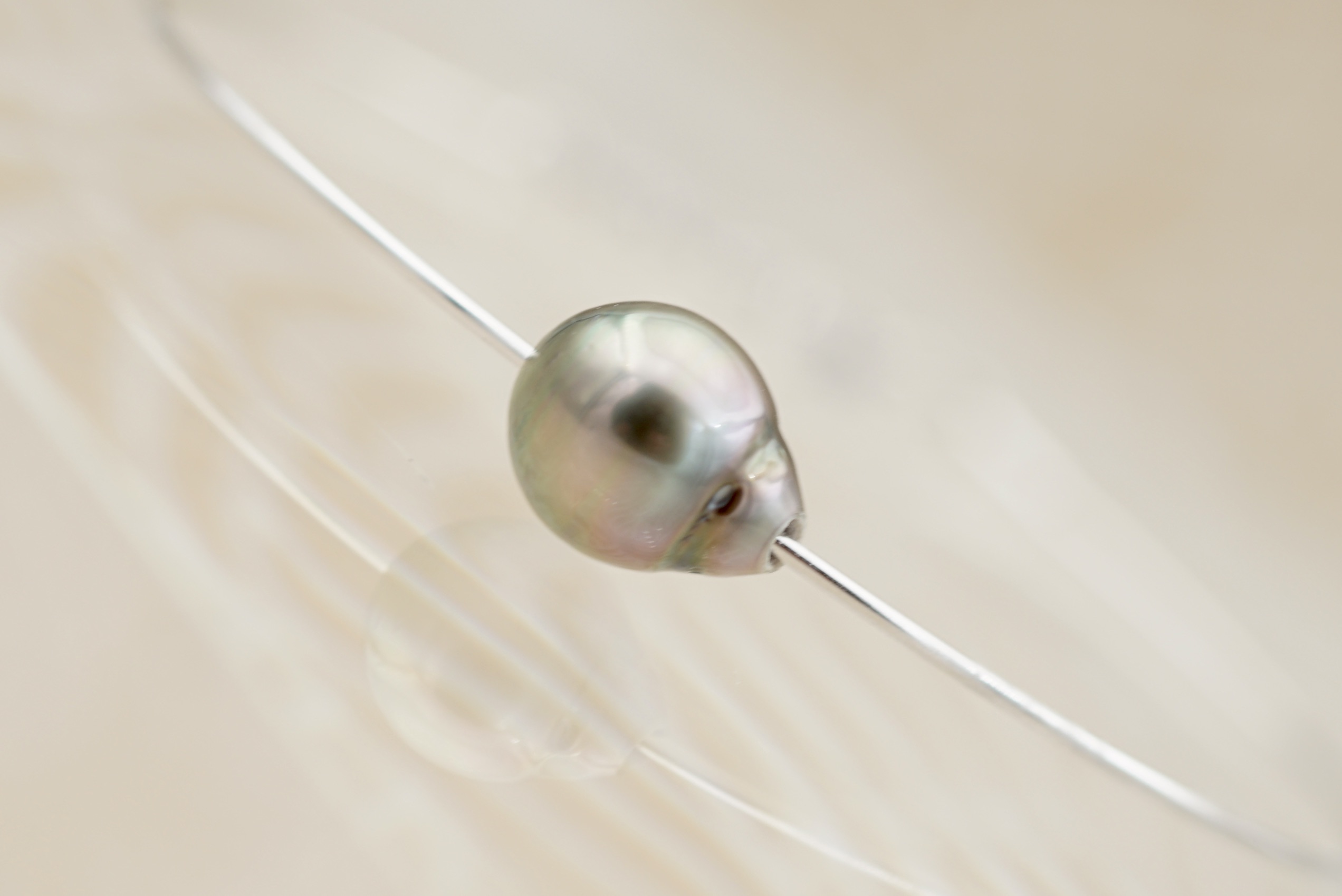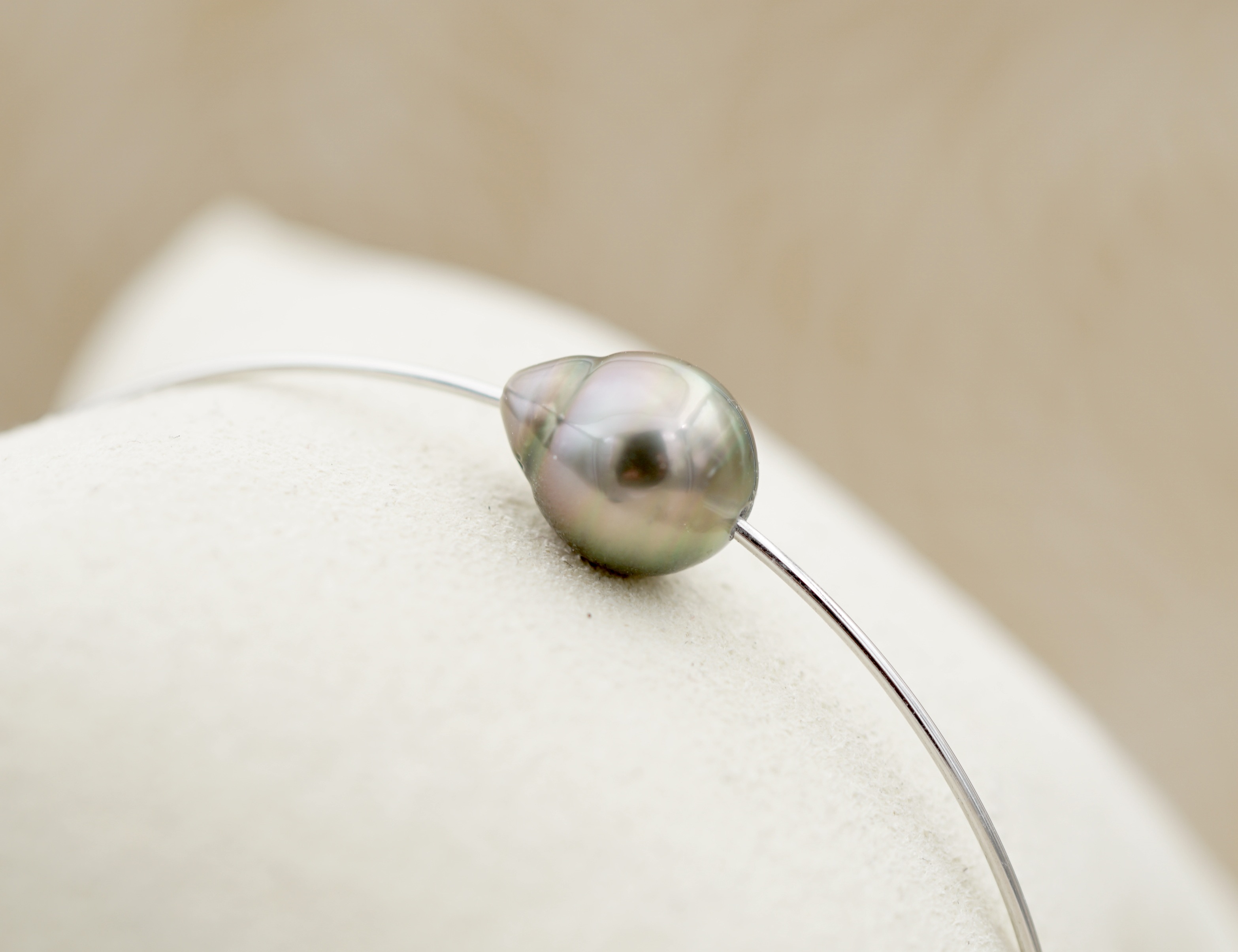 Bracelet en argent rhodié, orné d’une sublime perle de Tahiti.
