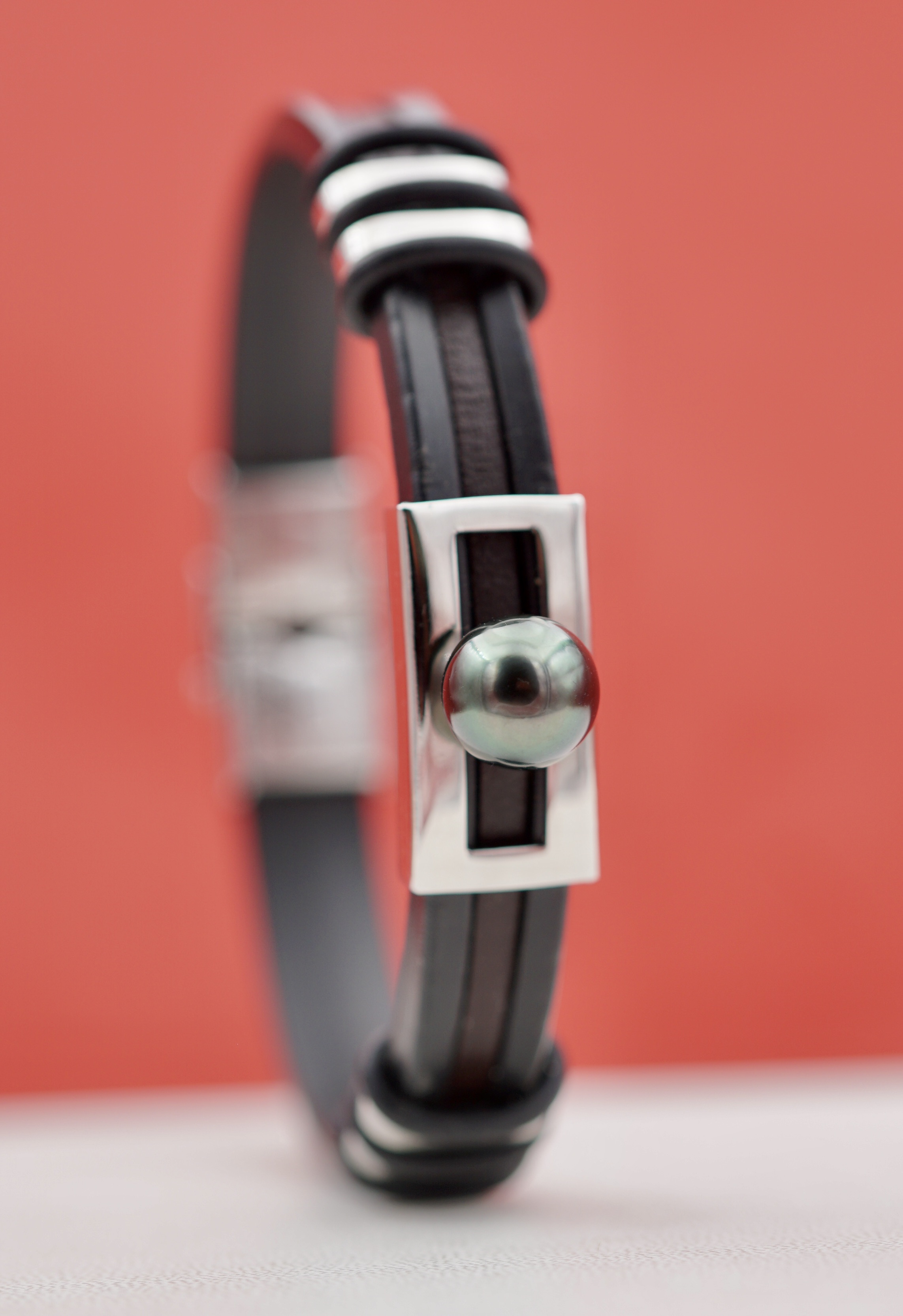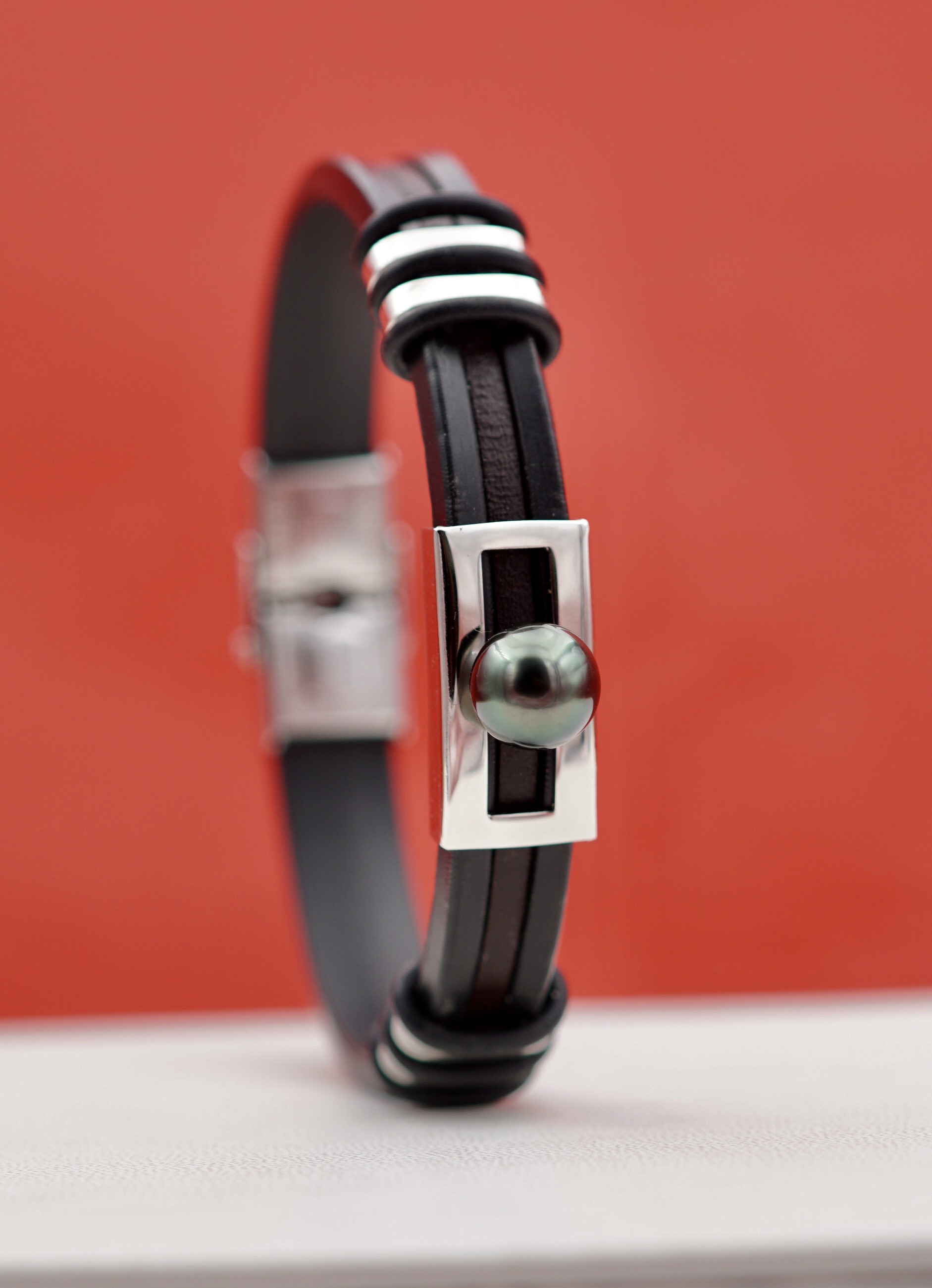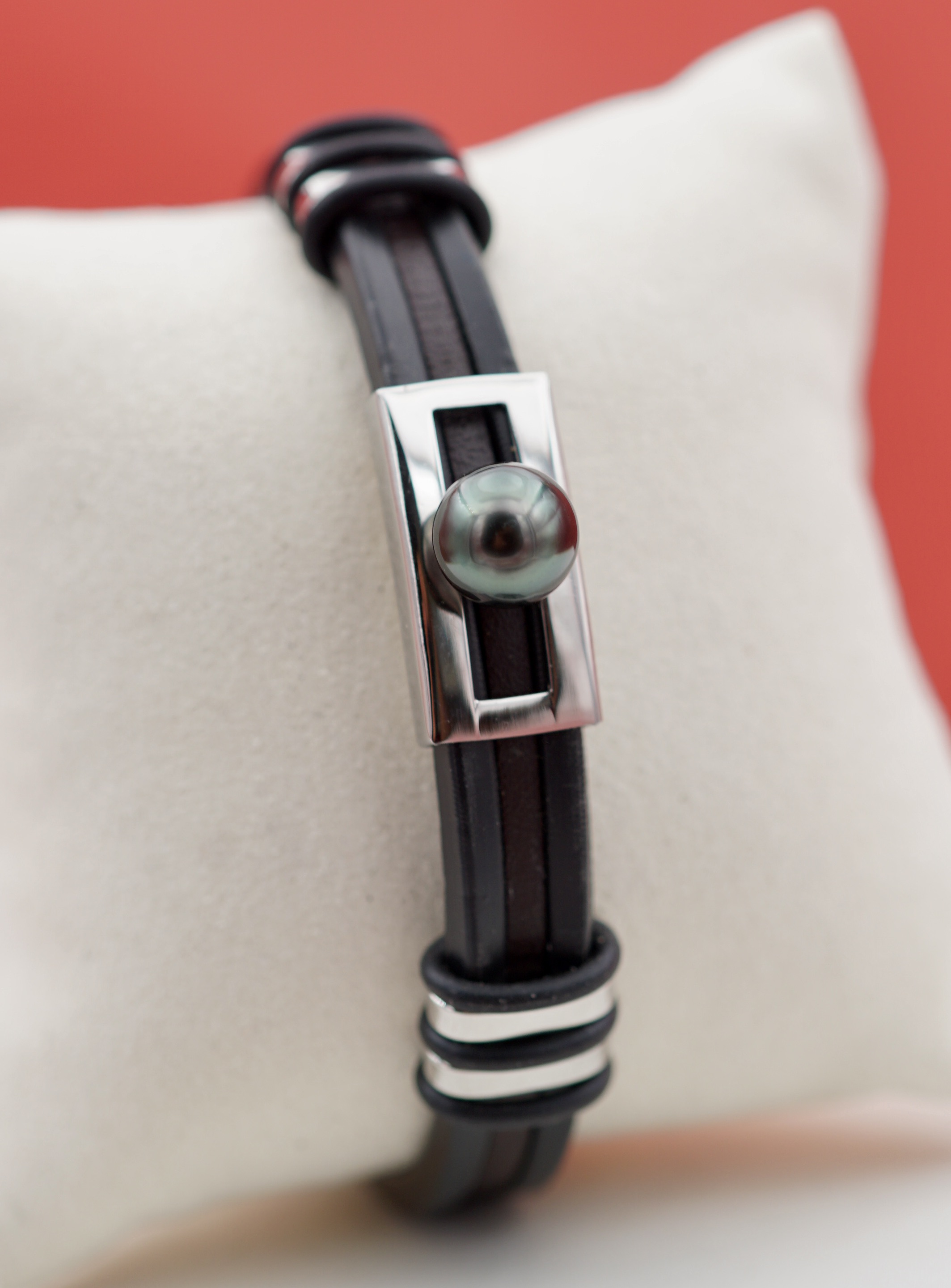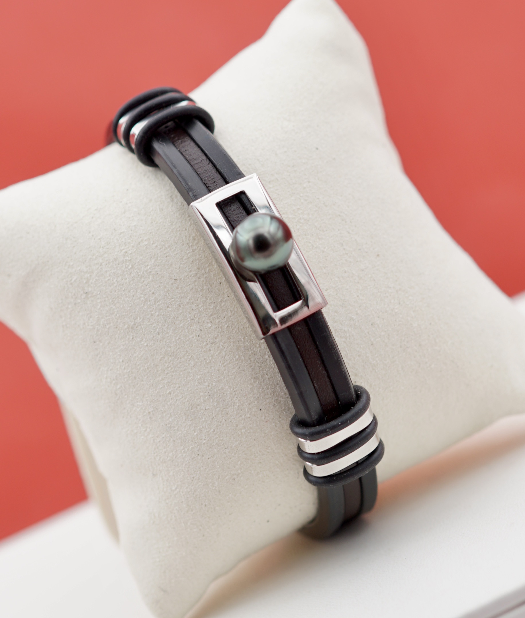 Succombez à l’élégance naturelle de ce bracelet en cuir véritable, sublimé par une superbe perle de Tahiti rigoureusement sélectionnée. Cette perle dévoile une richesse de reflets – aubergine, vert émeraude, bronze ou argenté – évoquant les teintes mystérieuses des lagons polynésiens.