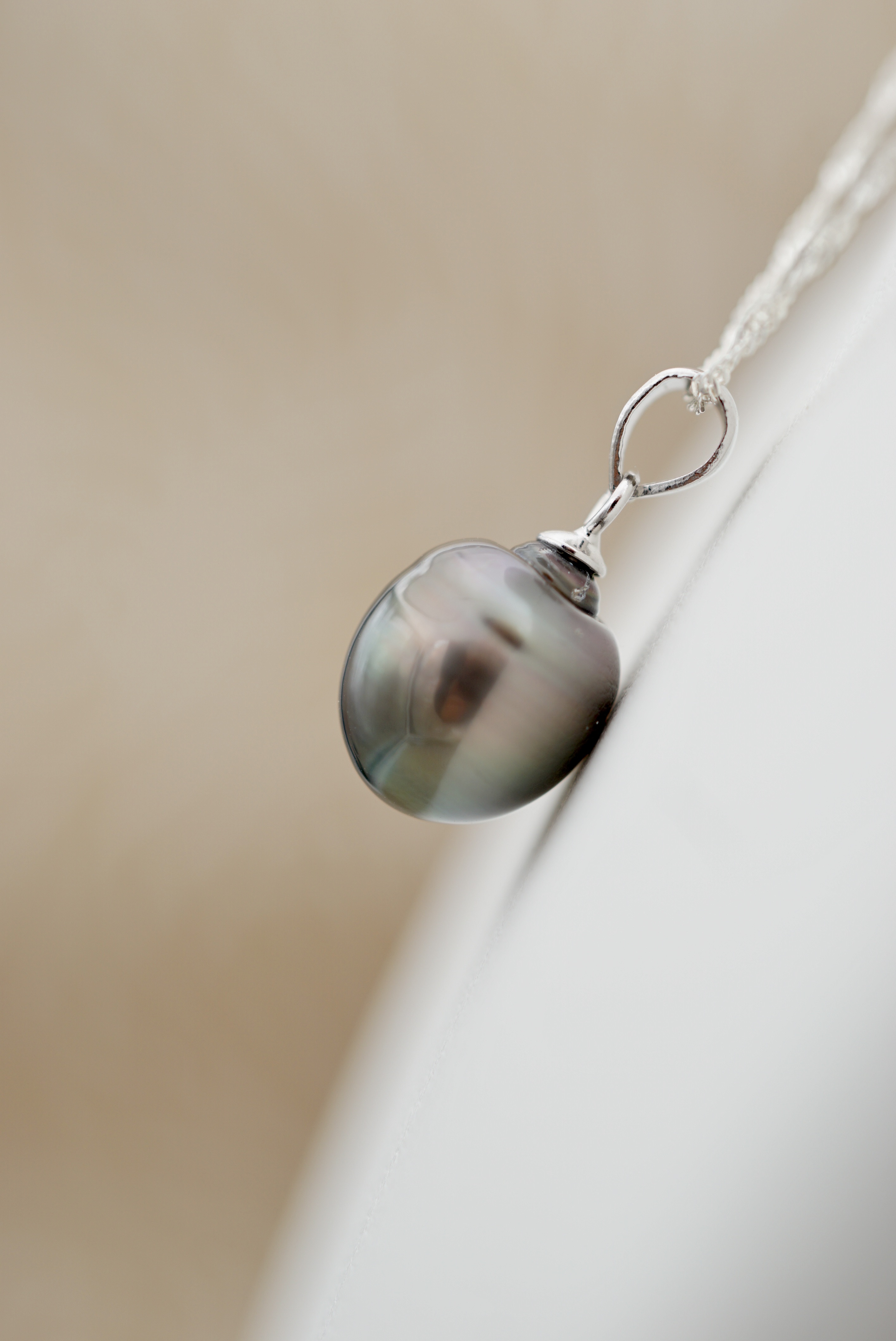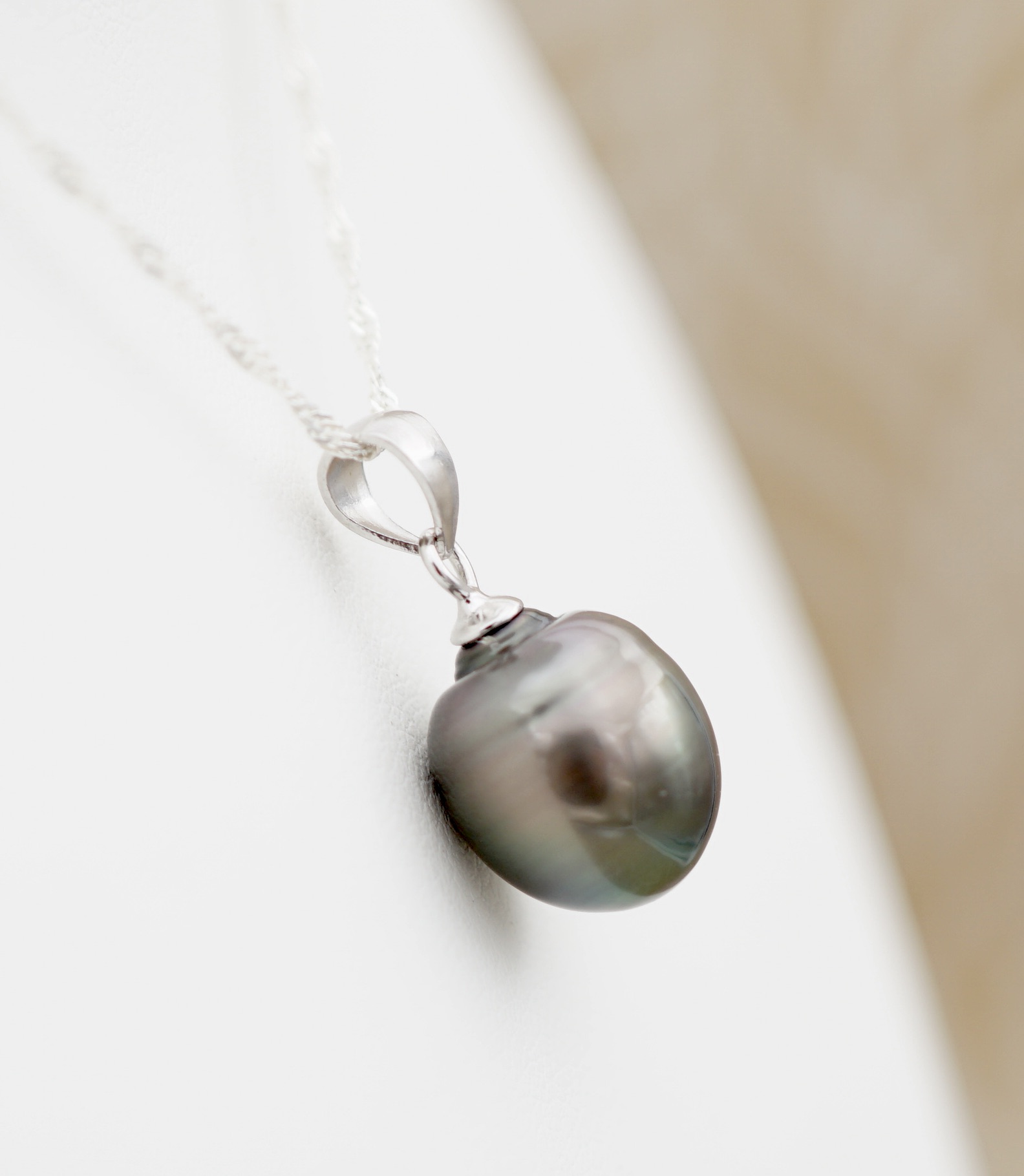 Chaîne en argent rhodié 925, au design épuré, pour mettre en valeur la perle sans superflu.