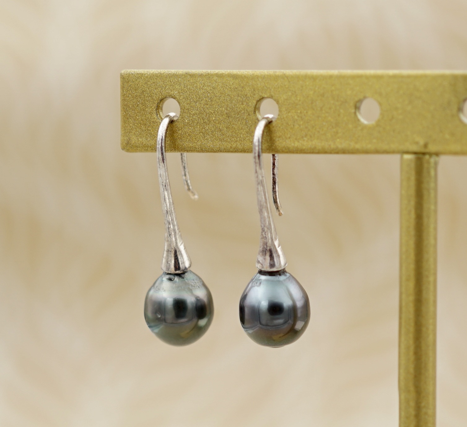 Offrez-vous un bijou d’exception avec cette splendide paire de boucles d’oreilles, ornée de deux véritables perles noires de culture de Tahiti. Sélectionnées pour leur lustre intense et naturel, ces perles révèlent toute la richesse et la beauté des lagons polynésiens.