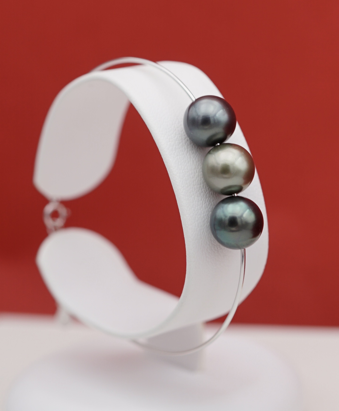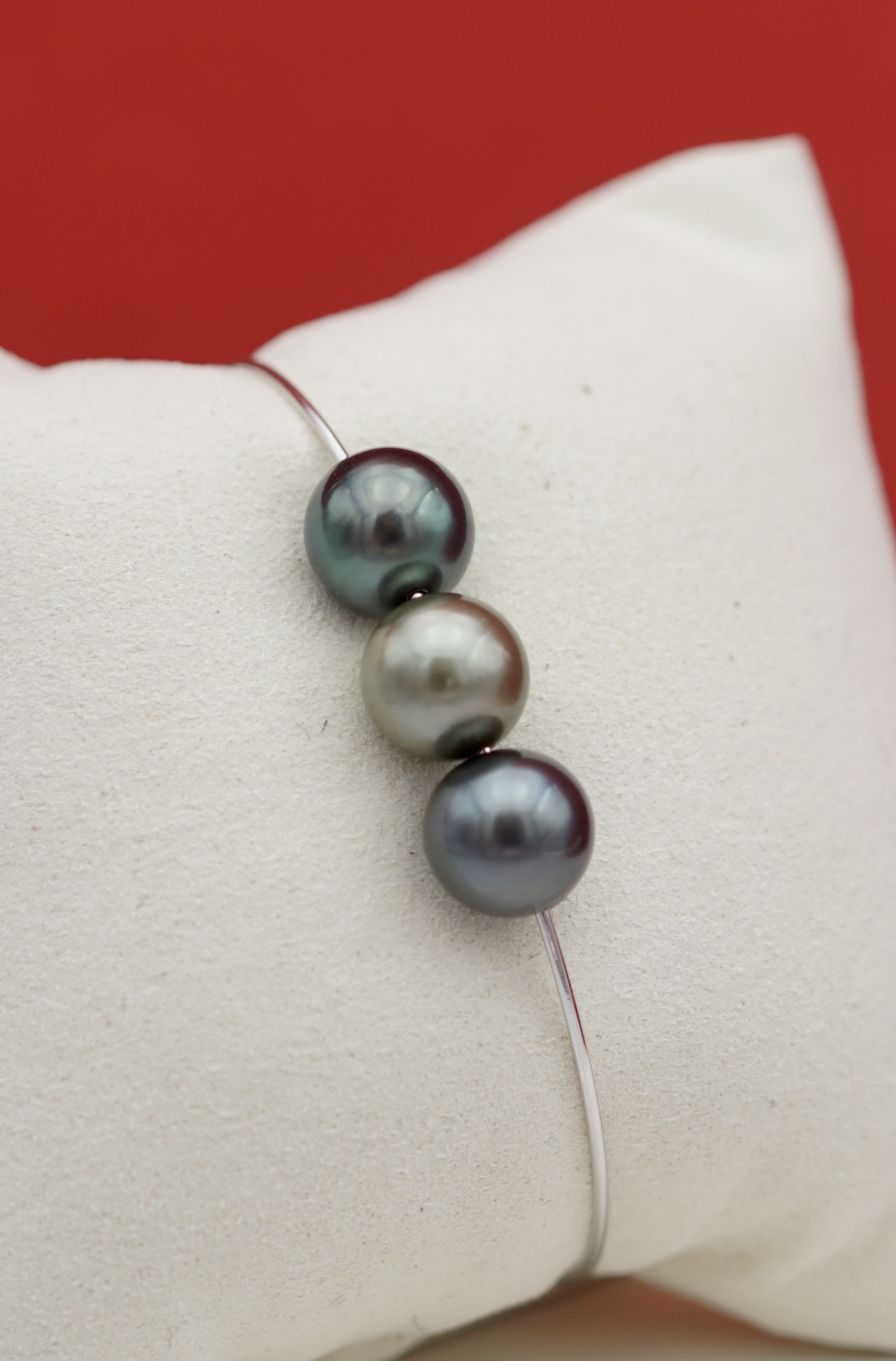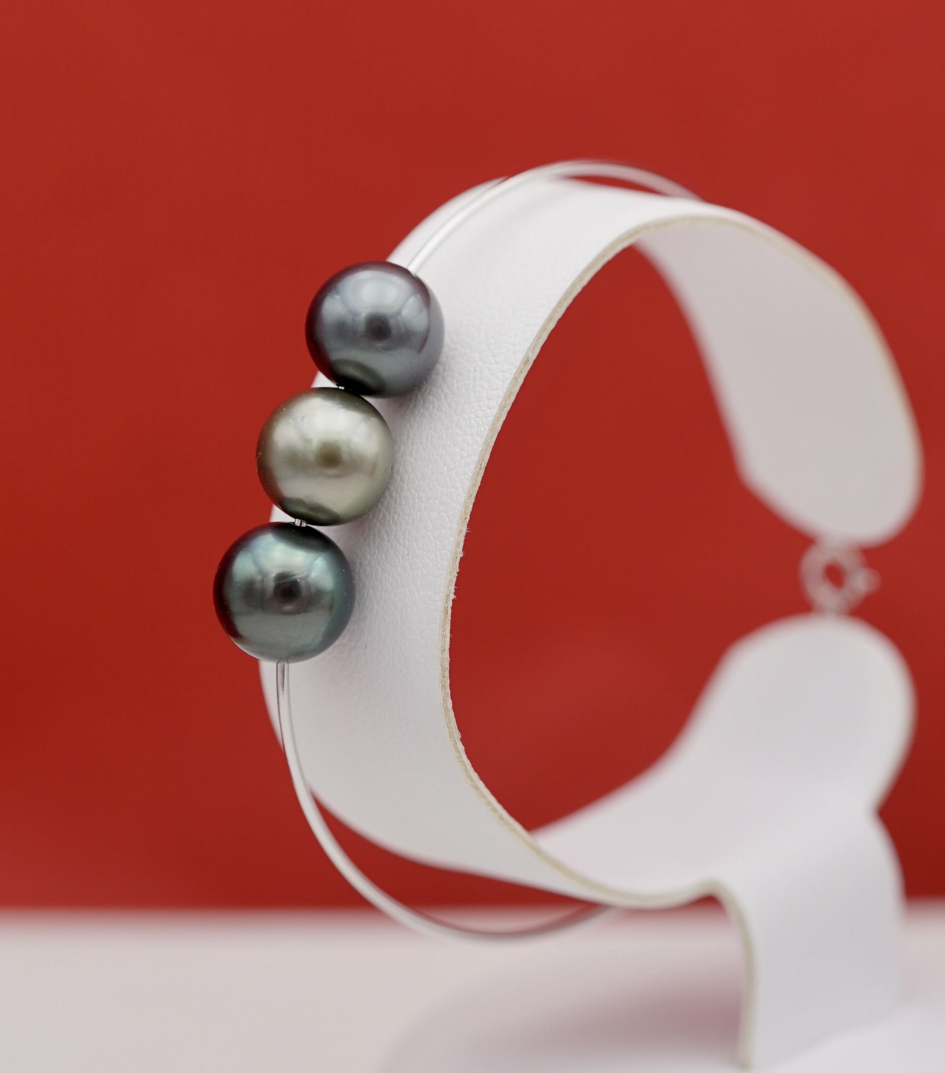 Ce bracelet en argent 925mm, orné de perles de Tahiti sélectionnées pour leur éclat unique, incarne un équilibre parfait entre modernité et tradition. Chaque perle dévoile des reflets profonds – aubergine, vert, bronze – pour un rendu à la fois subtil et luxueux.