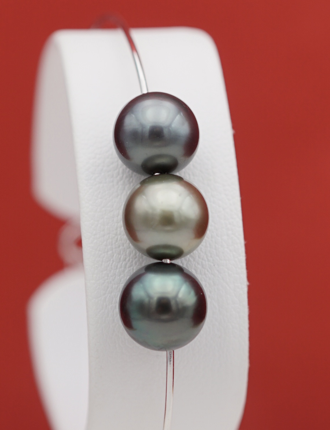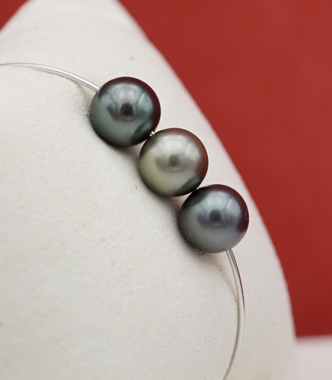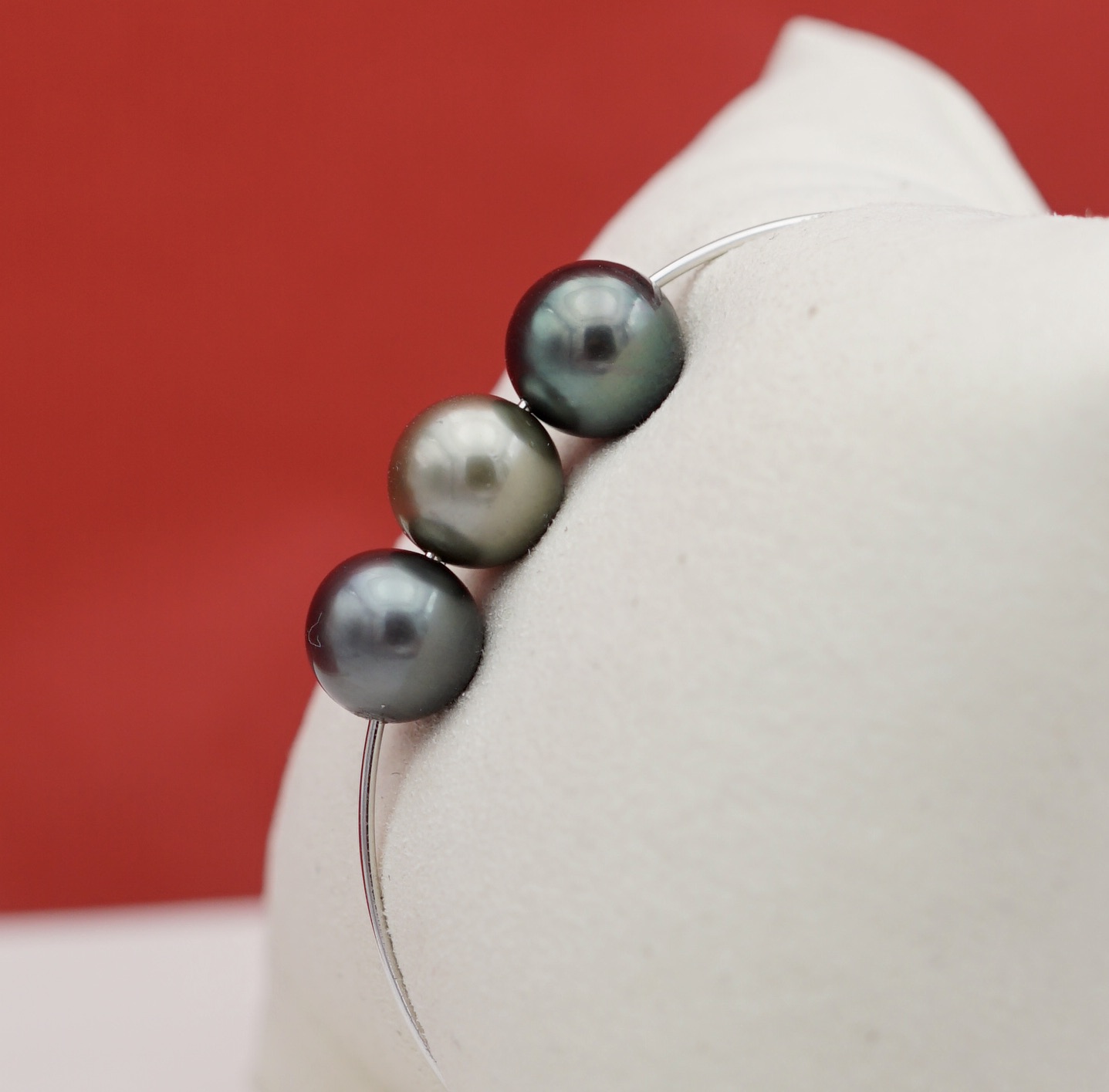 Ce bracelet en argent 925mm, orné de perles de Tahiti sélectionnées pour leur éclat unique, incarne un équilibre parfait entre modernité et tradition. Chaque perle dévoile des reflets profonds – aubergine, vert, bronze – pour un rendu à la fois subtil et luxueux.