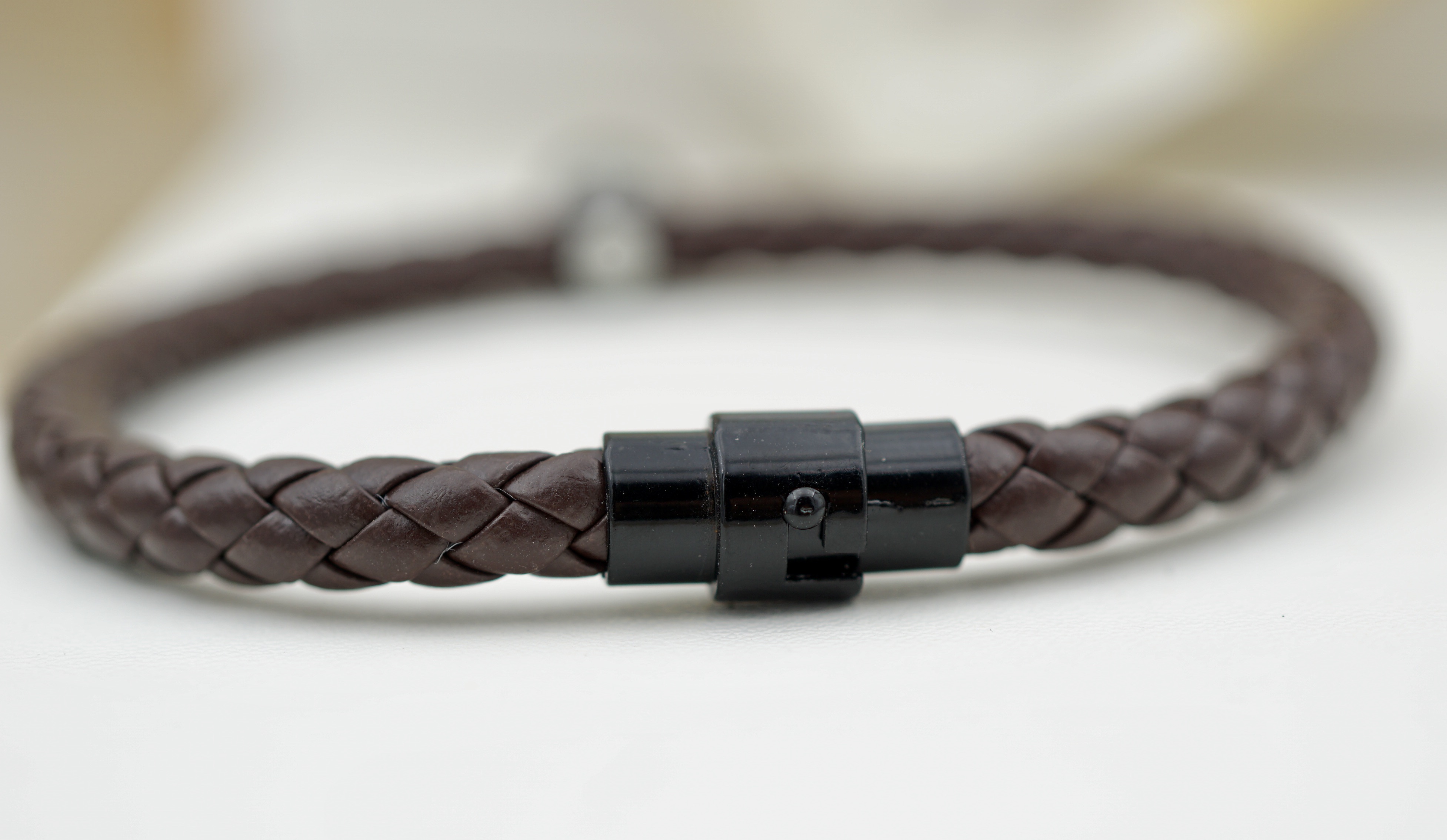 Monté sur un lien en cuir, souple et résistant, ce bracelet allie la noblesse des matières brutes à la finesse du détail, il épouse délicatement la ligne du poignet pour un port confortable et personnalisé.