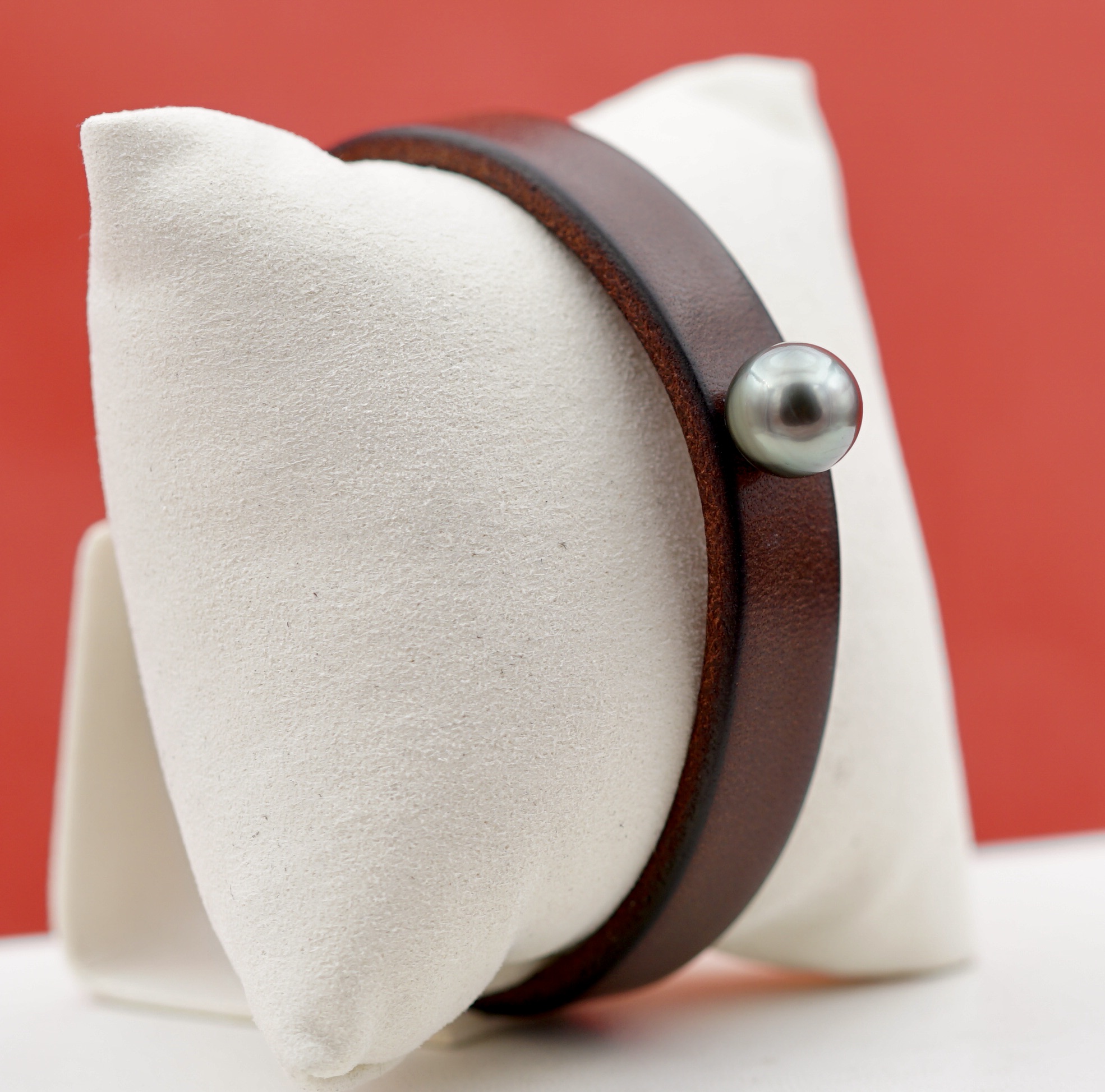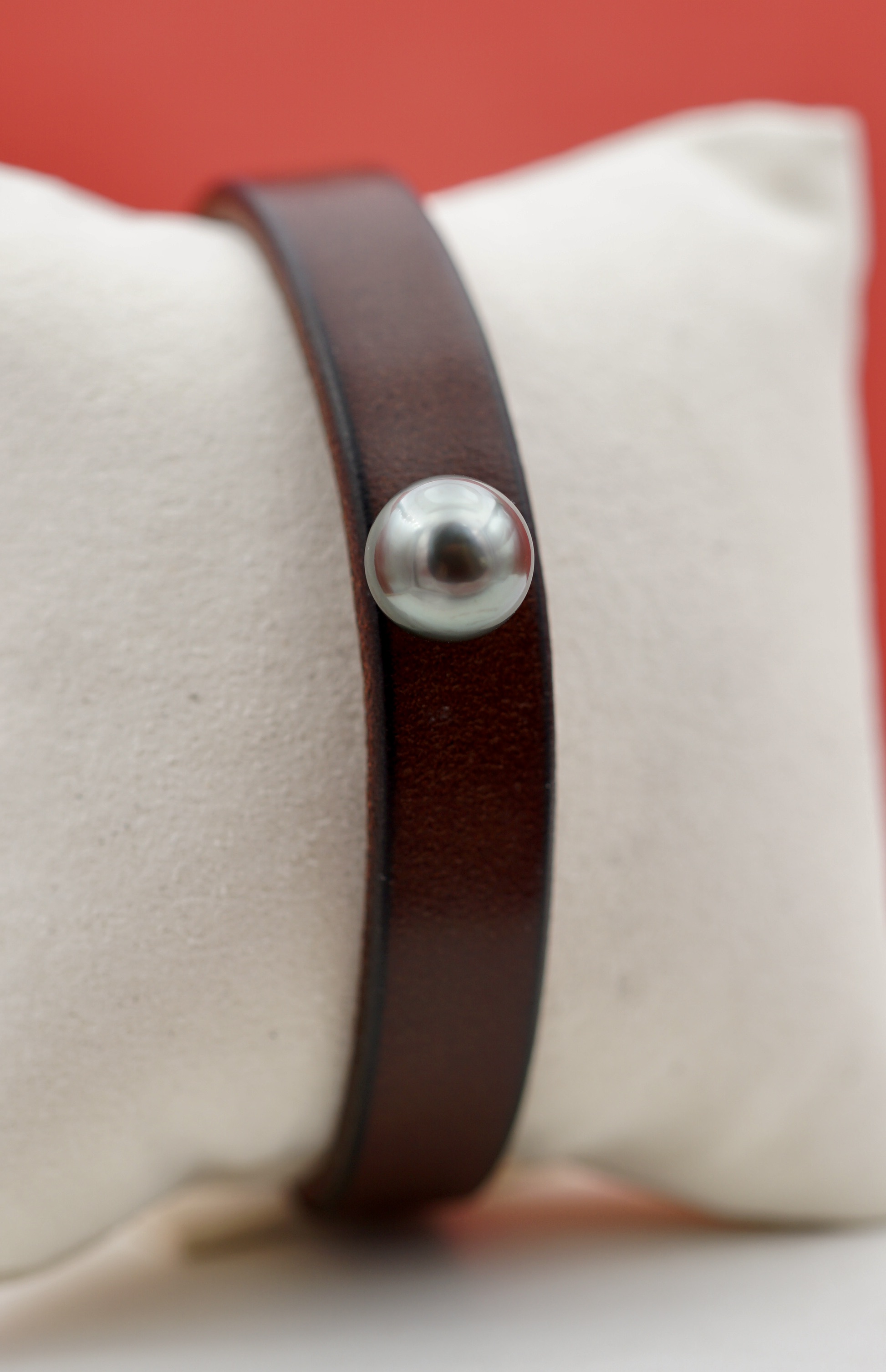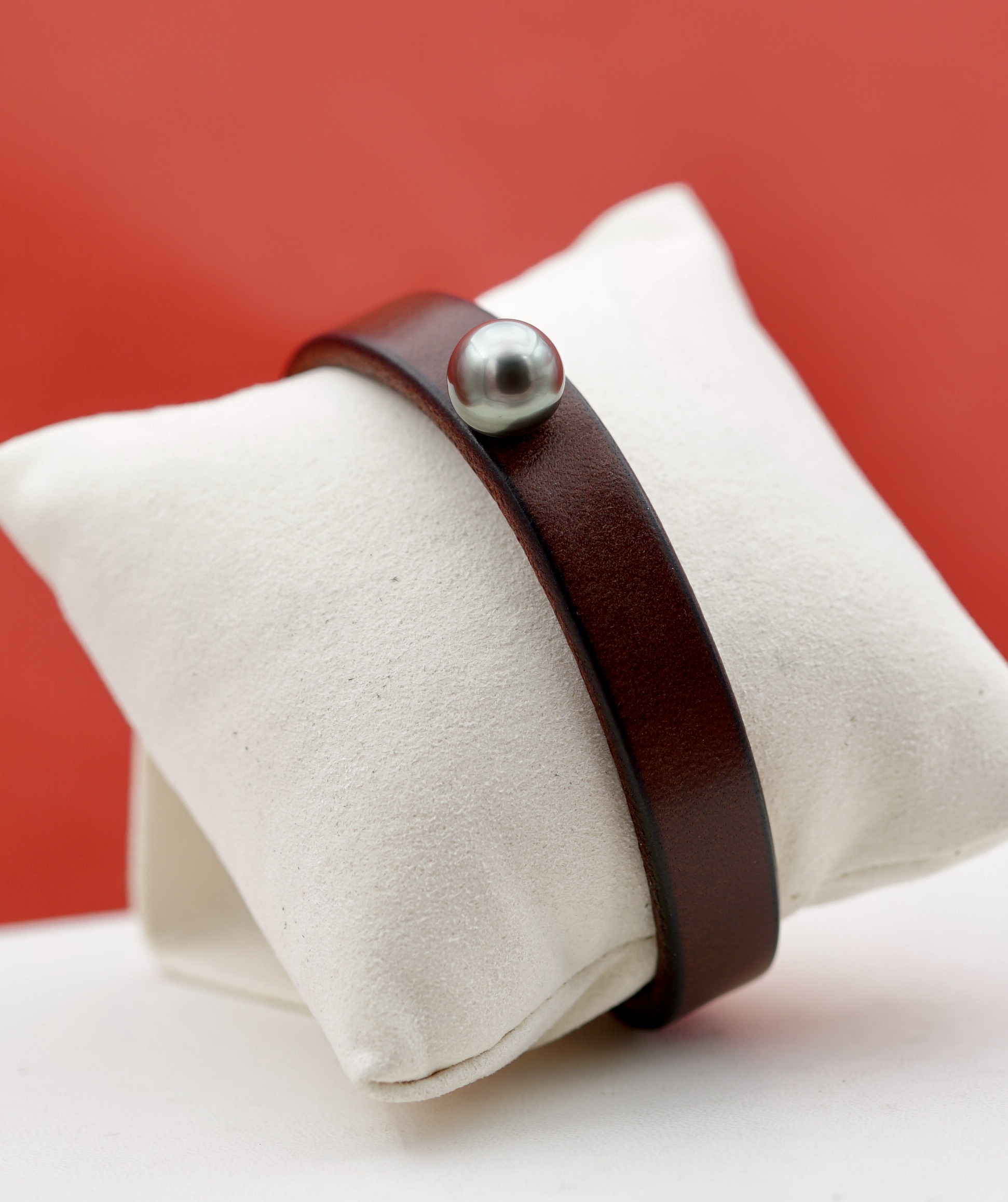 Bracelet en Perle de Tahiti sur Cuir – Harmonie Naturelle et Éclat Intemporel