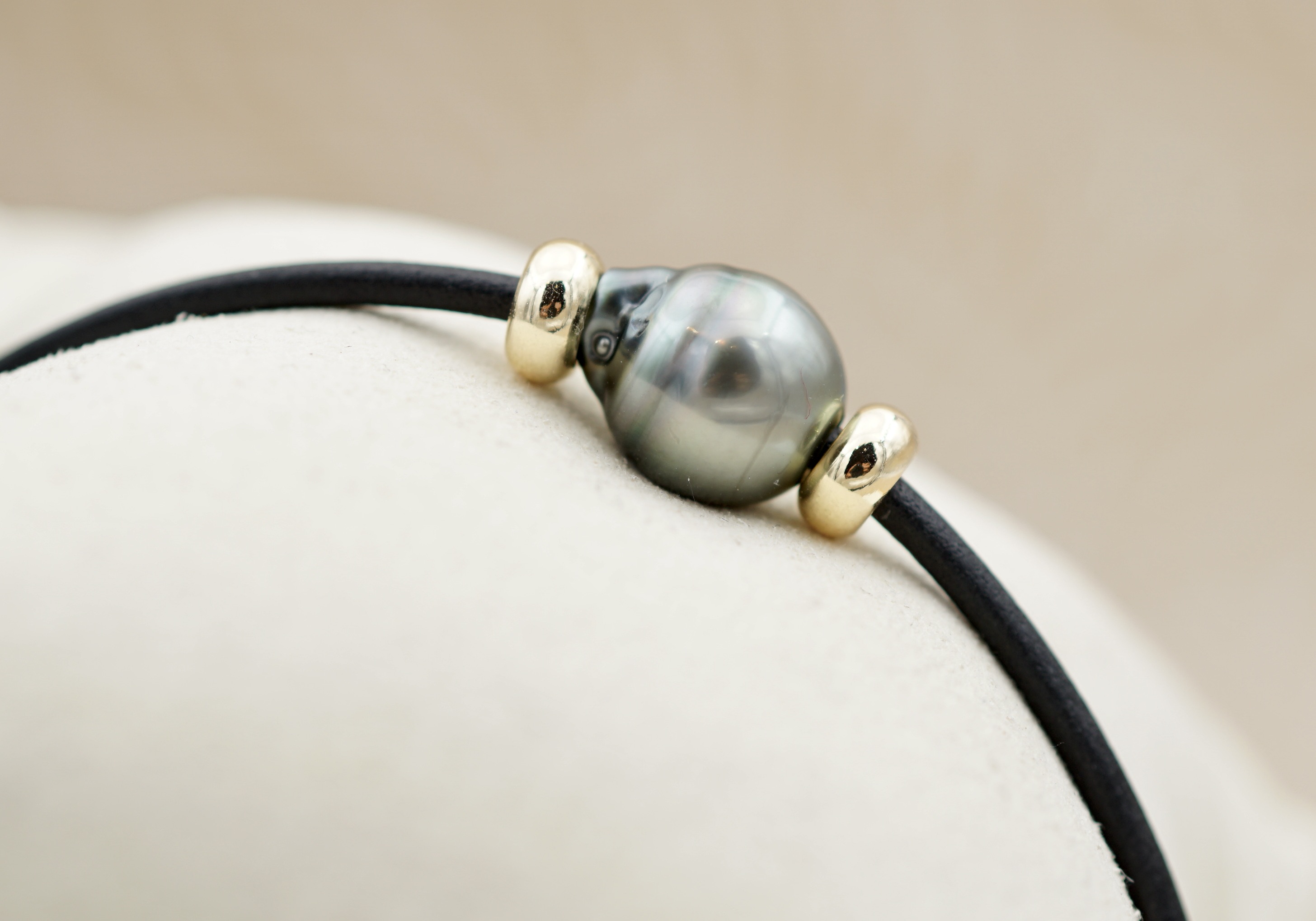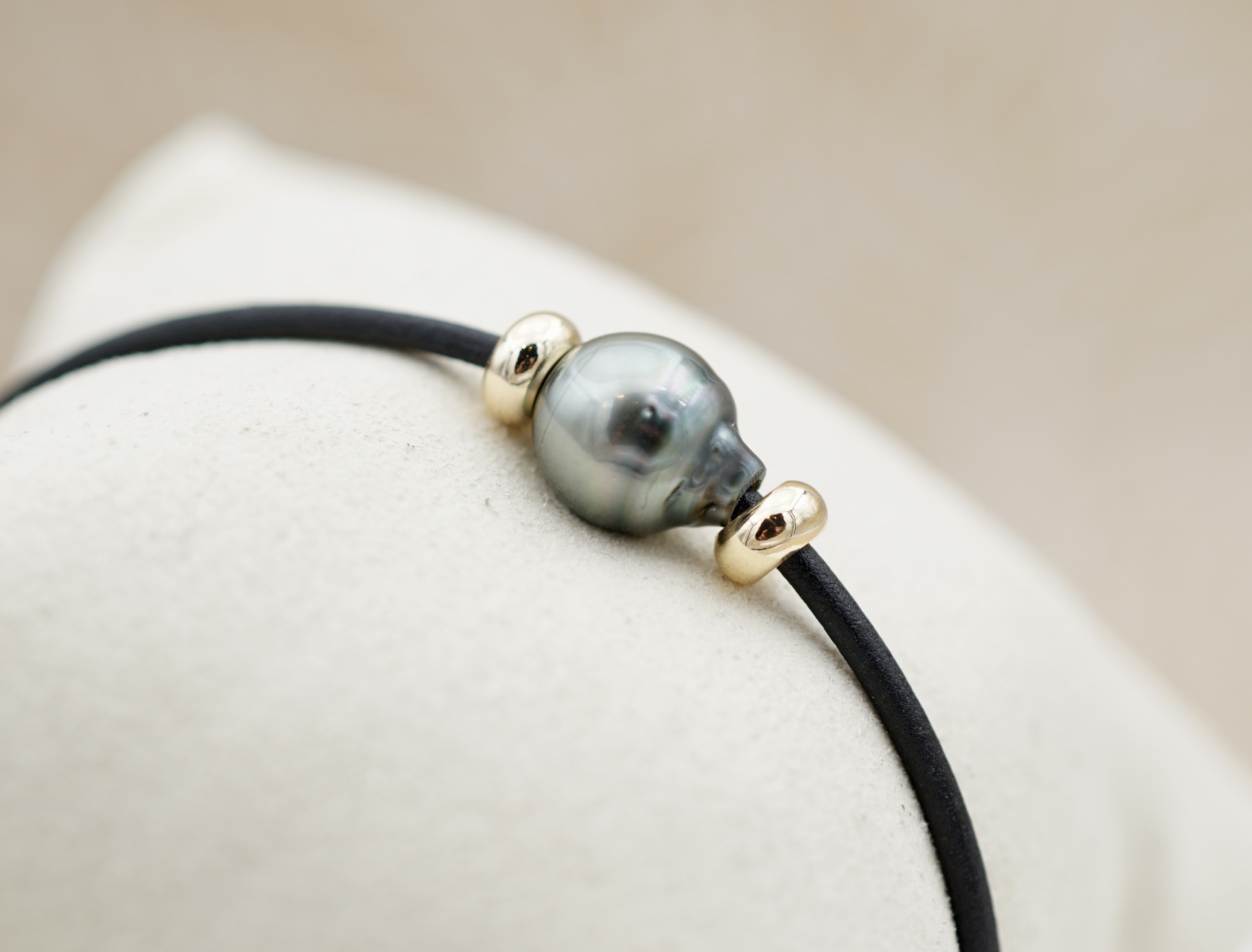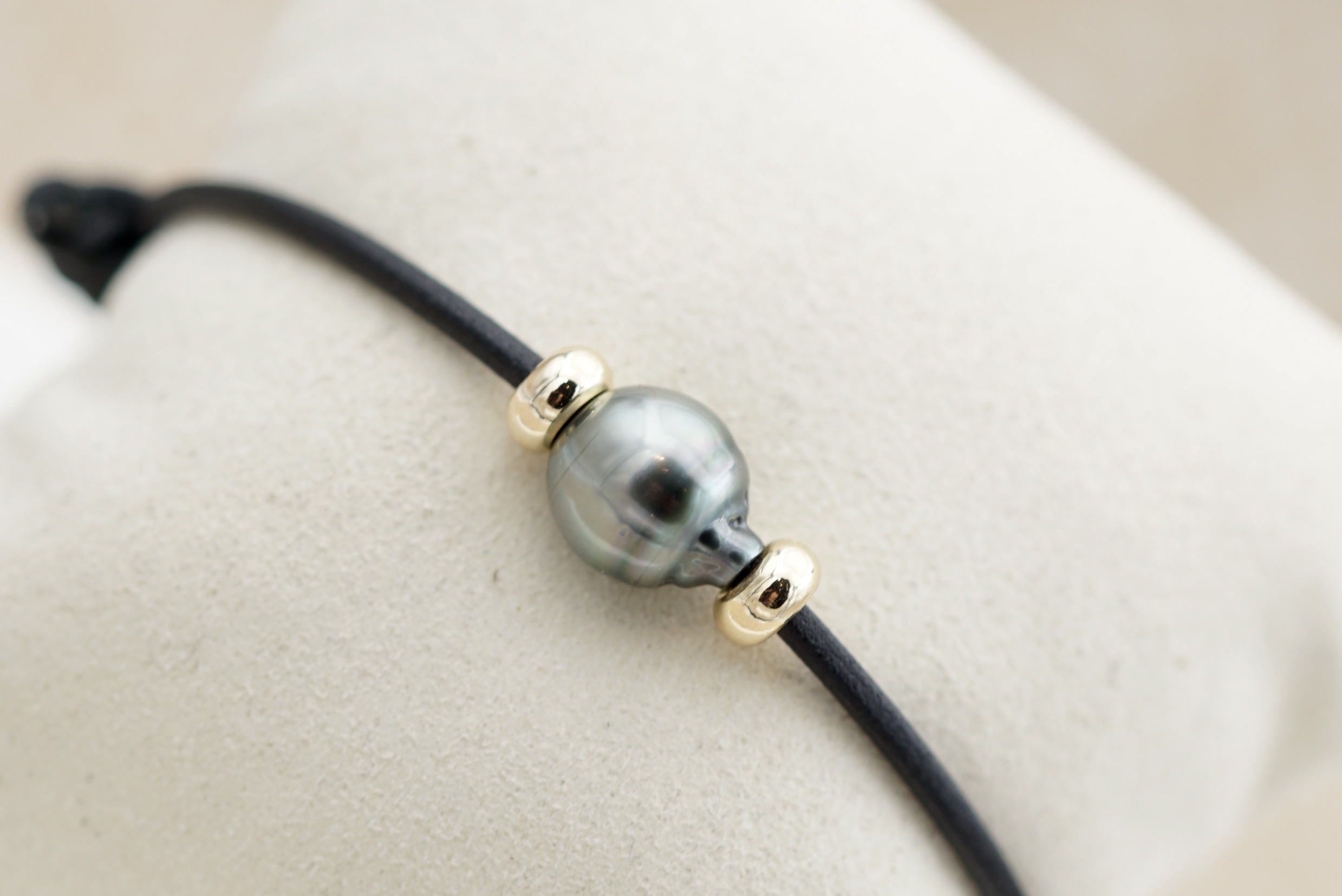 Portez un symbole de raffinement naturel avec ce bracelet orné d’une véritable perle noire de culture de Tahiti. Sélectionnée pour son lustre profond et ses reflets uniques, chaque perle incarne la pureté des lagons polynésiens.