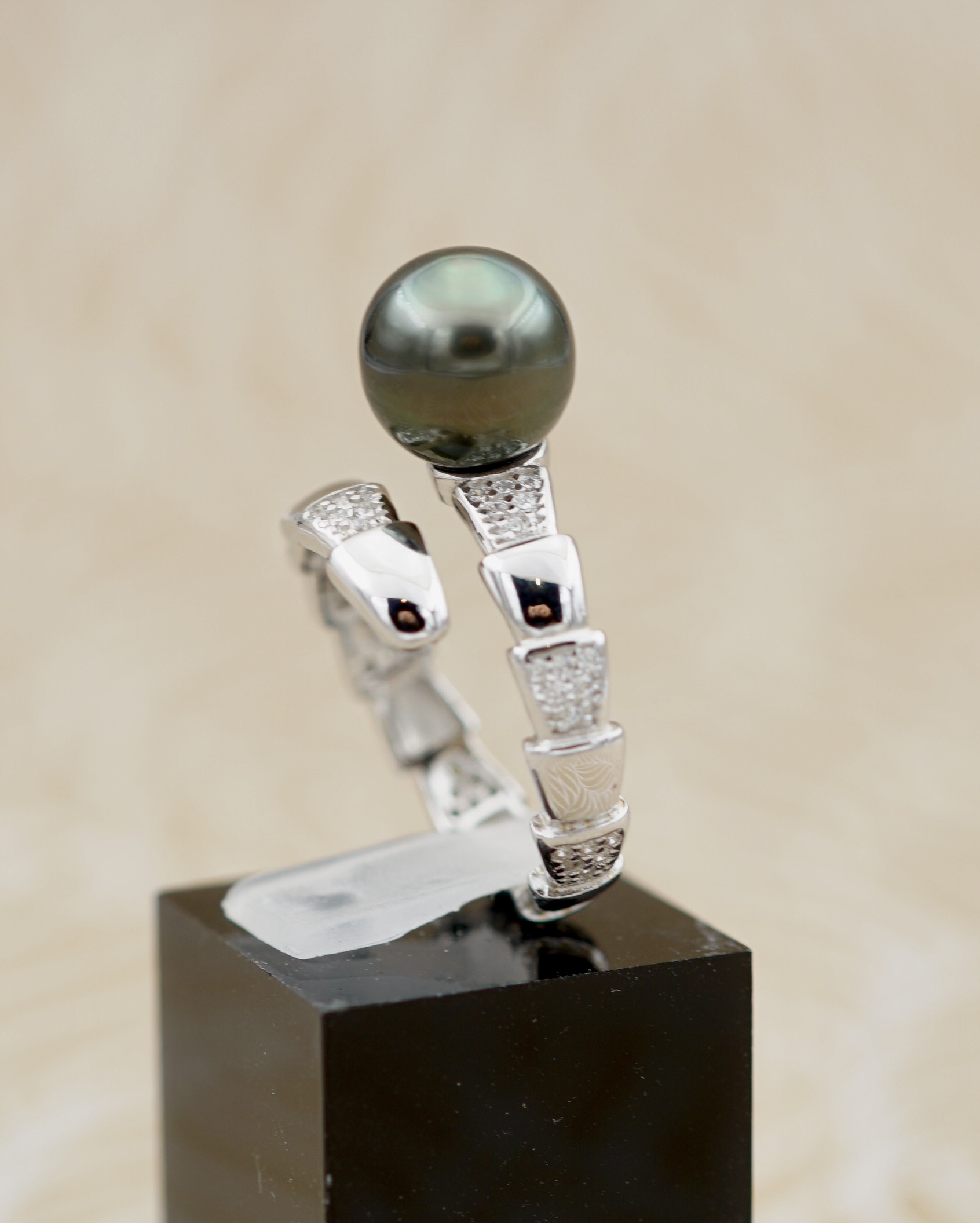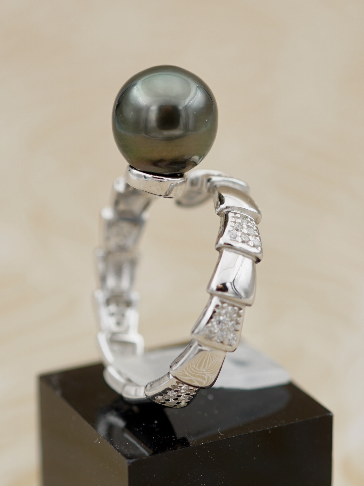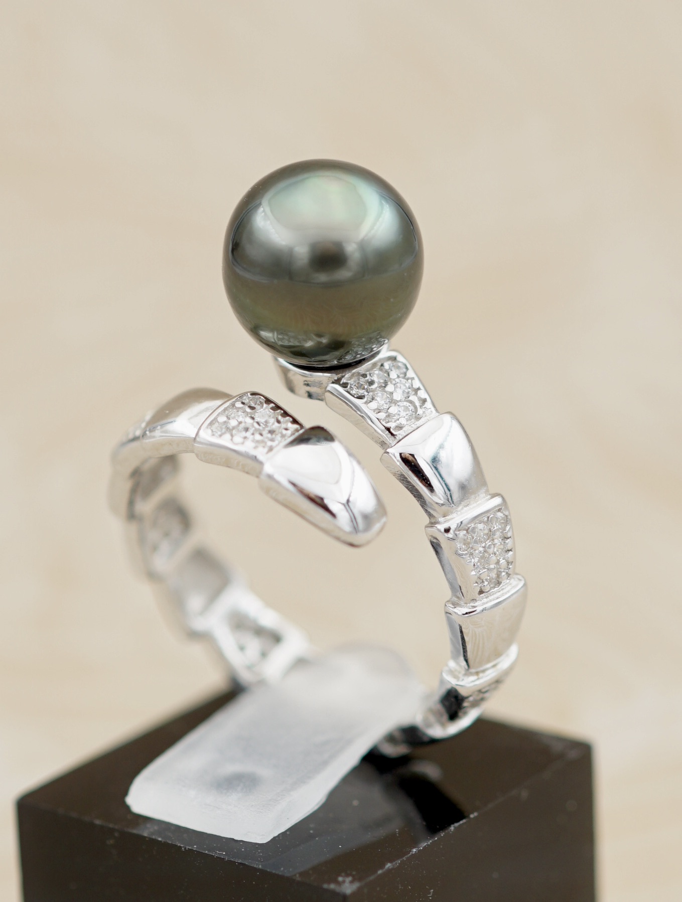 Cette bague en argent massif, sertie d’une perle de Tahiti sélectionnée avec soin, incarne le raffinement à l’état pur. La perle révèle des nuances profondes – aubergine, vert ou bronze – pour une touche de luxe sobre et naturelle.