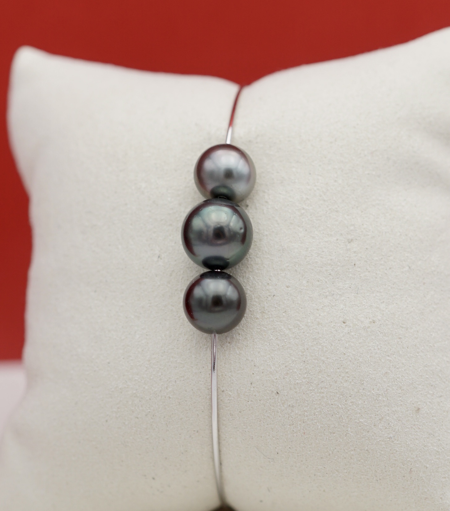 Ce bracelet en argent 925mm, orné de perles de Tahiti sélectionnées pour leur éclat unique, incarne un équilibre parfait entre modernité et tradition. Chaque perle dévoile des reflets profonds – aubergine, vert, bronze – pour un rendu à la fois subtil et luxueux.
