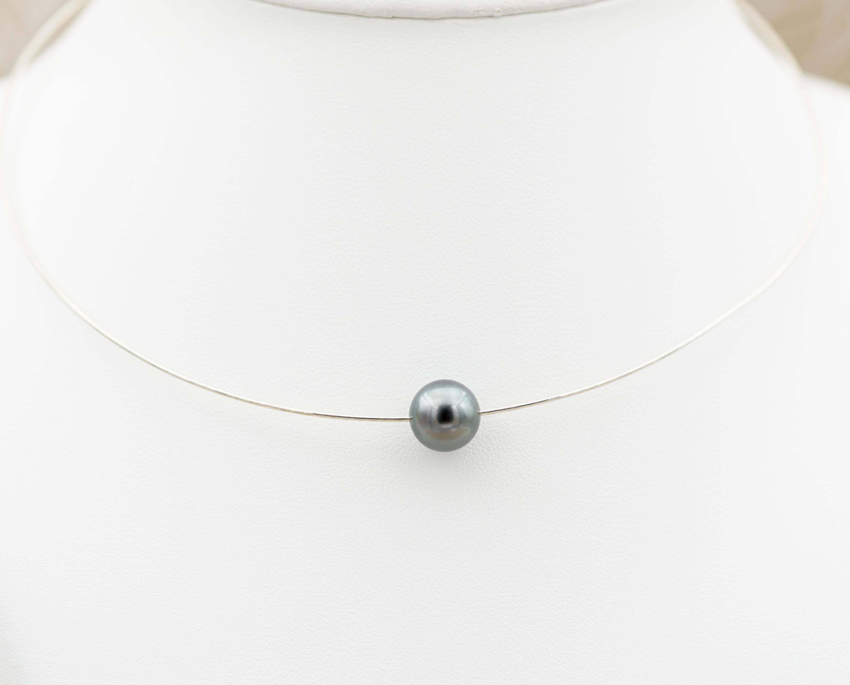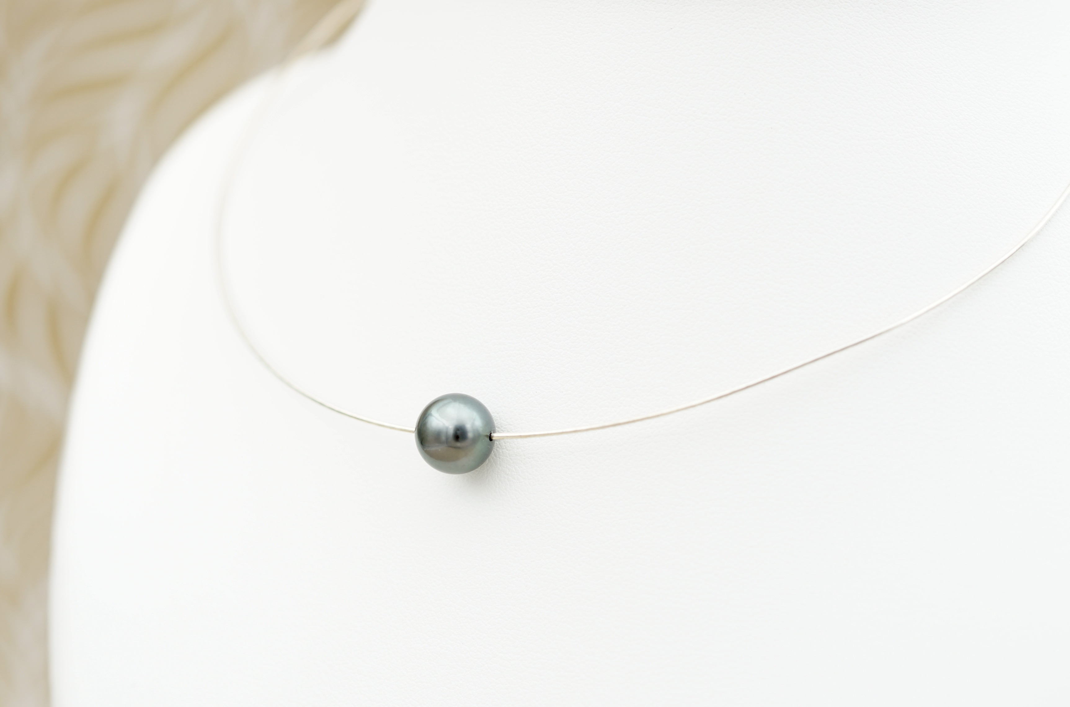 Cable en argent rhodié 925, au design épuré, pour mettre en valeur la perle sans superflu.