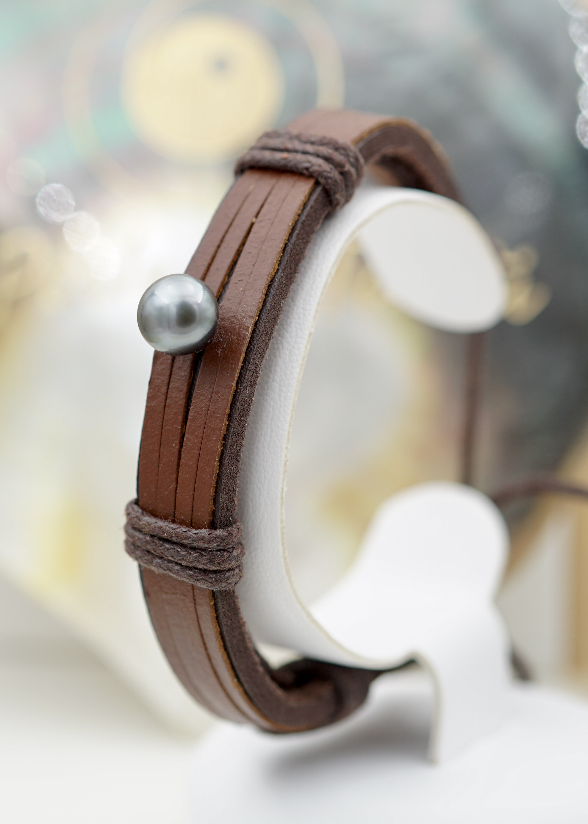 Bracelet en Perle de Tahiti sur Cuir – Harmonie Naturelle et Éclat Intemporel
