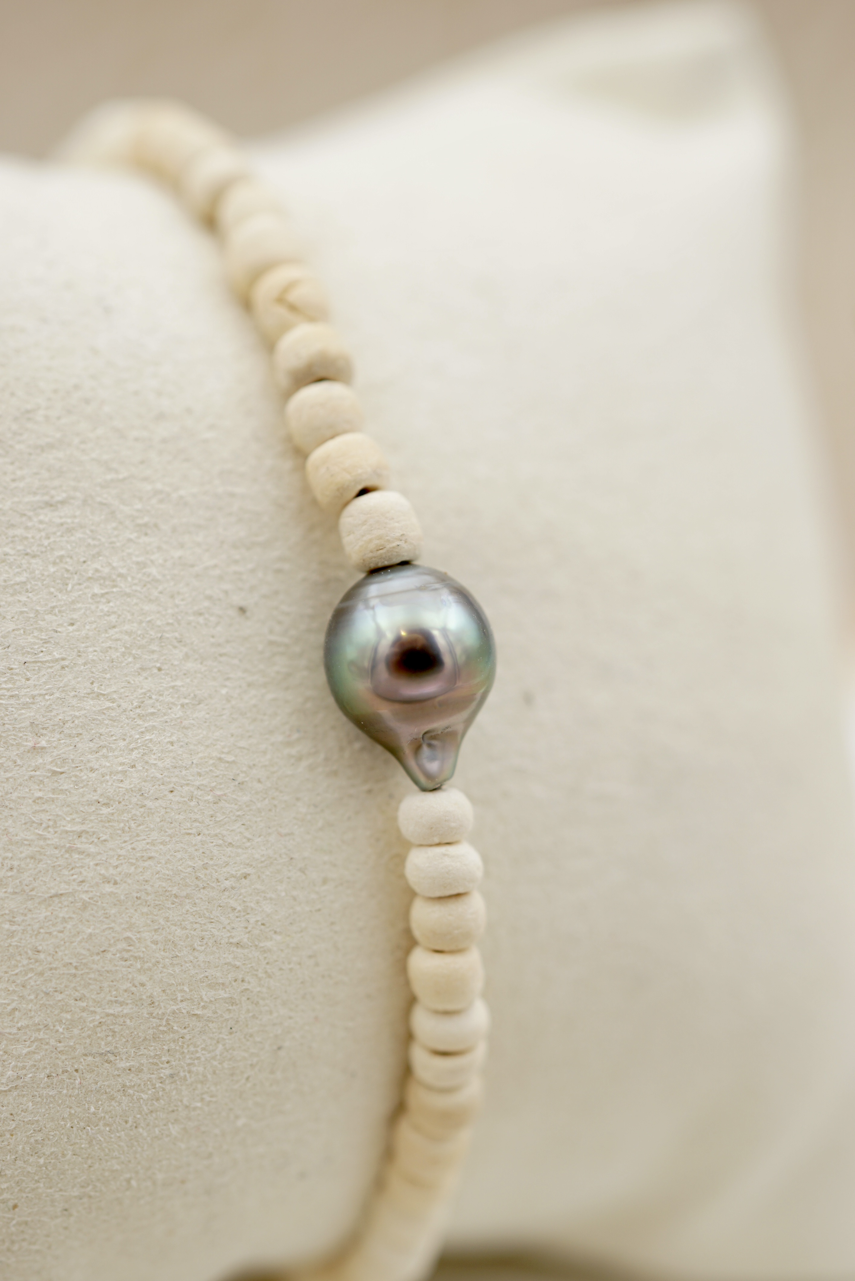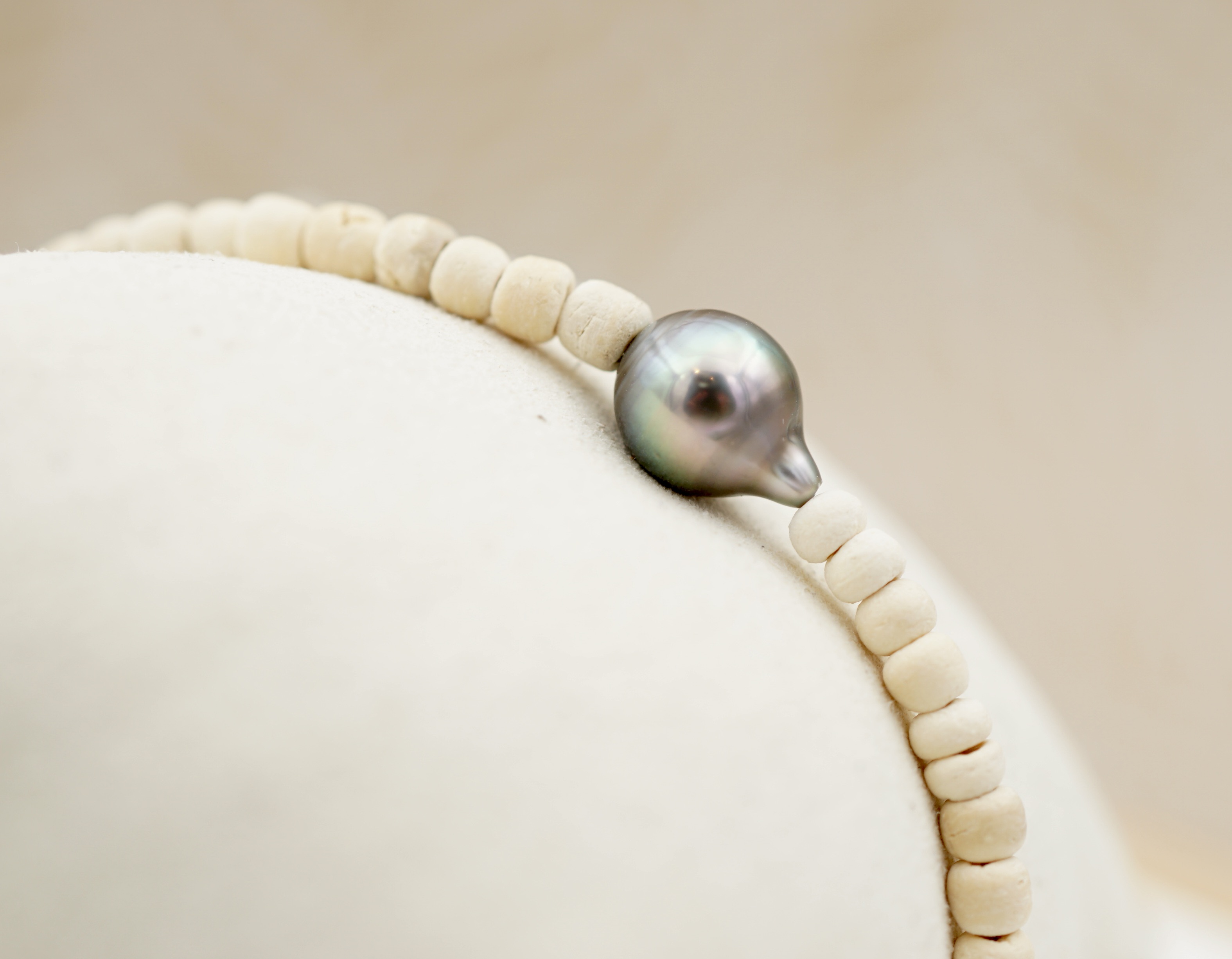 Cette perle est sélectionnée pour son lustre intense et ses reflets profonds, hérités des eaux pures de Polynésie.