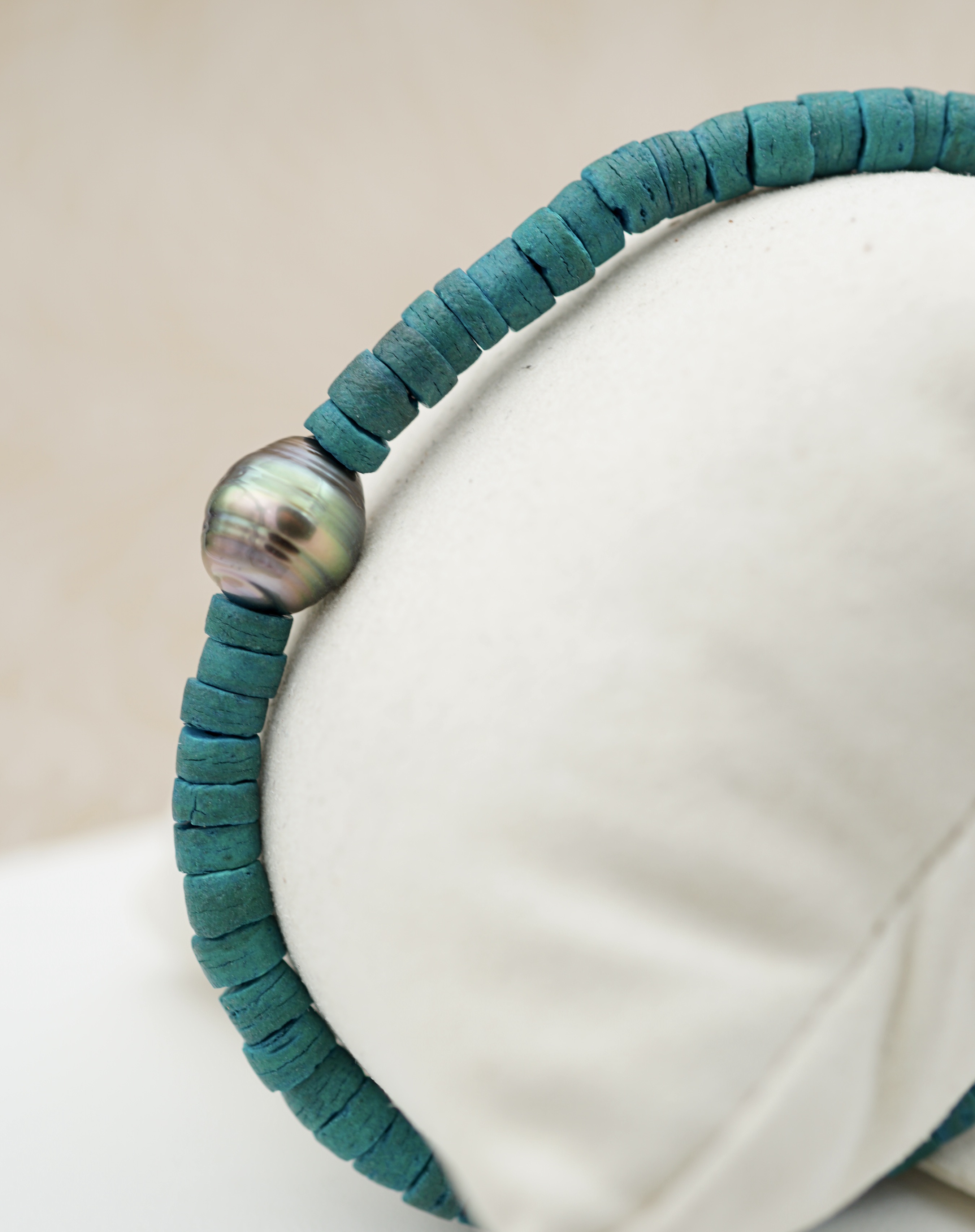 Portez un symbole de raffinement naturel avec ce bracelet orné d’une véritable perle noire de culture de Tahiti, et de perles Heishsis.