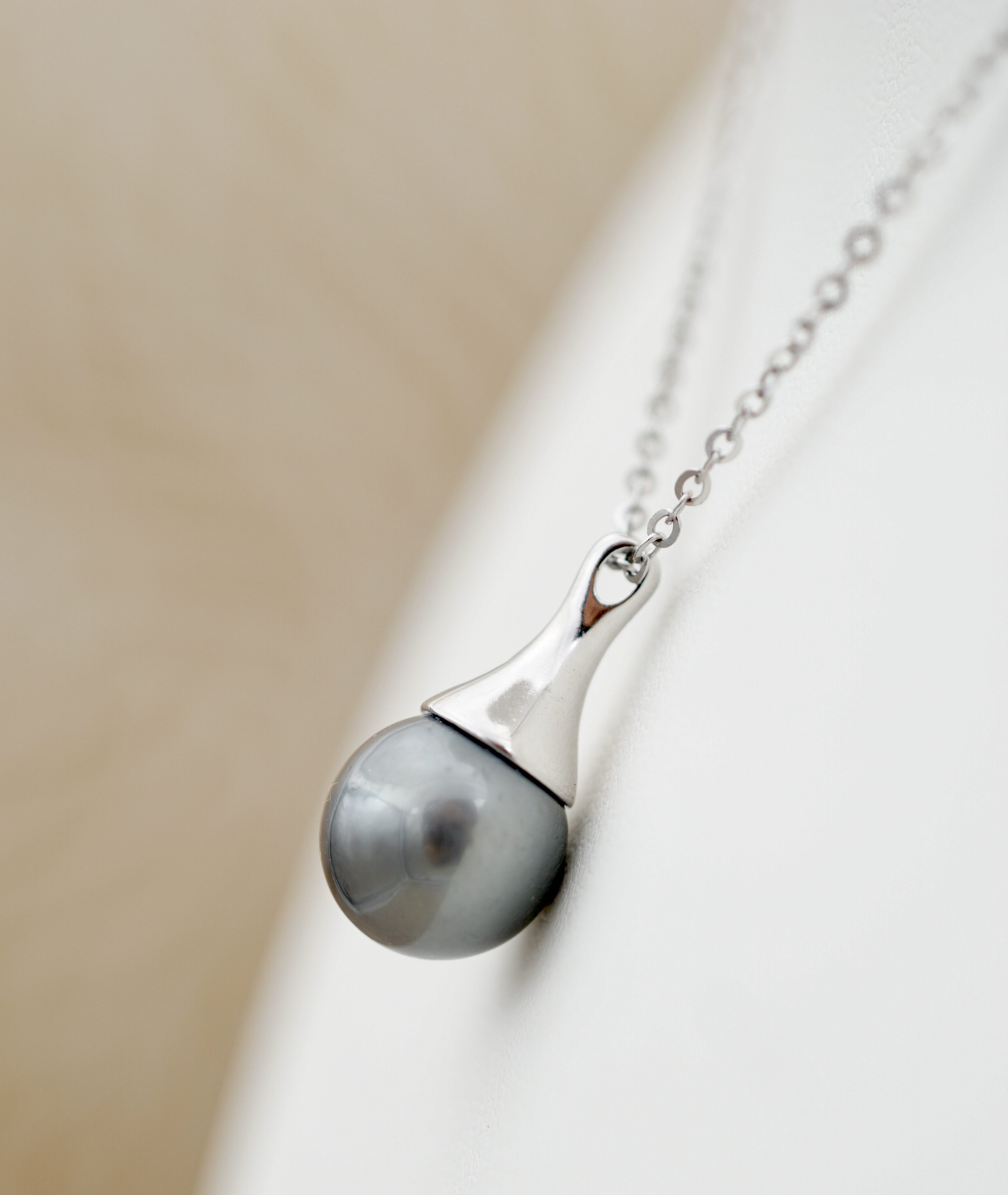 Ce collier conjugue la modernité de l’argent massif à la beauté brute d’une perle de Tahiti authentique. Montée sur une chaîne fine en argent 925, la perle capte la lumière et dévoile des reflets profonds aux nuances irisées : argent givré et aubergine intense.