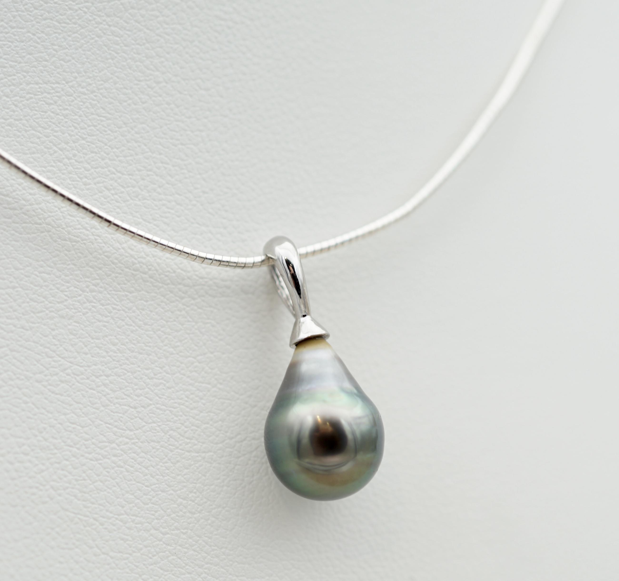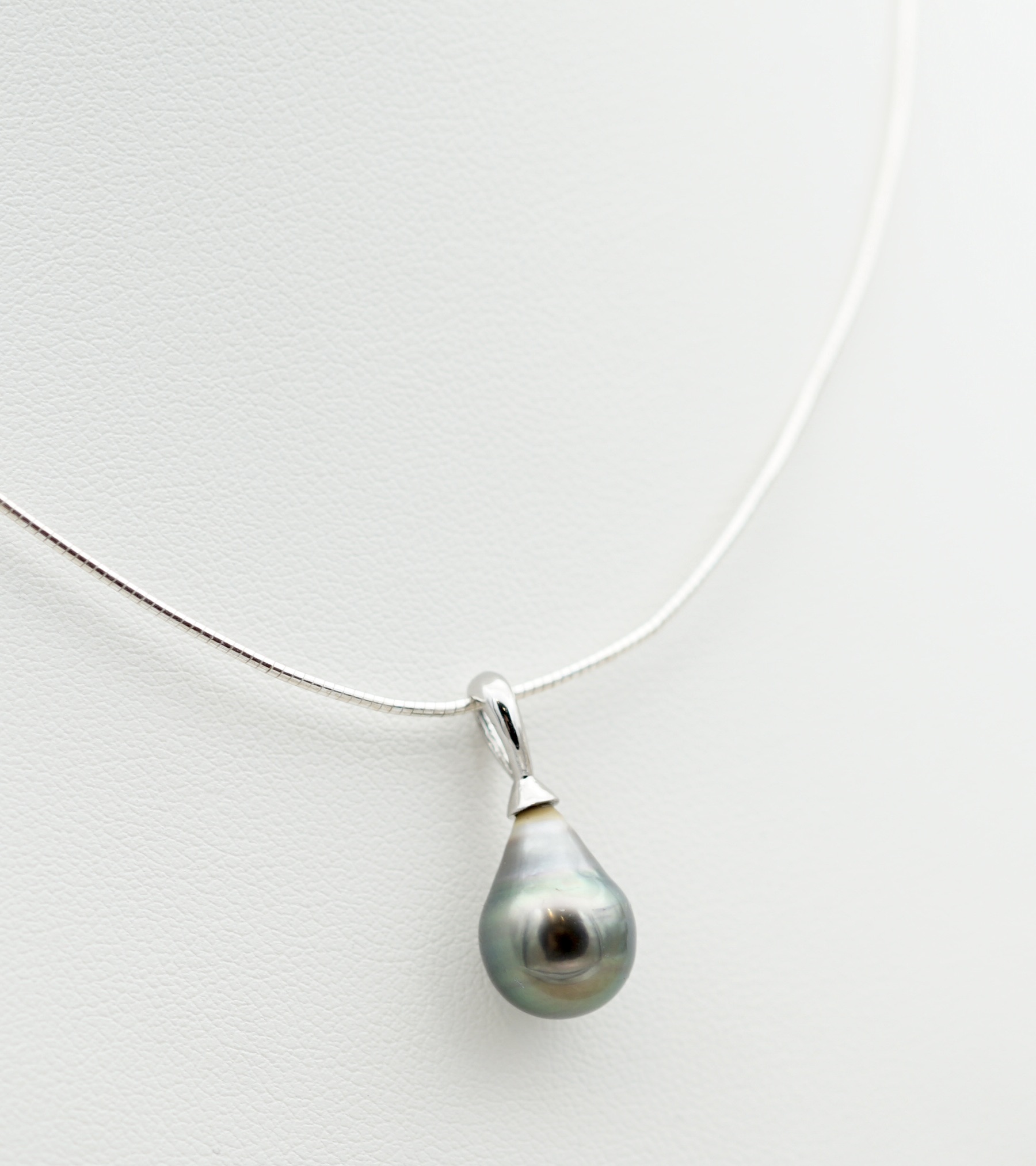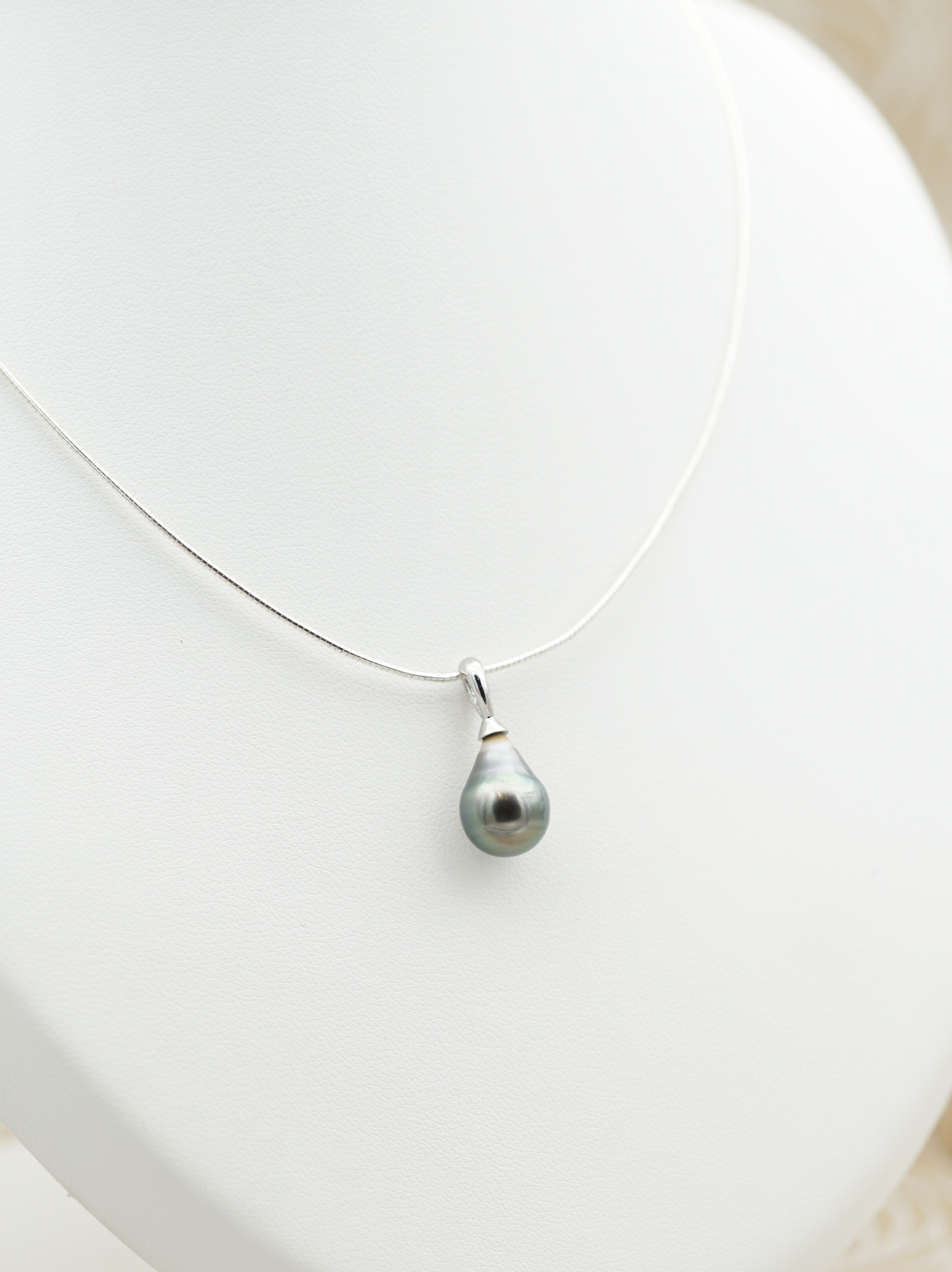 Cable en argent rodhié 925, au design épuré, pour mettre en valeur la perle sans superflu.