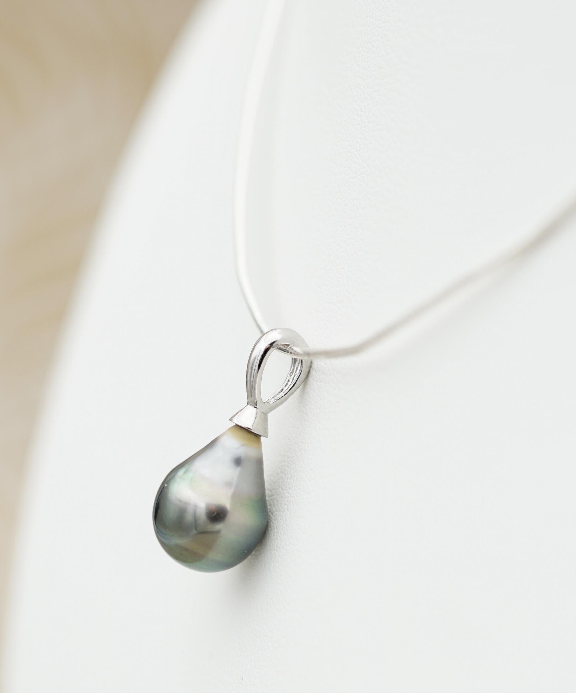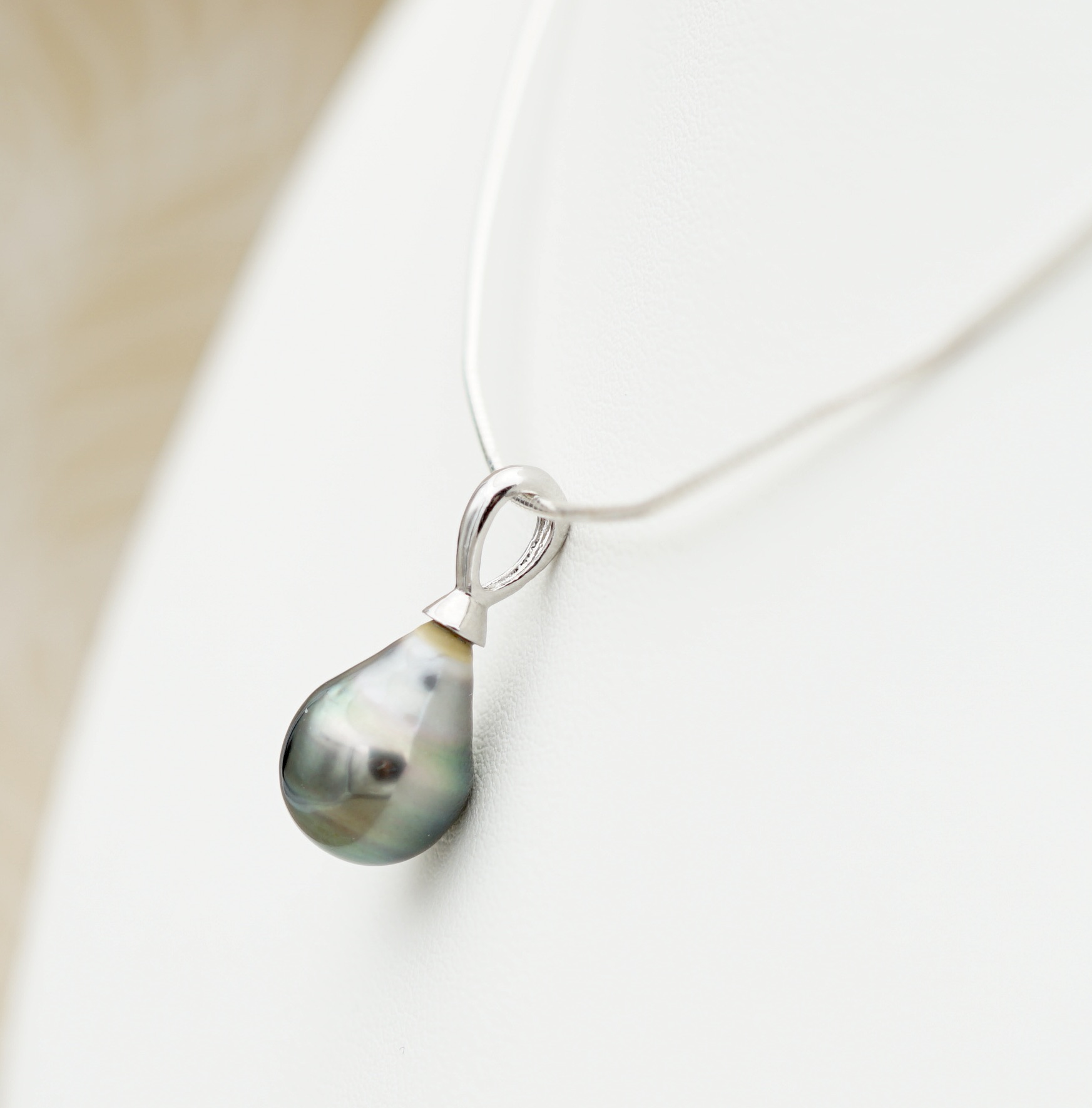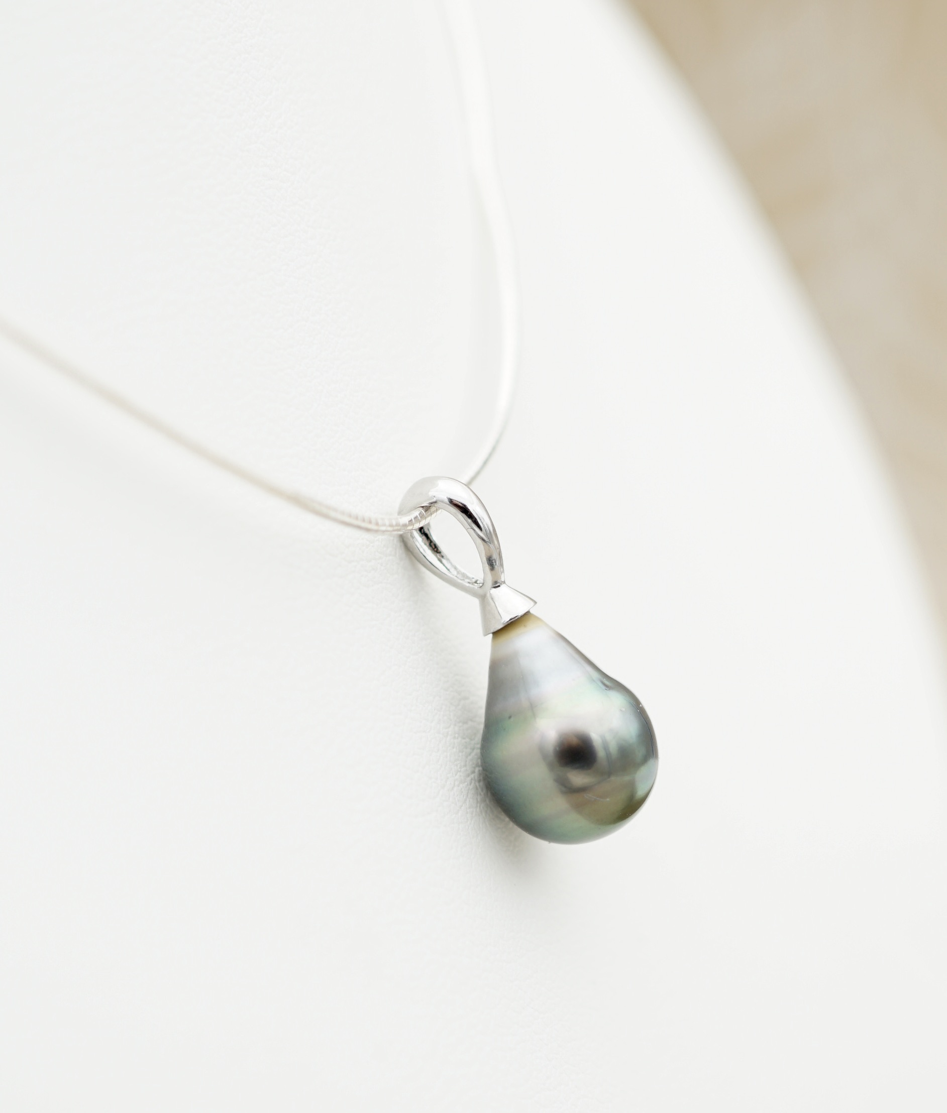 Cable en argent rodhié 925, au design épuré, pour mettre en valeur la perle sans superflu.
