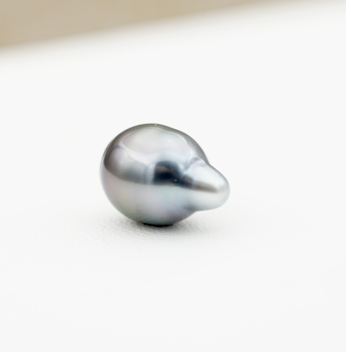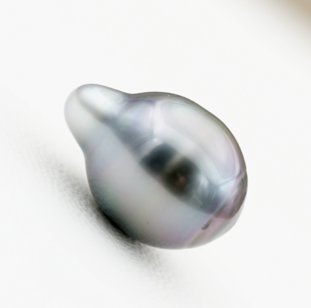 Laissez-vous séduire par cette splendide perle baroque de culture de Tahiti, d’un diamètre de 8.7mm. Véritable trésor des lagons polynésiens, elle se distingue par son lustre profond et brillant, ainsi que par ses reflets intenses évoquant les eaux préservées de Polynésie.