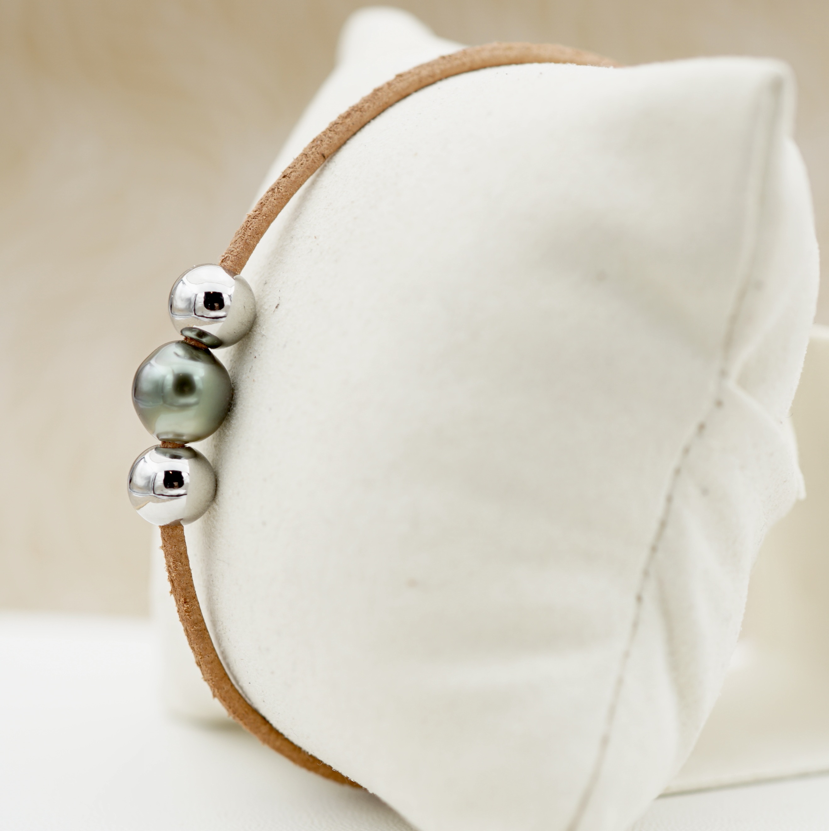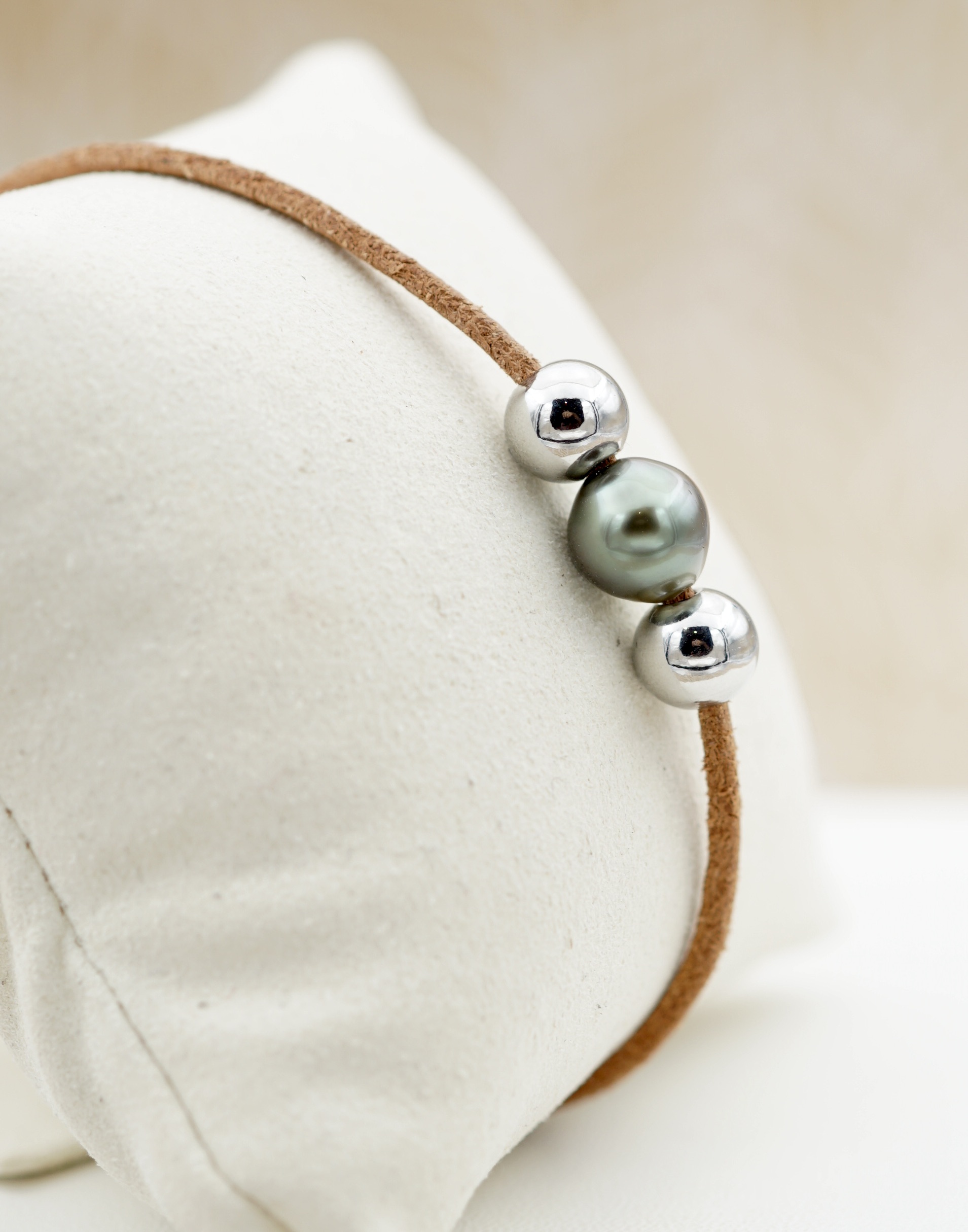 Portez un symbole de raffinement naturel avec ce bracelet orné d’une véritable perle noire de culture de Tahiti. Sélectionnée pour son lustre profond et ses reflets uniques, chaque perle incarne la pureté des lagons polynésiens.