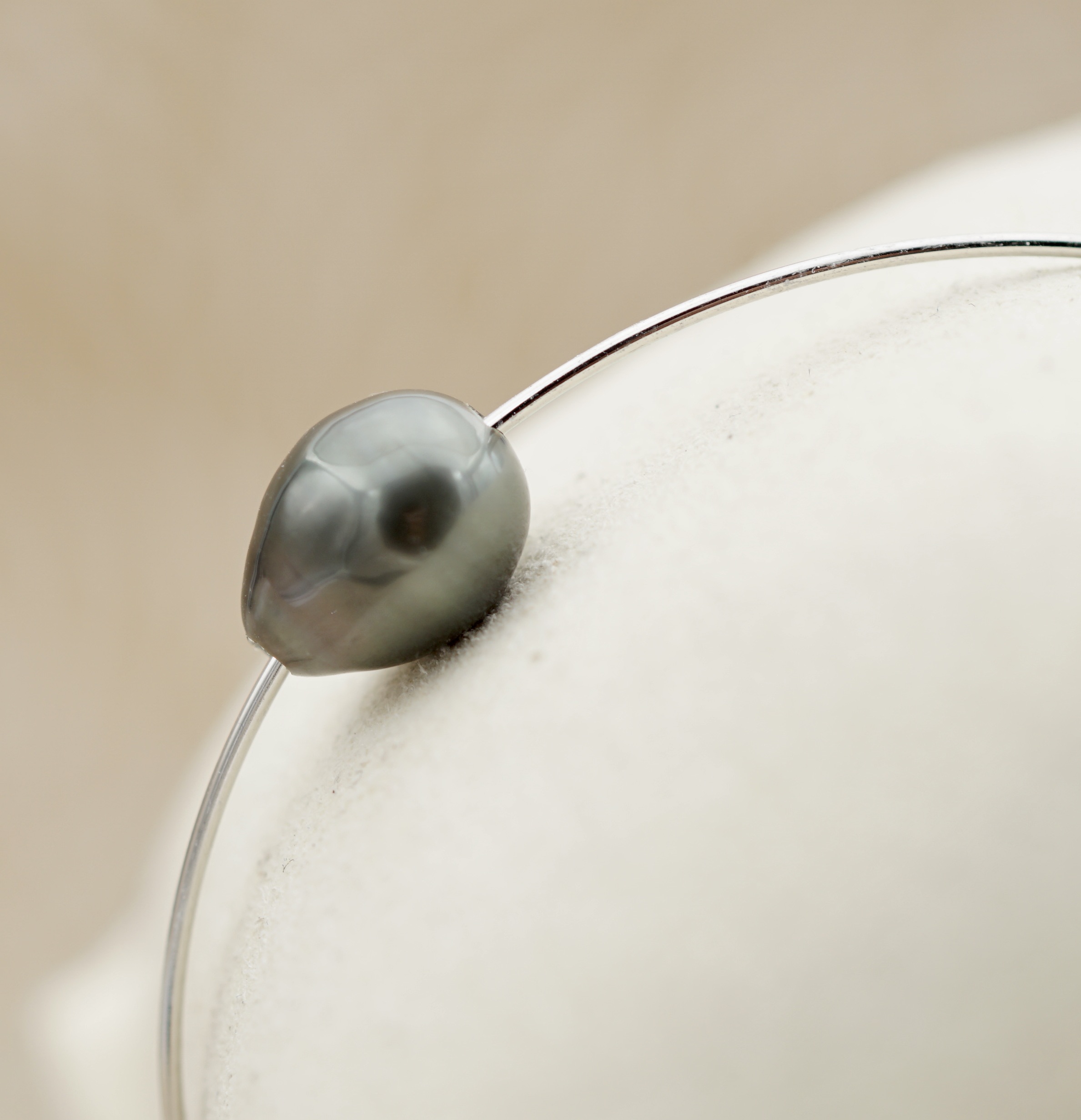 Cette perle est sélectionnée pour son lustre intense et ses reflets profonds, hérités des eaux pures de Polynésie.