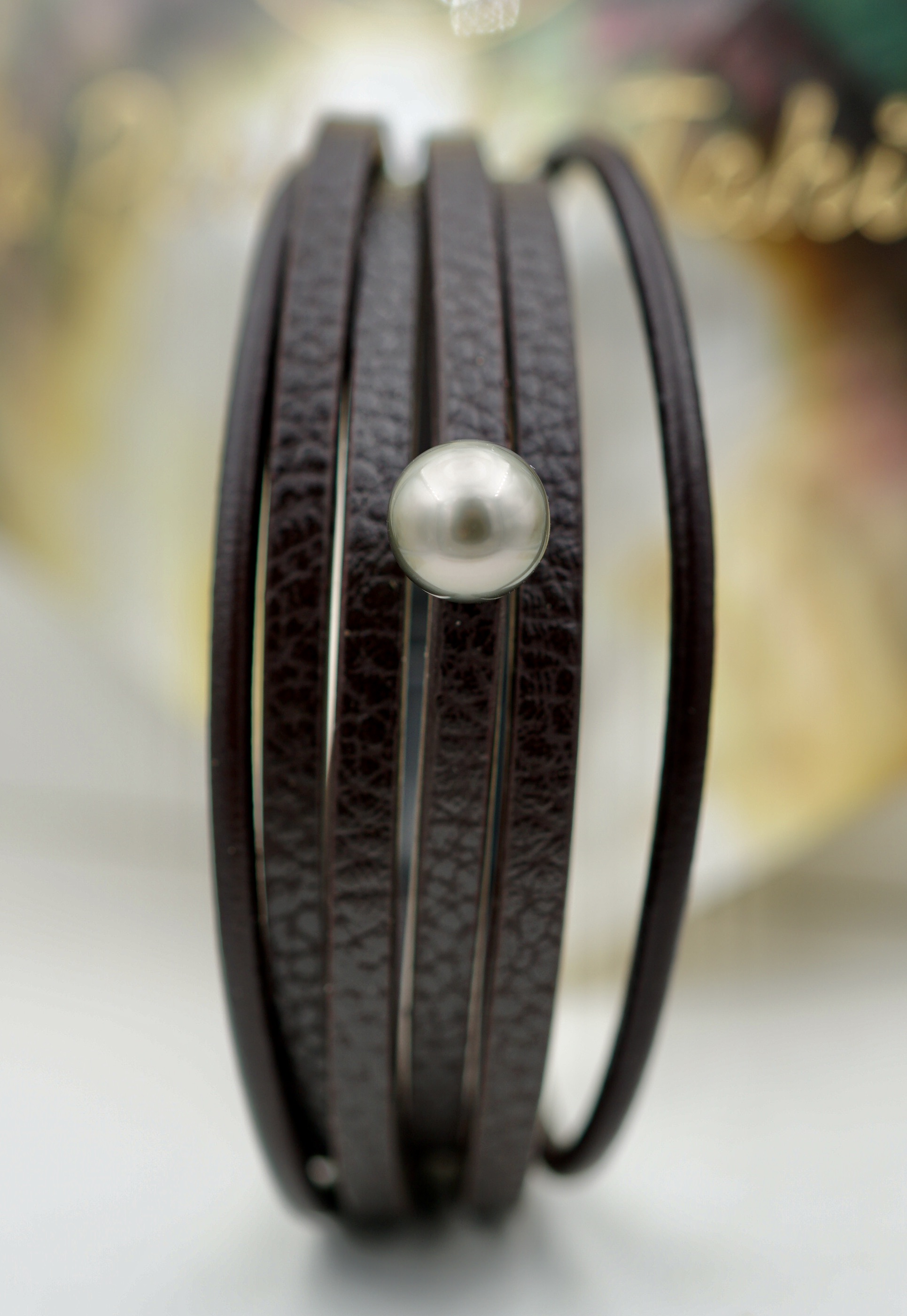 Bracelet en Perle de Tahiti sur Cuir – Harmonie Naturelle et Éclat Intemporel