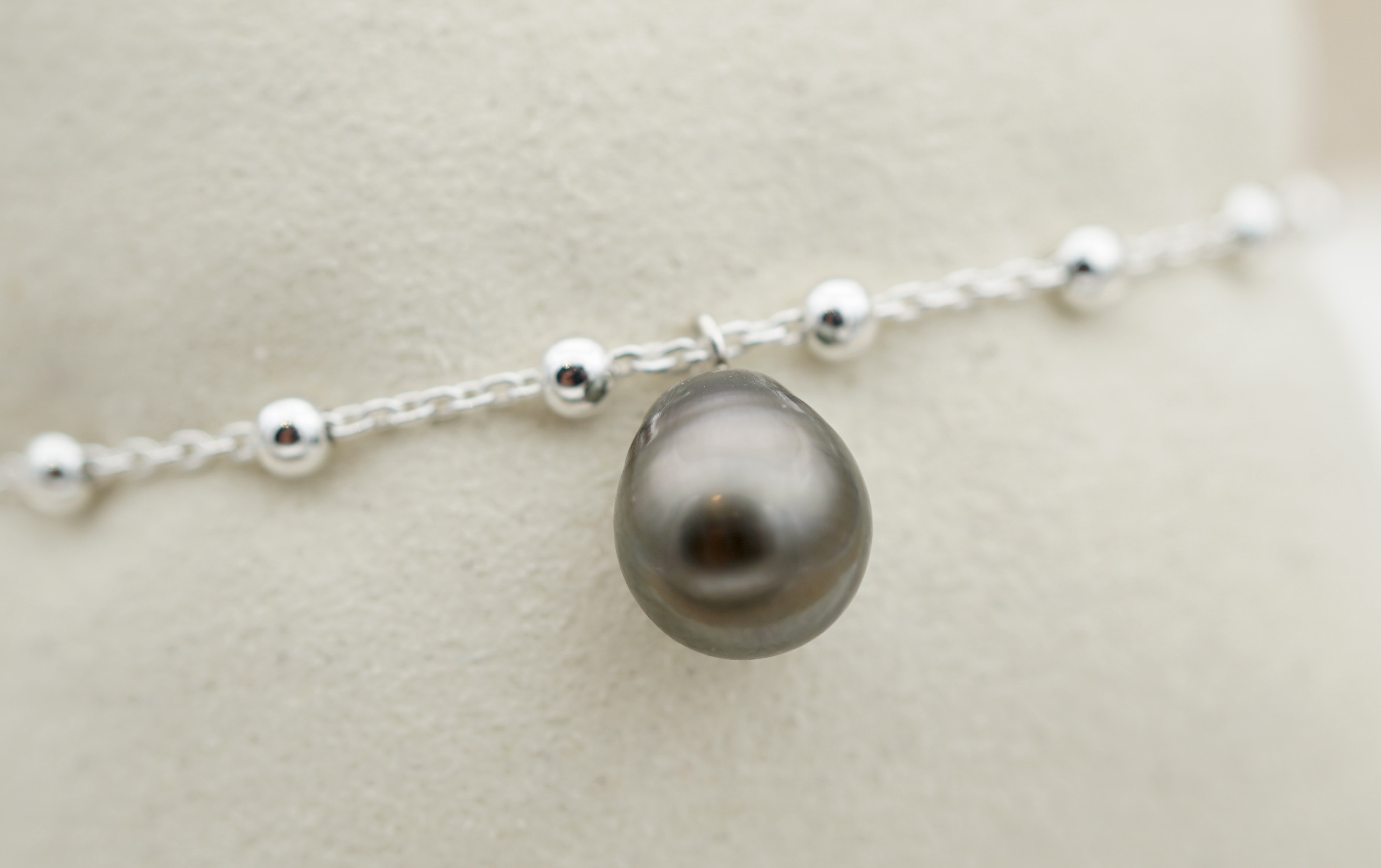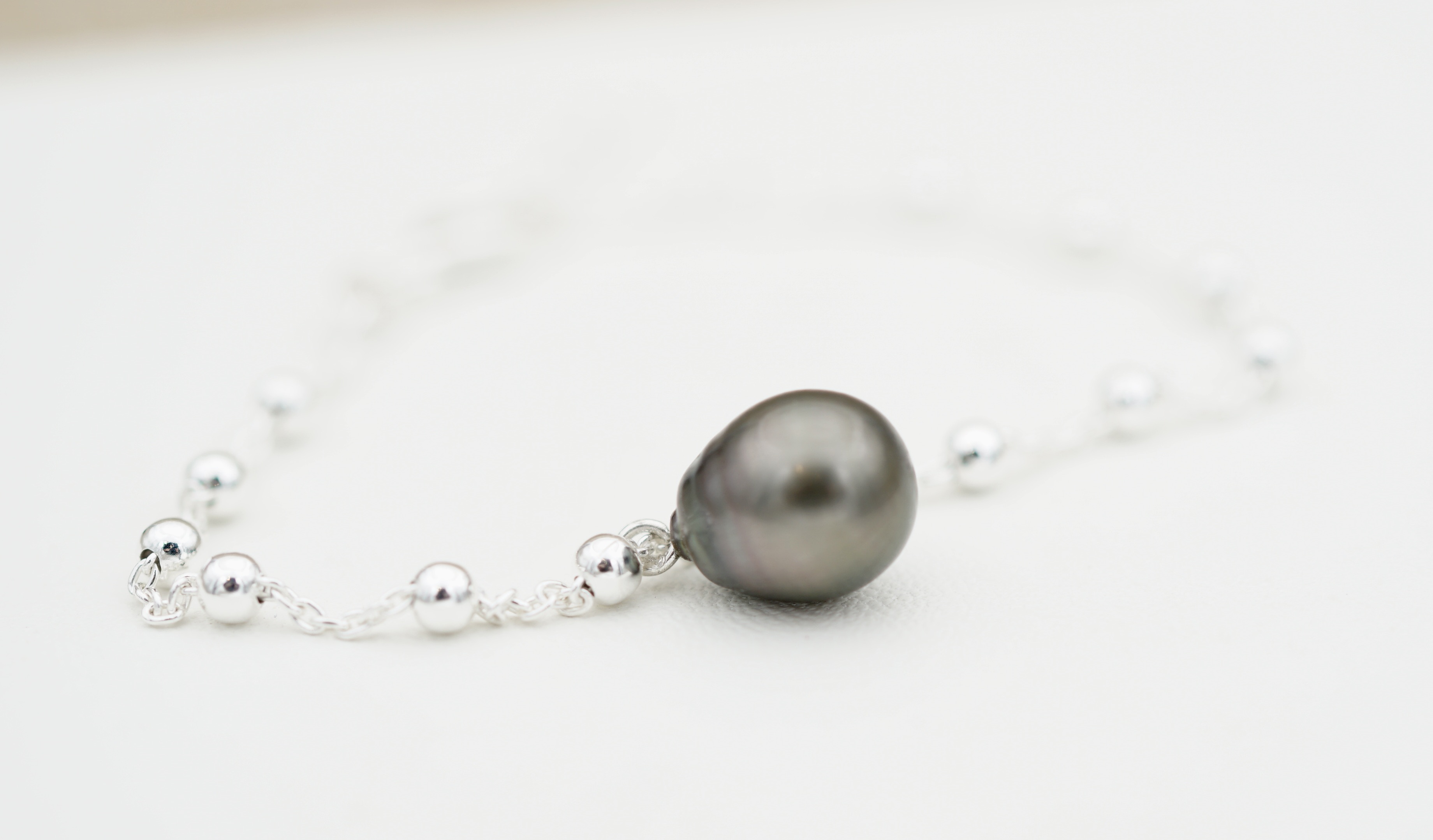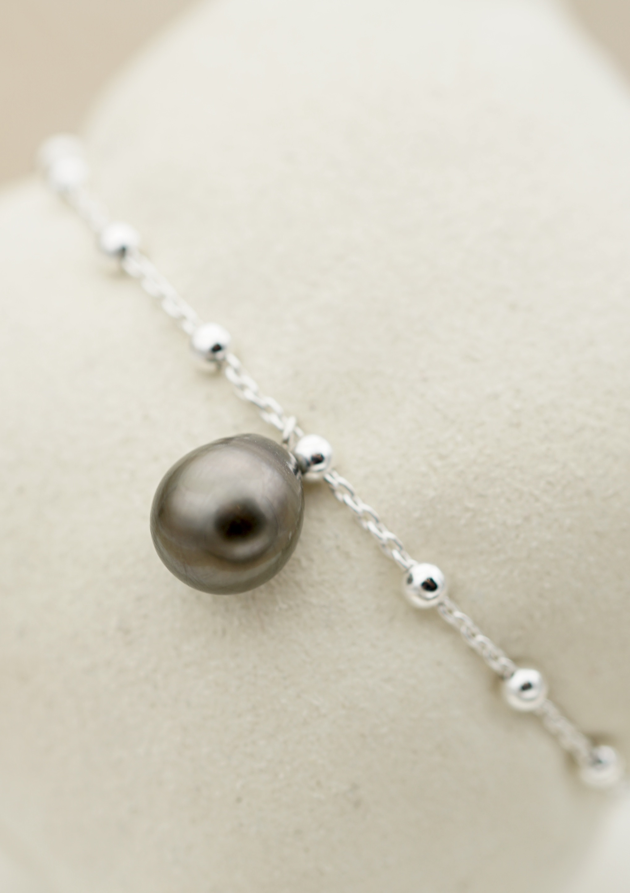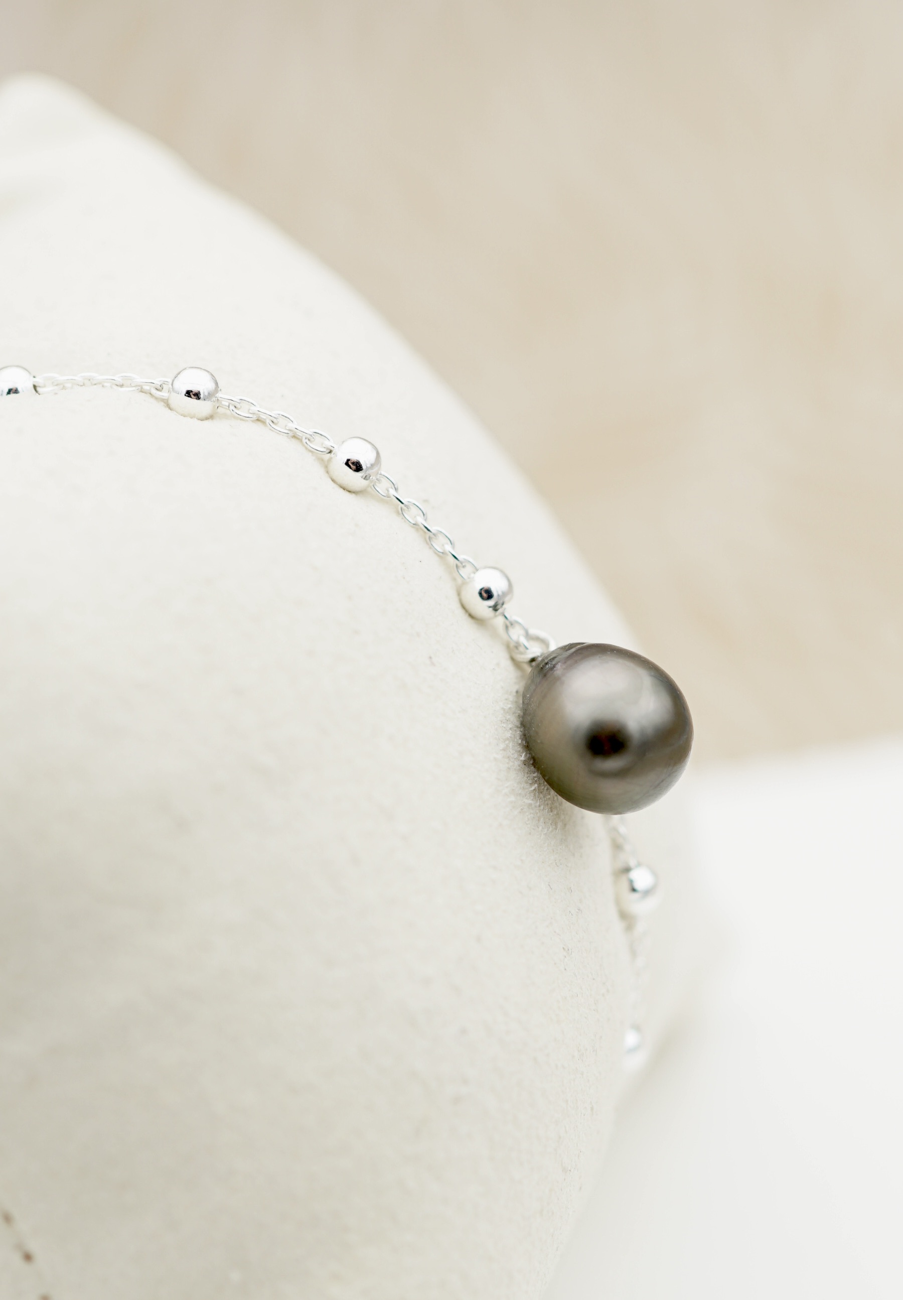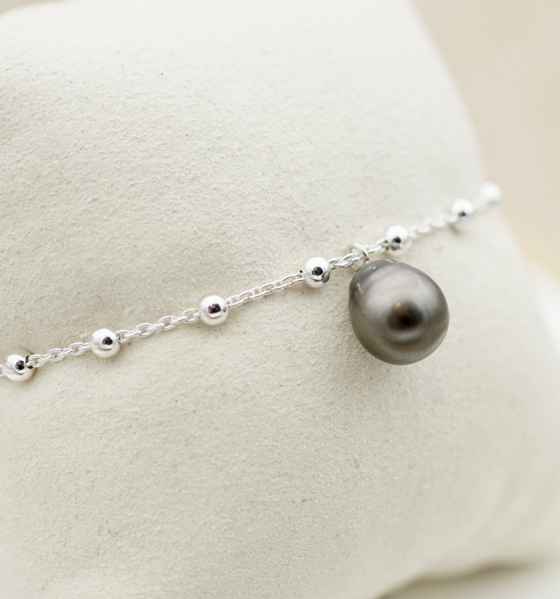 Cette perle est montée sur un bracelet en argent rodhié 925 , il associe sobriété et élégance, pour un style à la fois discret et affirmé.