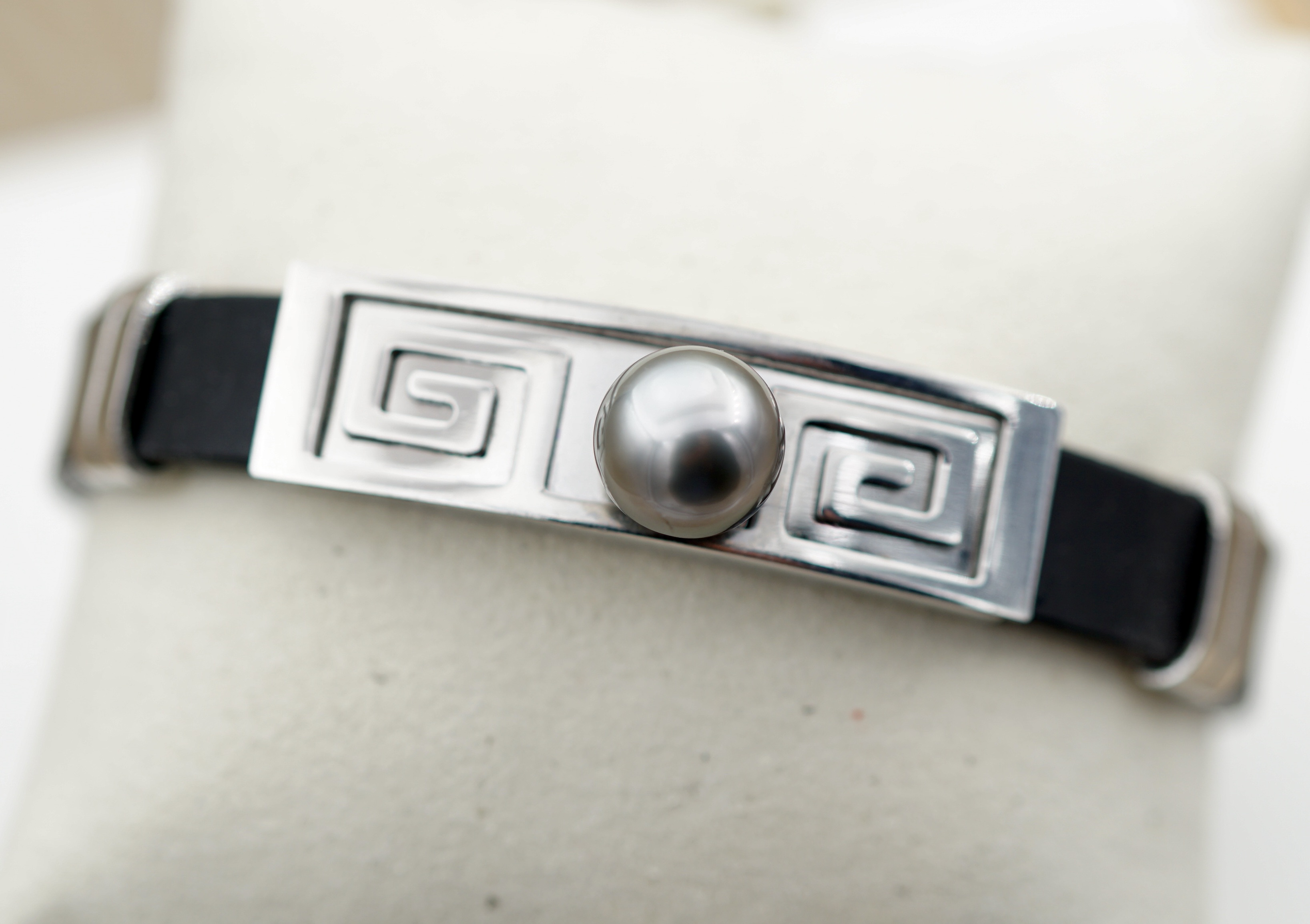 Portez un symbole de raffinement naturel avec ce bracelet orné d’une véritable perle noire de culture de Tahiti. Sélectionnée pour son lustre profond et ses reflets uniques, cette perle incarne la pureté des lagons polynésiens.