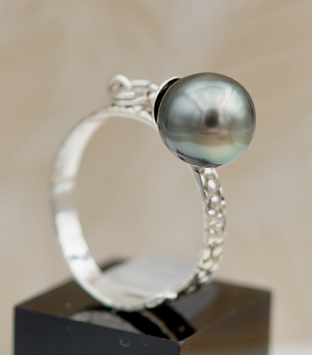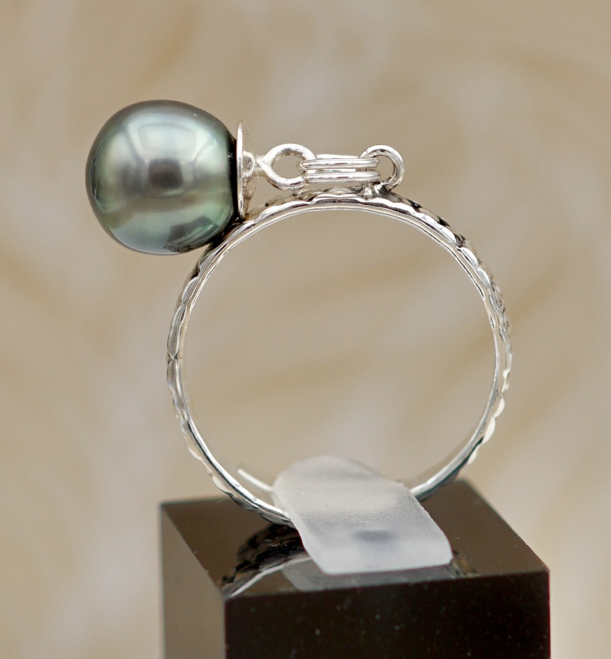 Cette bague en argent massif, sertie d’une perle de Tahiti sélectionnée avec soin, incarne le raffinement à l’état pur. La perle révèle des nuances profondes – aubergine, vert ou bronze – pour une touche de luxe sobre et naturelle.