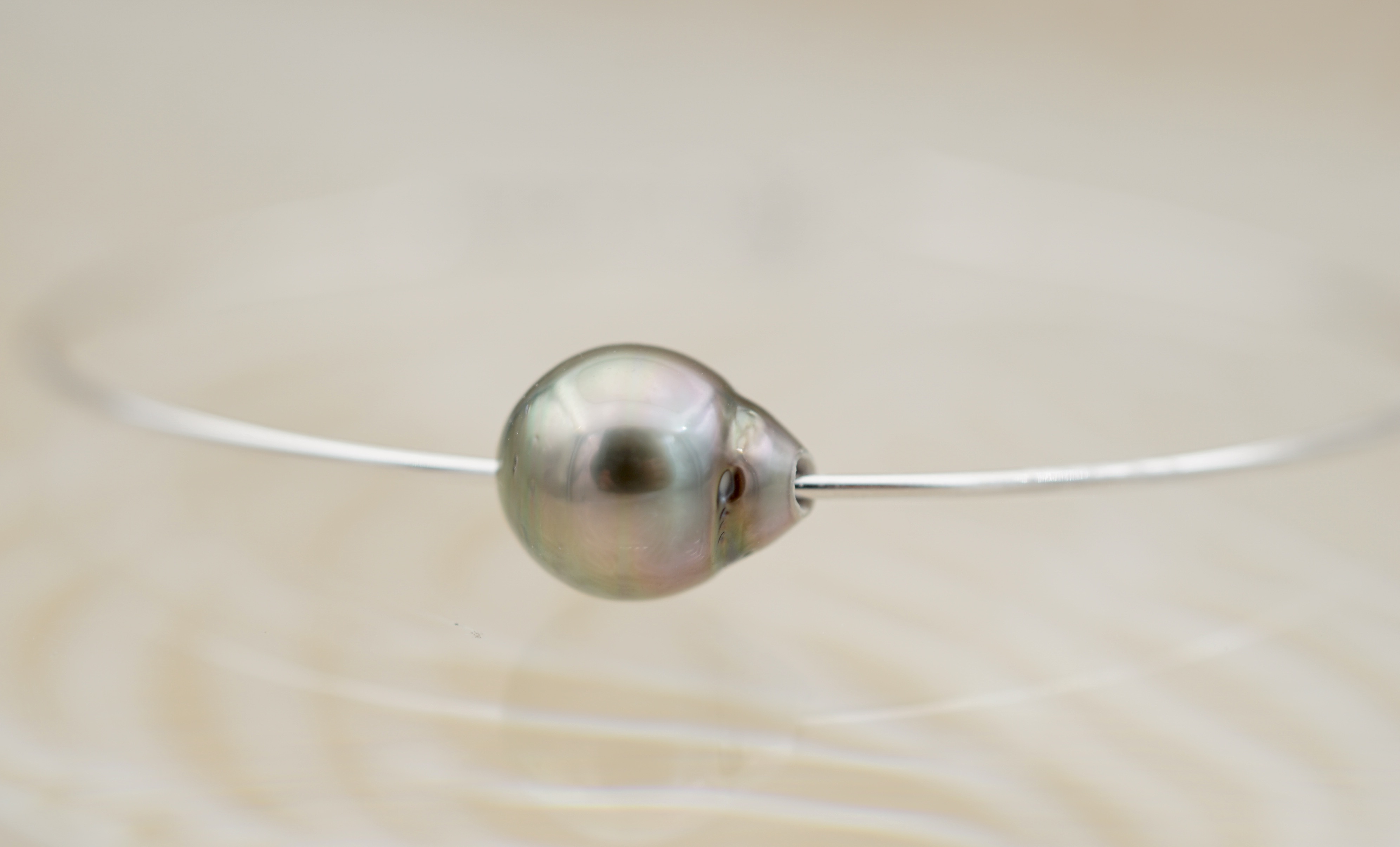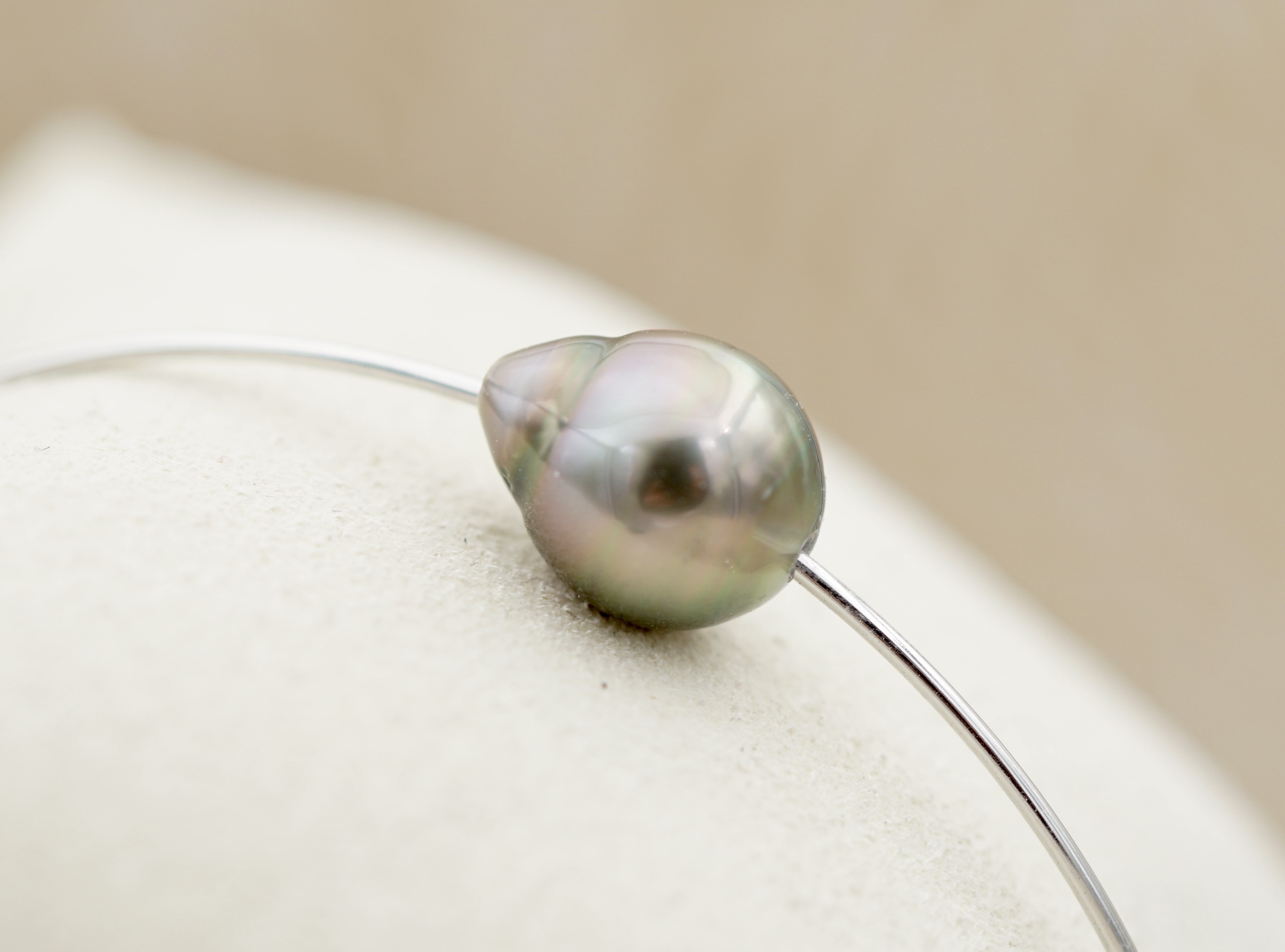 Bracelet en argent rhodié, orné d’une sublime perle de Tahiti.