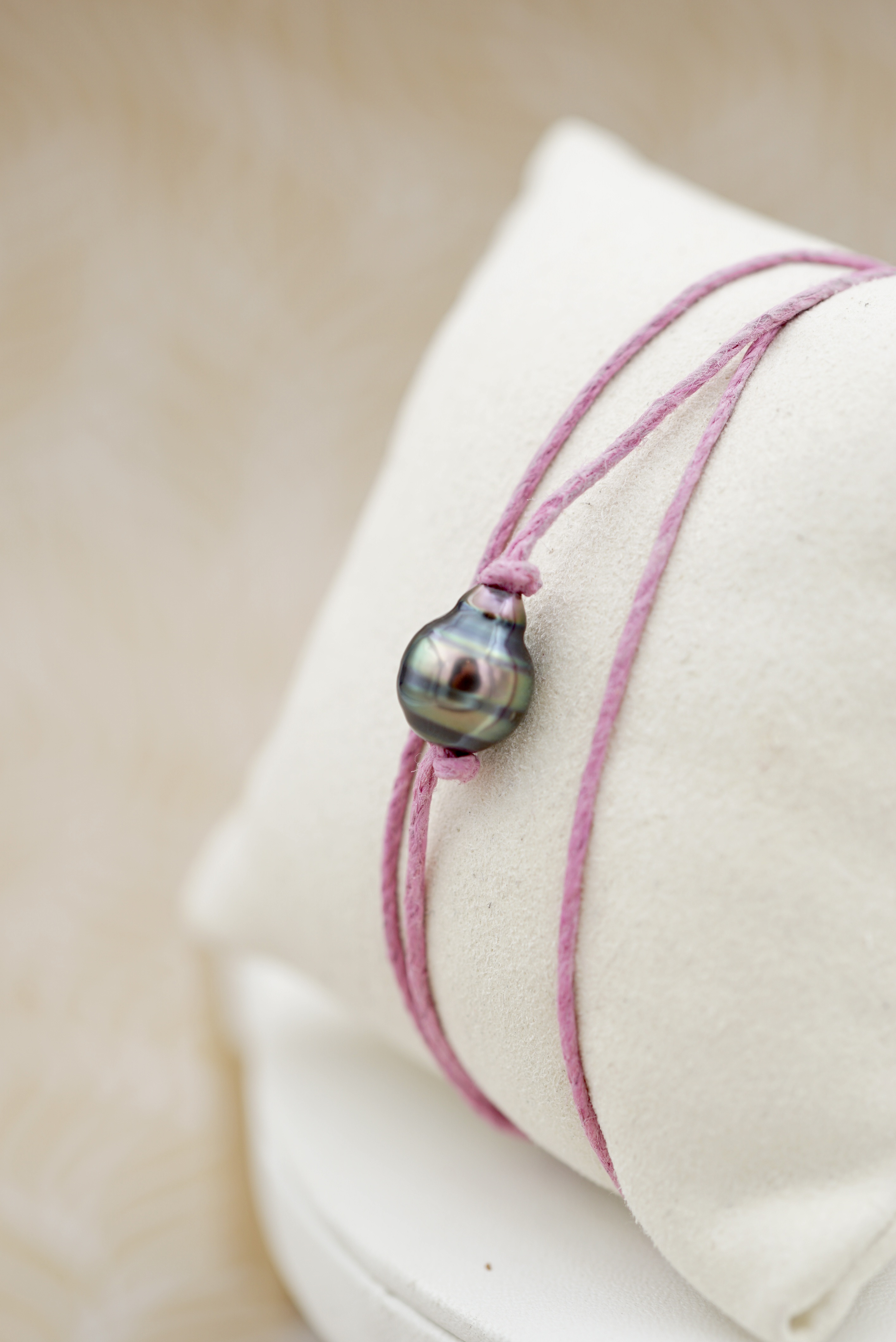 Portez un symbole de raffinement naturel avec ce bracelet orné d’une véritable perle noire de culture de Tahiti. Sélectionnée pour son lustre profond et ses reflets uniques, chaque perle incarne la pureté des lagons polynésiens.