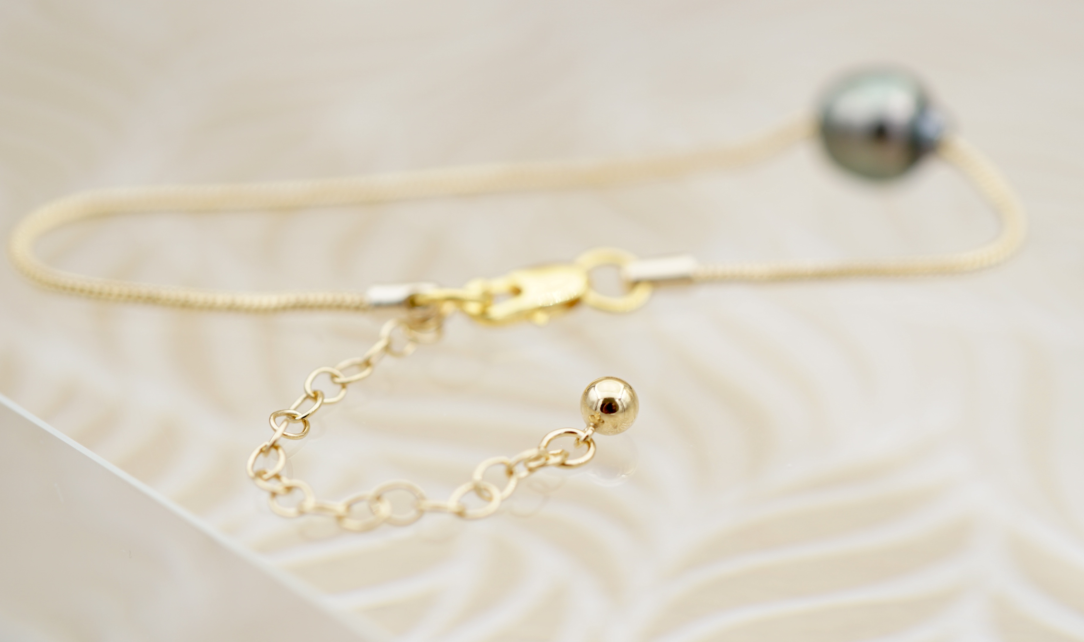 Bracelet en gold filled 14k, sublimé par une véritable perle noire de culture de Tahiti.