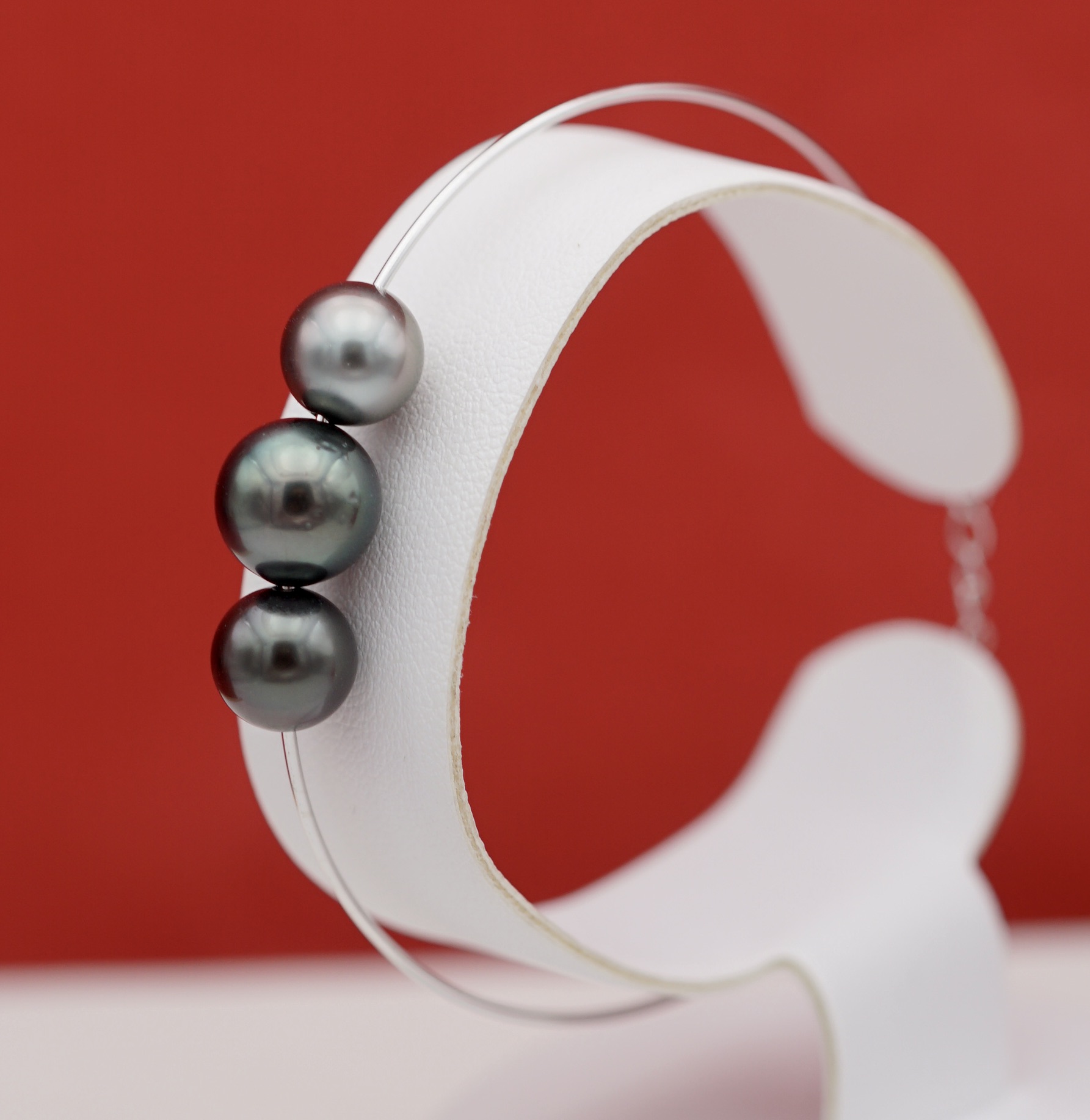 Ce bracelet en argent 925mm, orné de perles de Tahiti sélectionnées pour leur éclat unique, incarne un équilibre parfait entre modernité et tradition. Chaque perle dévoile des reflets profonds – aubergine, vert, bronze – pour un rendu à la fois subtil et luxueux.