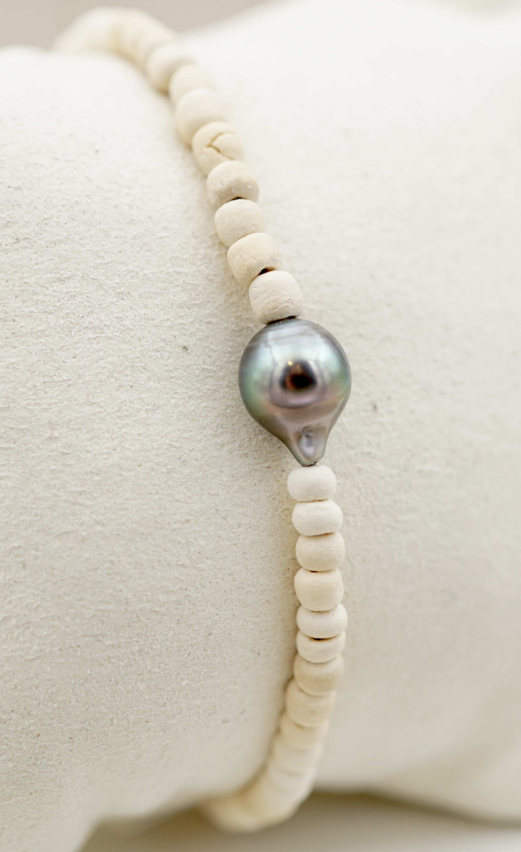 Cette perle est sélectionnée pour son lustre intense et ses reflets profonds, hérités des eaux pures de Polynésie.