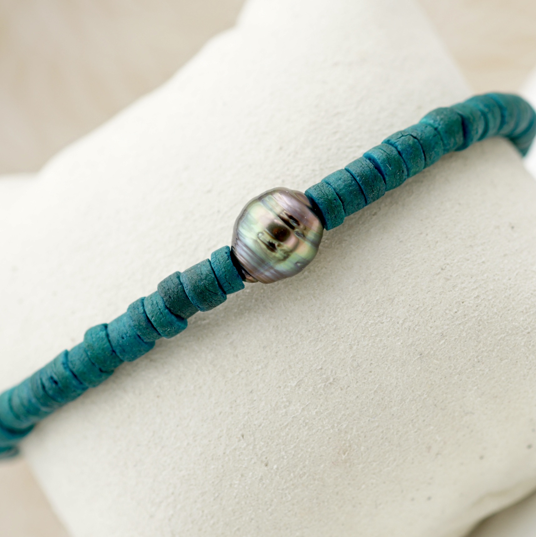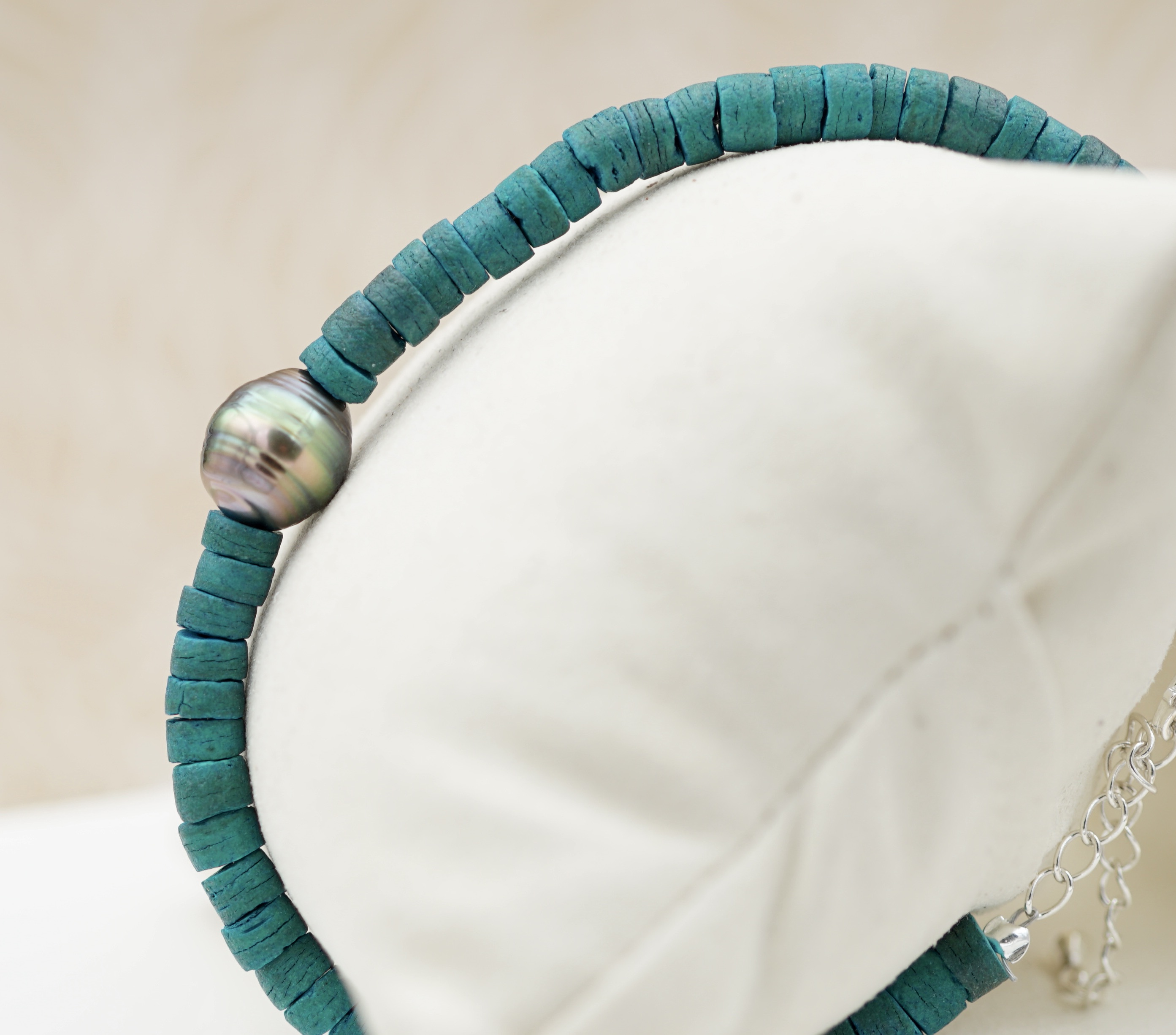 Portez un symbole de raffinement naturel avec ce bracelet orné d’une véritable perle noire de culture de Tahiti, et de perles Heishsis.