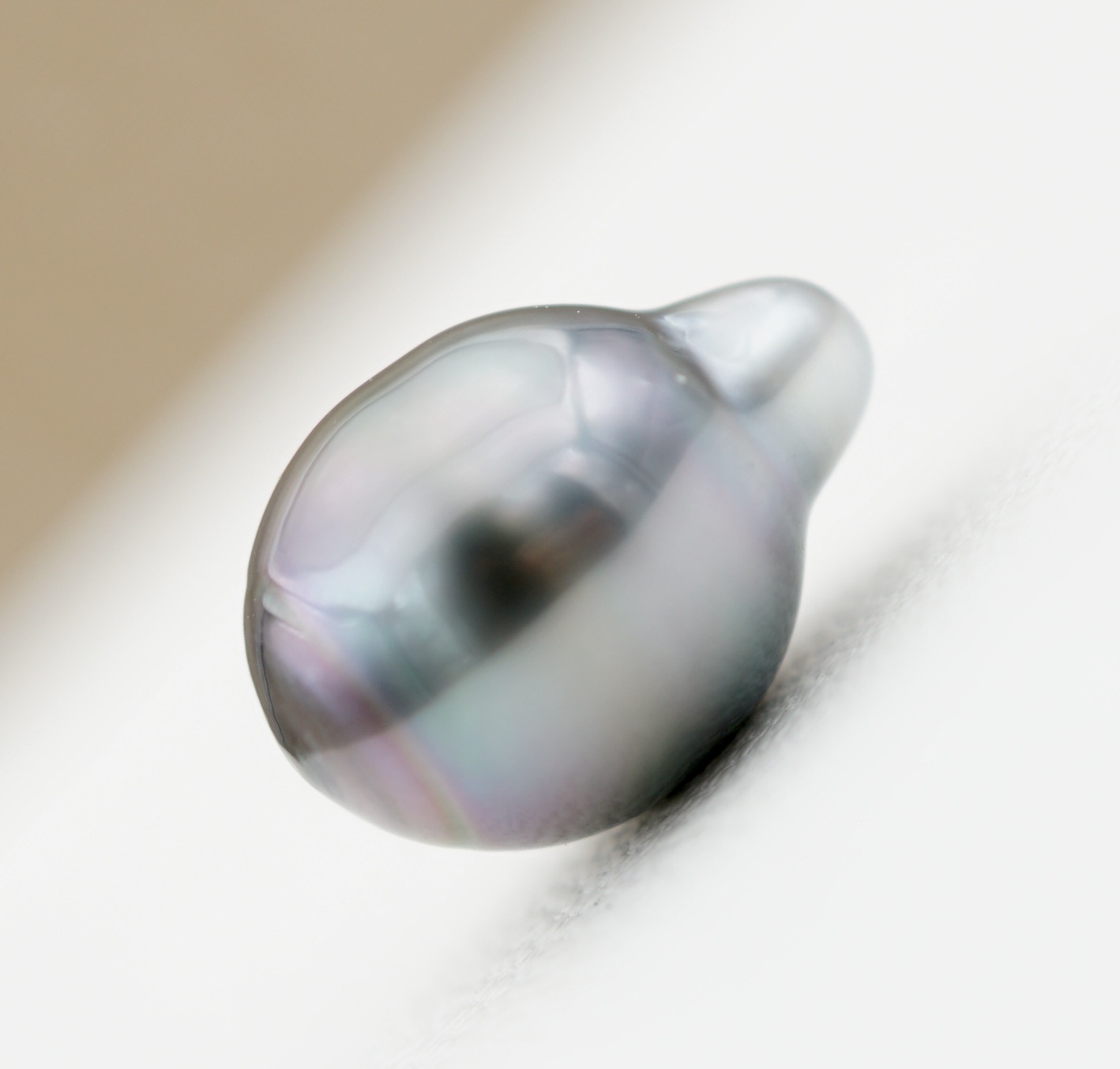 Laissez-vous séduire par cette splendide perle baroque de culture de Tahiti, d’un diamètre de 8.7mm. Véritable trésor des lagons polynésiens, elle se distingue par son lustre profond et brillant, ainsi que par ses reflets intenses évoquant les eaux préservées de Polynésie.