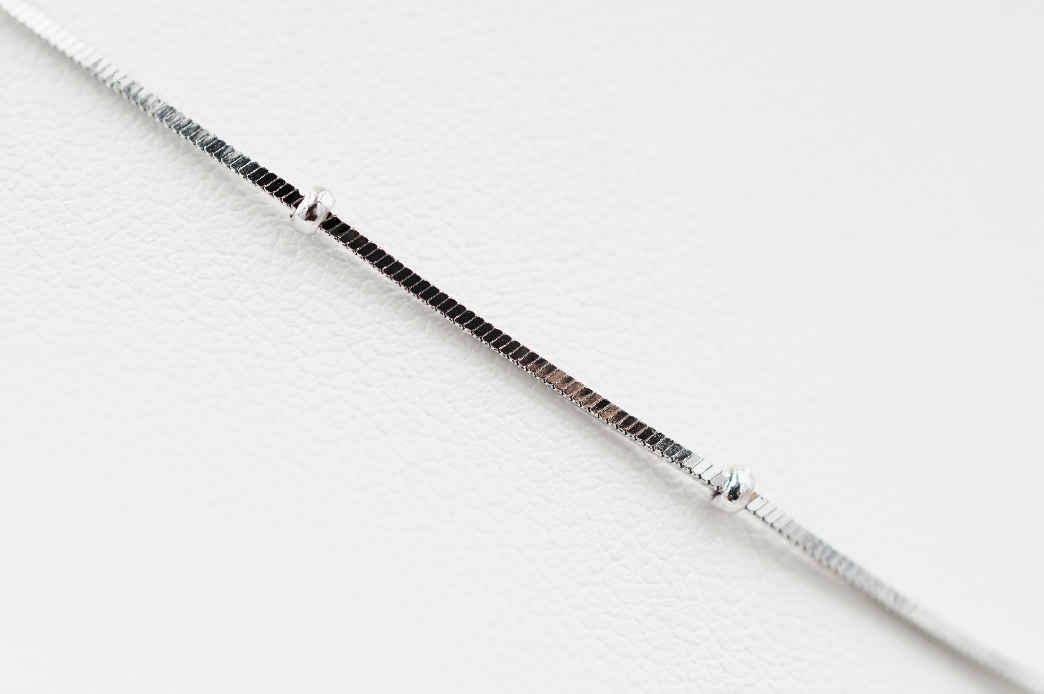 Chaîne perlé maille serpentine carré 0.8mm - Argent 925 rhodié de 40cm