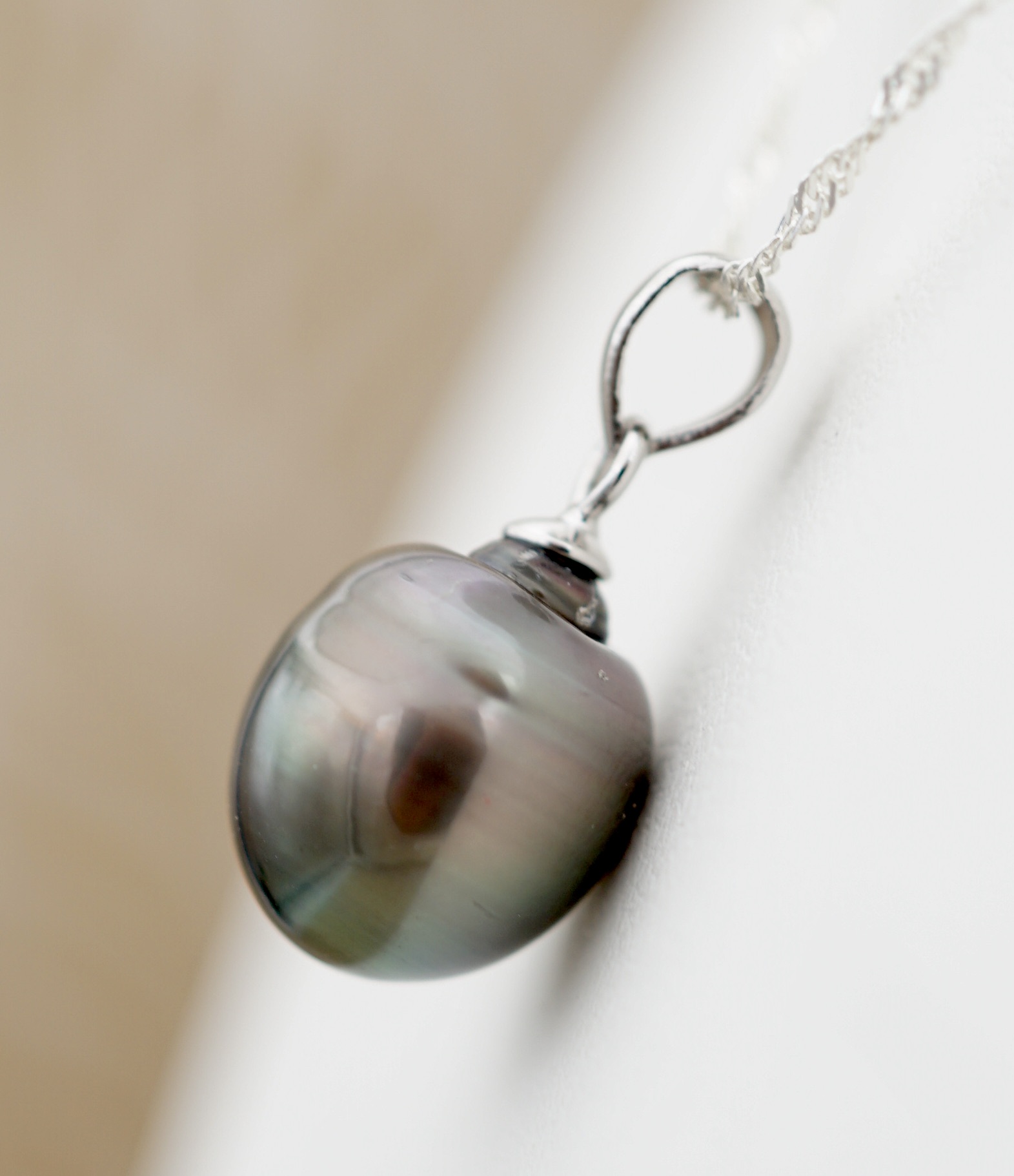 Sublimez votre décolleté avec ce collier raffiné, orné d’une véritable perle noire de culture de Tahiti, soigneusement sélectionnée pour son éclat profond et naturel. Cett perle incarne la richesse et la pureté des lagons polynésiens.