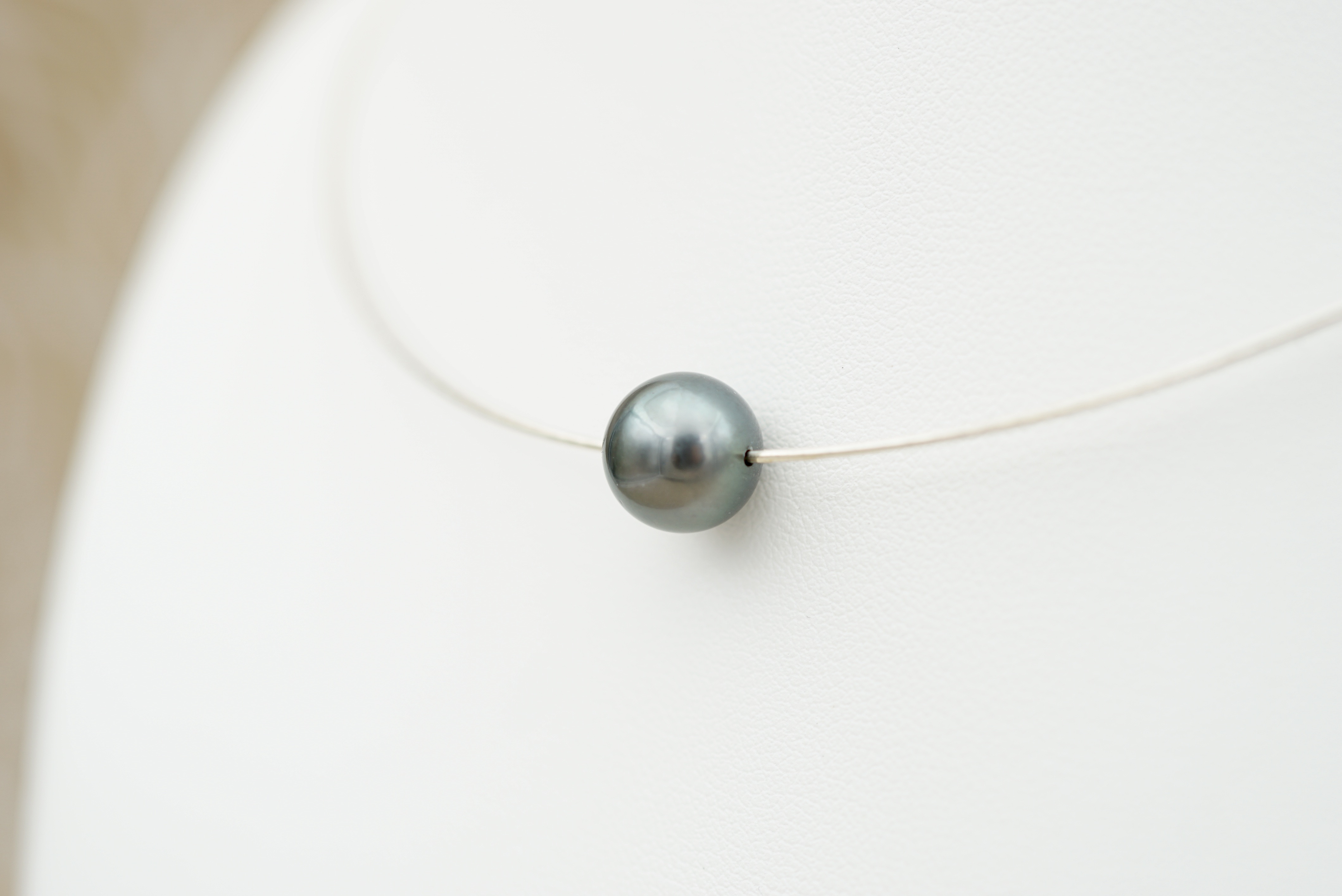 Cable en argent rhodié 925, au design épuré, pour mettre en valeur la perle sans superflu.