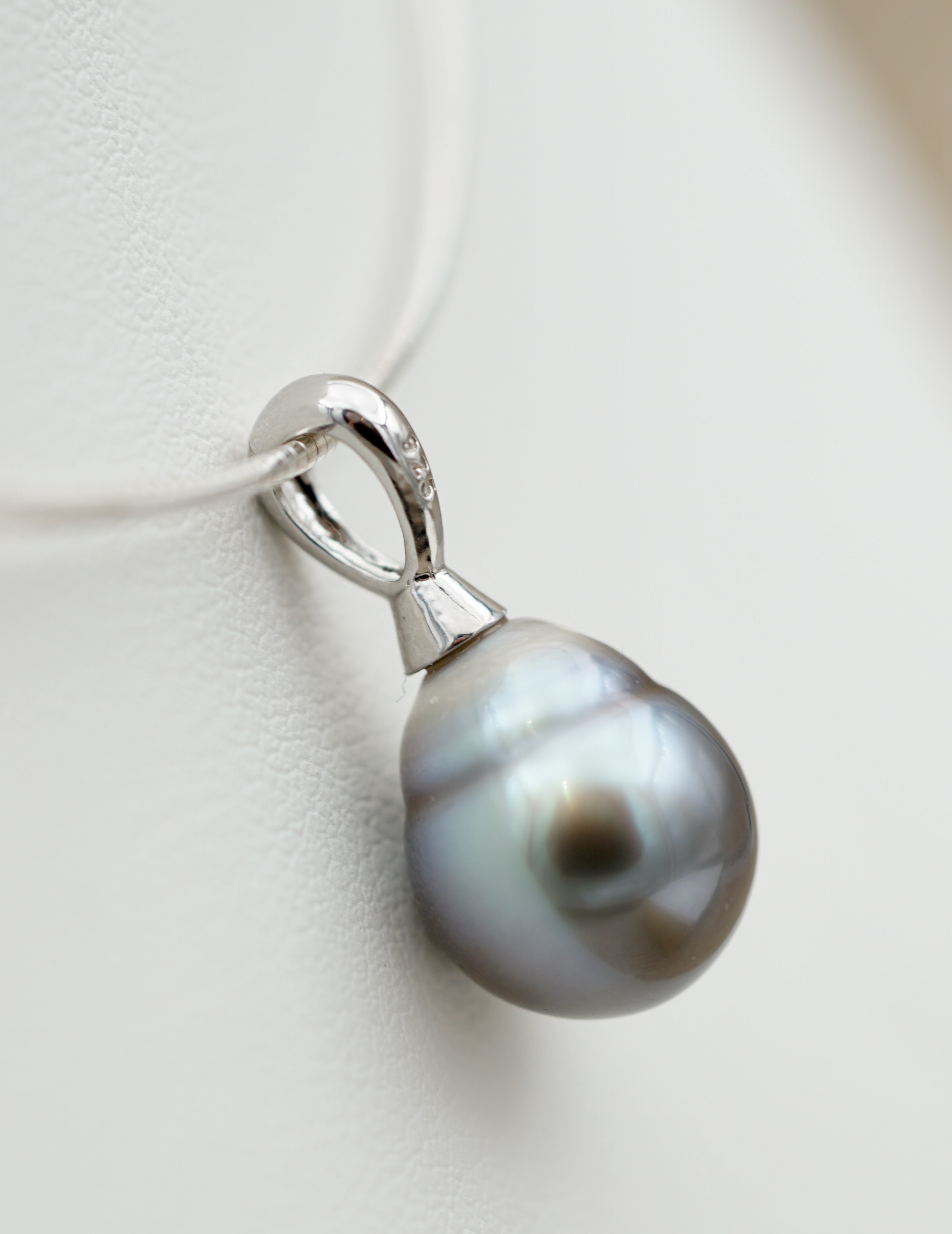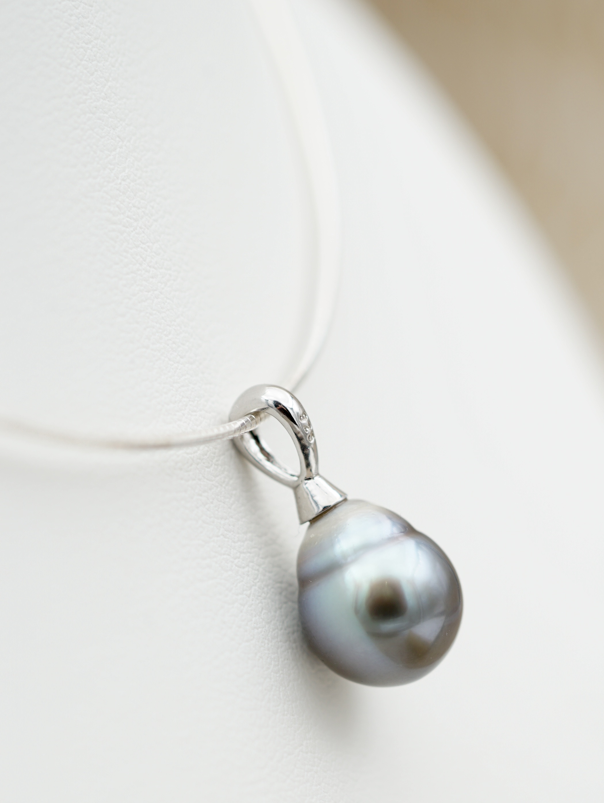 Chaîne en argent rodhé 925, au design épuré, pour mettre en valeur la perle.